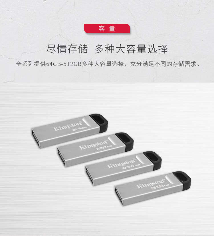 金士顿(Kingston)128GB USB 3.2 Gen 1 U盘 DTKN 大容