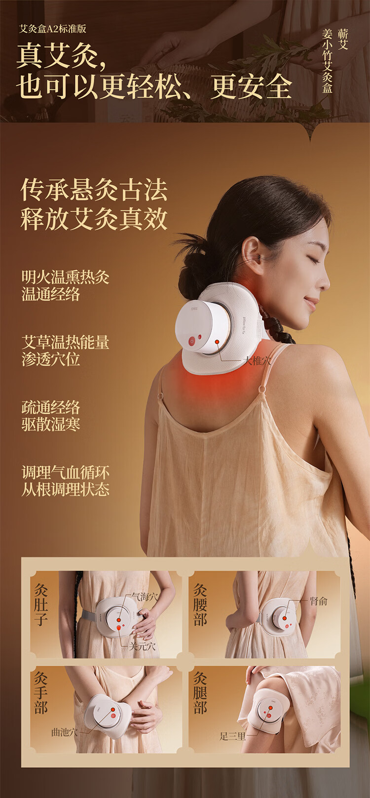 倍轻松(breo)姜小竹A2标准版艾灸盒月白色 家用便携无烟电子艾灸盒艾灸仪 孙颖莎同款生日礼物送妈妈老婆男女友