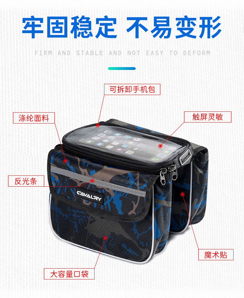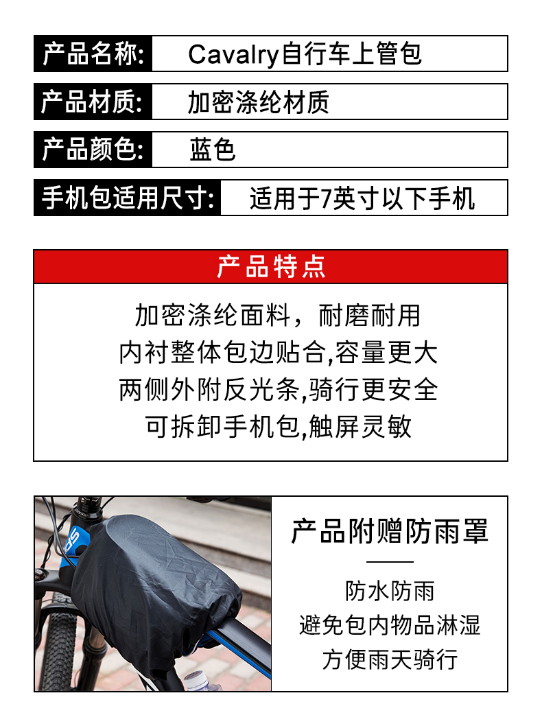 骑兵连(cavalry)自行车包前梁包上管包 山地车包马鞍包触屏手机包骑行装备 蓝色