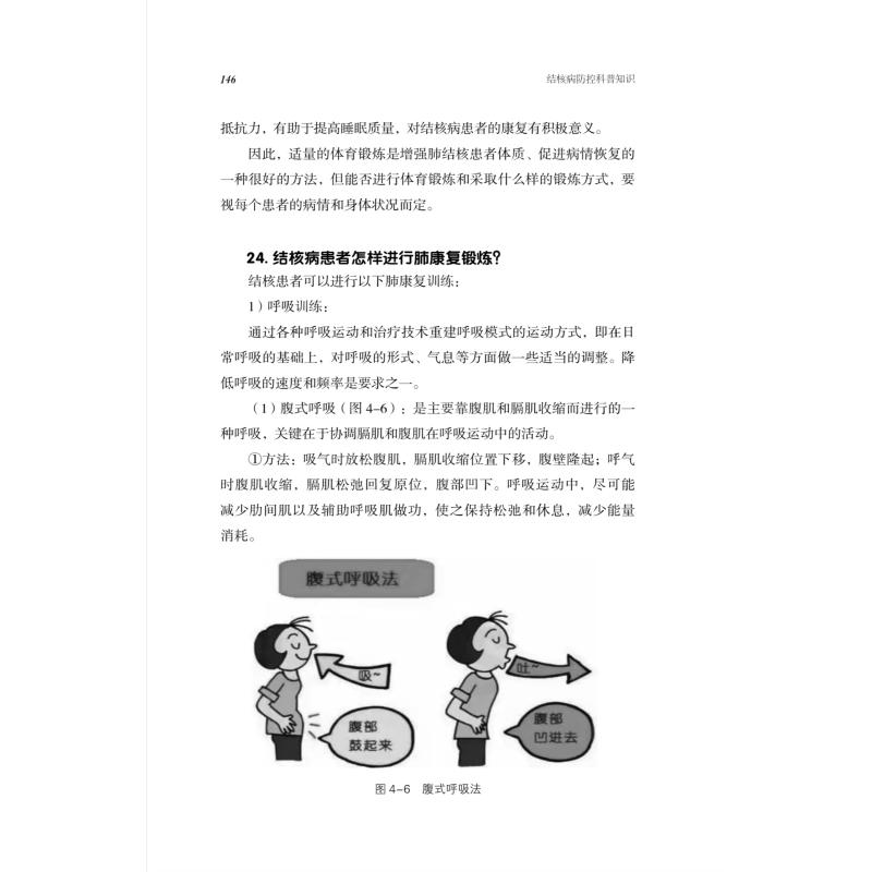 第一章 医之篇———————————————————1. 结核病到底是一种什么病? 0012. 结核病的国内外流行现状如何? 0013. 肺结核传播的“罪魁祸首”是什么? 0014. 结核病的威力有多大? 0025. 结核病的传染源是什么? 0026. 支气管结核病为什么传染性较强? 0027. 所有结核病患者都有传染性吗? 0038. 痰菌阴性的肺结核患者是否不具有传染性? 0039. 肺结核患者传染性大小取决于什么? 00310. 肺结核病的传播途径有哪些? 00311. 为什么肺结核患者不能随地吐痰? 00512. 肺结核病是怎样通过呼吸道传播的? 00513. 接触过肺结核患者就一定会被传染吗? 00614. 接触者与肺结核患者应该保持多远的距离才能降低感染的概率? 00815. 哪些人容易感染结核分枝杆菌? 00816. 结核病患者与结核分枝杆菌感染者是一回事吗? 00917. 结核分枝杆菌感染后一定会发病吗? 00918. 感染结核分枝杆菌后,哪些人最有可能患结核病? 00919. 结核病潜伏期有多长? 01020. 结核病与肺结核是一回事吗? 01021. 结核病分类有哪些? 01022. 首次感染结核分枝杆菌,人体是如何进行“保卫战”的? 01323. 原发性肺结核与继发性肺结核有什么区别? 01424. 哪些措施可以降低继发性肺结核的发生? 01425. 继发性肺结核的感染方式有哪些? 01526. 活动性肺结核与痰菌阳性是一回事吗? 01527. 为什么会出现耐药结核病? 01528. 耐药结核病的分类有哪些? 01729. 我国耐药结核病患者有多少? 01830. 耐药结核病有什么危害? 01931. 耐药结核病如何治疗? 02032. 非结核分枝杆菌也能引起结核病吗? 02033. 肺结核与非结核分枝杆菌肺病如何鉴别? 02134. 治病不如先防病,预防性治疗可行吗? 02135. 预防结核病的疫苗有哪些,可以接种吗? 02236. 国家有哪些关于治疗结核病的优惠政策? 02237. 什么是卡介苗? 02438. 新生儿为什么需要接种卡介苗? 02439. 错过卡介苗很好接种时间,可以补打吗? 02440. 卡介苗接种后终身不患肺结核吗? 02441. 卡介苗注射适应证及注意事项有哪些? 02542. 什么是特异性免疫力? 02543. 如何早期发现结核病? 02644. 肺结核的主要症状有哪些? 02645. 儿童肺结核有哪些特点? 02746. 老年肺结核有哪些特点? 02847. 如果没有任何症状,可能患肺结核吗? 02848. 肺上发现结节,是得了肺结核吗? 02849. 肺结核患者发热有什么特点? 02850. 结核性胸膜炎患者出现胸痛是什么原因? 02951. 肺结核患者出现咯血是怎么回事? 03052. 咯血时怎样进行自我护理? 03053. 什么是低热、高热和长期发热? 03154. 什么是潮热? 03155. 什么是盗汗? 03156. 发热、盗汗的患者需要注意什么? 03257. 怀疑结核病应该去哪儿就诊? 03258. 诊断结核病需要做哪些检查? 03259. 诊断结核病的金标准是什么? 03560. 什么是 PPD 试验? 03661. PPD 试验结果的诊断意义是什么? 03662. PPD 试验结果阳性就一定患了结核病吗? 03763. 结核病治愈以后 PPD 试验结果会转为阴性吗? 03764. 什么是痰涂片检查? 03765. 什么是痰培养检查? 03866. 如何正确采集痰标本? 03867. 在家里留取的痰液怎样保存和送检? 03968. 痰菌 + ~ ++++ 有什么意义? 04069. 留取痰标本时没有痰怎么办? 04070. 肺结核患者咳嗽排痰量多好不好? 04171. 肺结核患者痰液咳不出有危害吗? 04172. 什么是胸部叩击排痰法? 04273. 什么是体位引流排痰法? 04374. 痰液里没有查到结核分枝杆菌,可以排除结核病吗? 04475. 都说辐射对身体有害,拍胸片、CT 检查可以不做吗? 04576. 纤维支气管镜检查,结核病患者是不是都需要做? 04577. 什么是超声内镜引导下的经支气管针吸活检术 (EBUS-TBNA)? 04678. 胸膜活检术是什么手术? 04779.CT 引导下经皮肺穿刺活检术是什么手术? 04780. 胸腔镜手术是什么手术? 04981. 正电子发射计算机断层显像是什么检查? 05182. 什么是支气管动脉栓塞术? 05183. 肺结核患者需要抽血查哪些项目? 05384. 肺结核患者需要吸氧吗? 05485. 结核病能治愈吗? 05586. 结核病治愈后会复发吗? 05587. 结核病患者为什么要定期复查? 05588. 结核病会遗传吗? 05689. 治疗结核病的主要方法有哪些? 05690. 如果不使用抗结核西药,结核病会自愈吗? 05891. 治疗结核病有没有“特效药”“偏方”? 05992. 结核病的中药治疗原则是什么? 05993. 什么是诊断性抗结核治疗? 06094. 什么是初治肺结核? 06195. 什么是复治肺结核? 06196. 抗结核药物治疗的基本原则是什么? 06197. 抗结核药物有哪些? 06298. 抗结核治疗的新药有哪些? 06399. 结核病治疗的疗程是多久? 065100. 抗结核治疗多久后才没有传染性? 067101. 什么情况下可以停用抗结核药物? 067102. 怎样判断结核病是否治愈? 070103. 什么是结核病的免疫治疗? 070104. 哪些结核病需要行外科手术治疗? 072105. 肺结核与糖尿病会相互影响吗? 073106. 肺结核合并糖尿病患者该如何治疗? 074107. 硅肺患者为什么容易患结核病? 075108. 结核病合并艾滋病患者有哪些类型? 076109. 结核病合并艾滋病患者的治疗原则有哪些? 076110. 肺结核合并妊娠患者怎么治疗? 077111. 肺结核合并器官移植患者的治疗原则是什么? 078112. 肺结核合并慢性阻塞性肺疾病患者的治疗原则是什么? 079113. 什么是无反应性结核病? 080114. 无反应性肺结核的临床表现是什么? 080115. 什么是淋巴结结核? 081116. 淋巴结结核能治愈吗? 081117. 淋巴结结核包块会消退吗? 082118. 什么是骨与关节结核病? 082119. 结核性脑膜炎是什么病? 083120. 结核性脑膜炎能治愈吗? 085121. 浆膜结核病是什么病? 085122. 结核性腹膜炎有哪些表现 ? 086123. 肠结核是