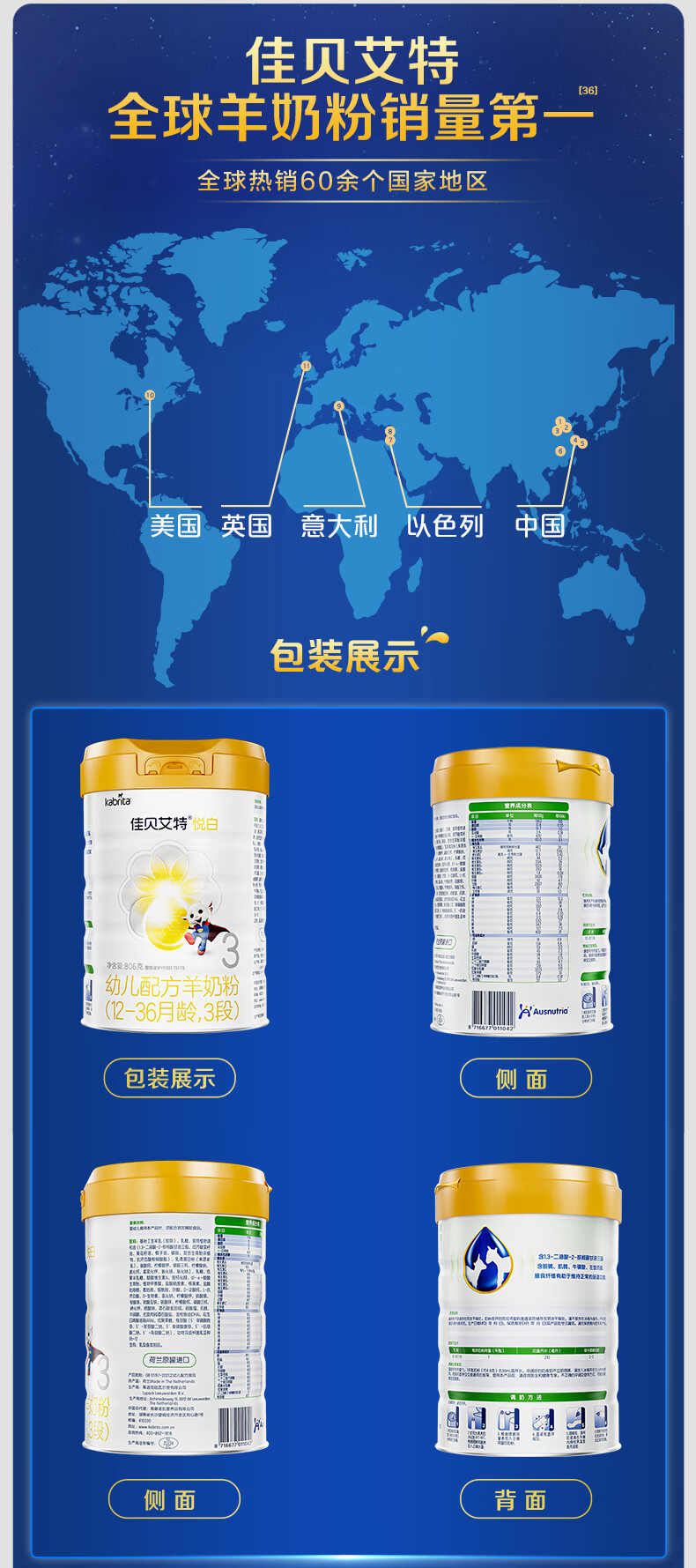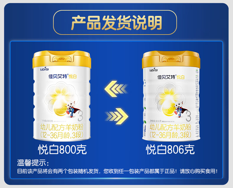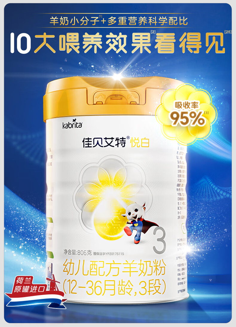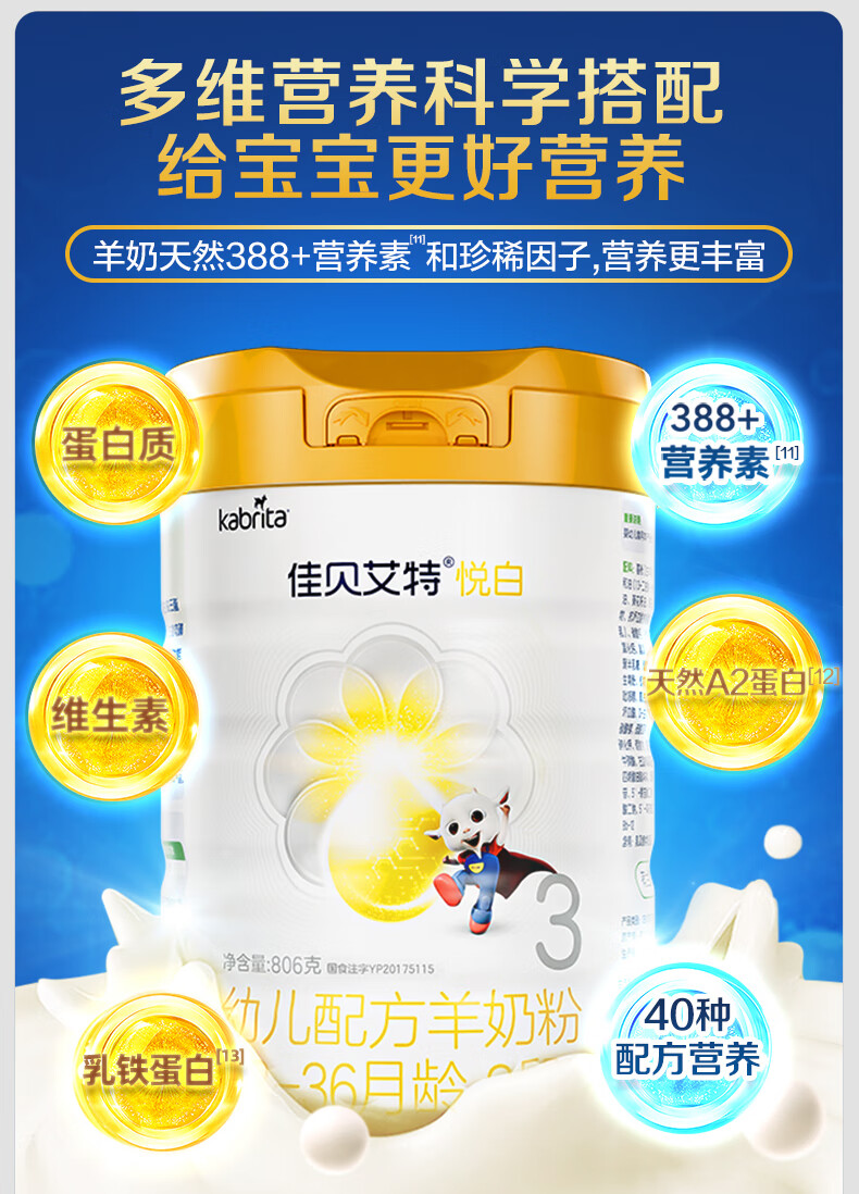 佳贝艾特(Kabrita)悦白婴幼儿配方羊奶粉 3段(1-3岁)806g 天然A2蛋白
