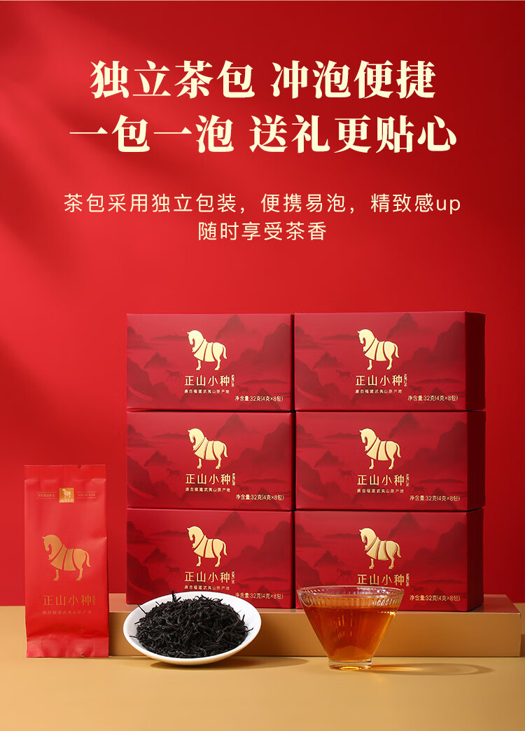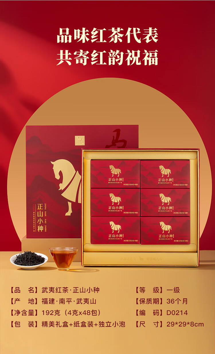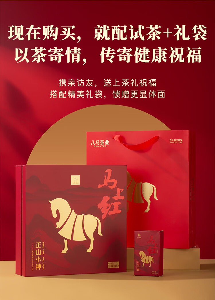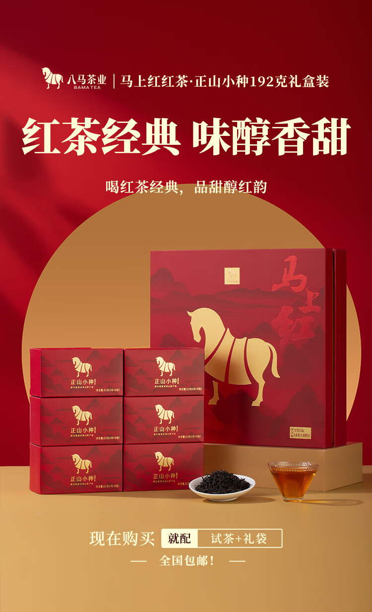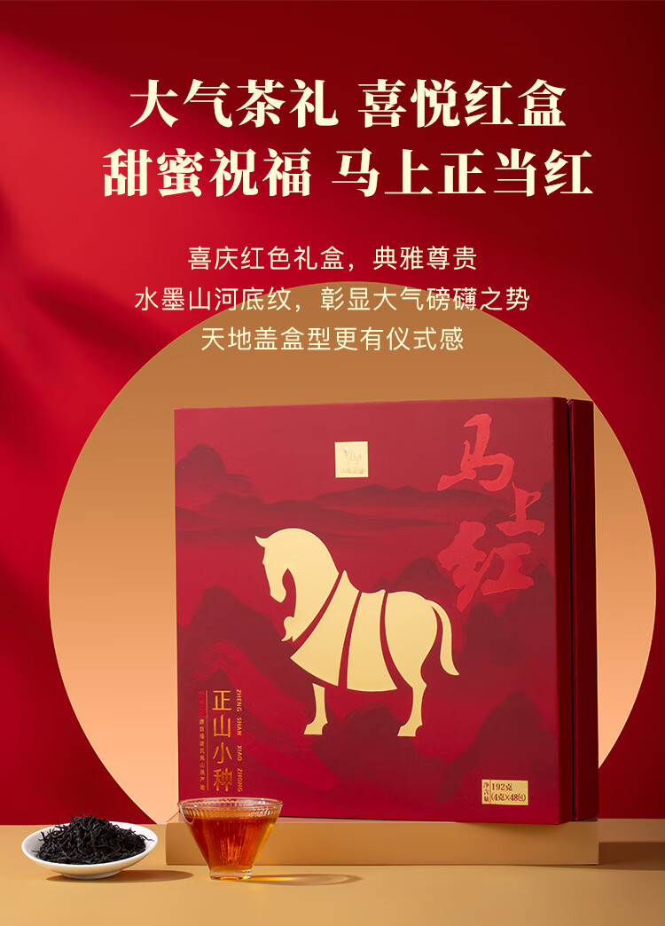 八马茶业红茶 马上红360正山小种一级192g礼盒装茶叶送礼