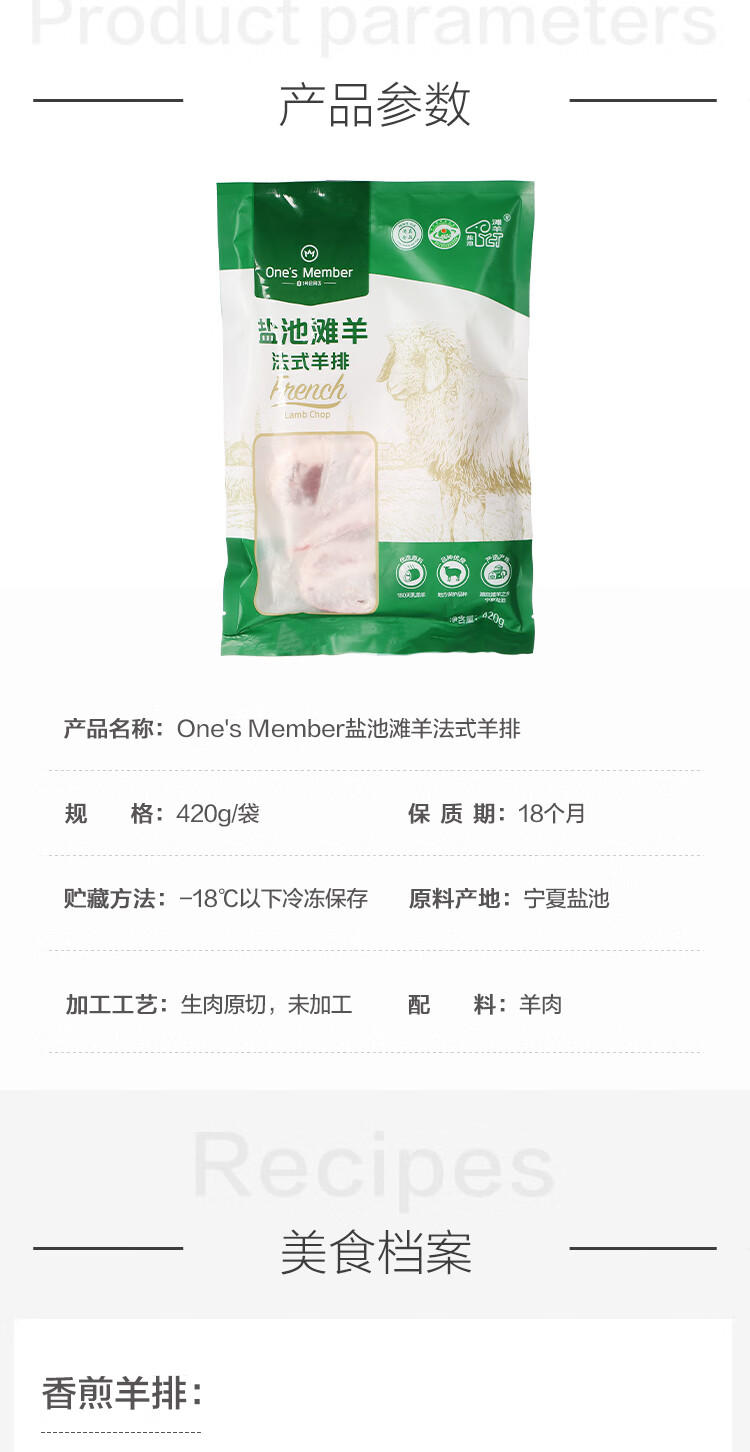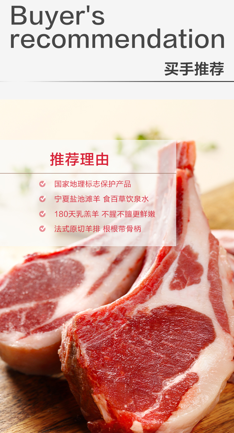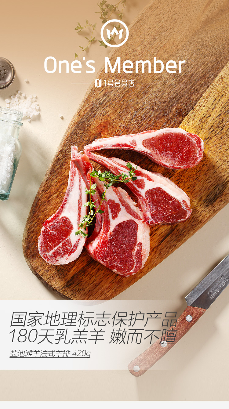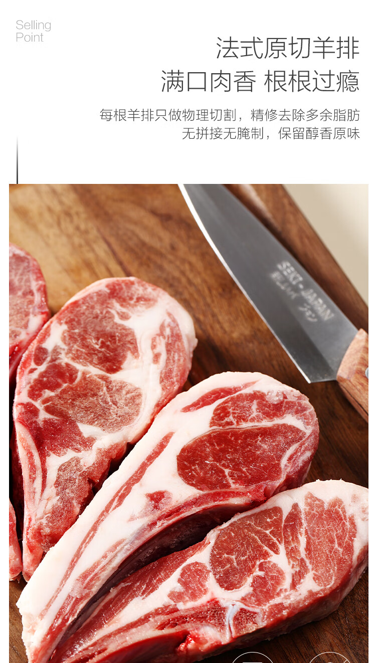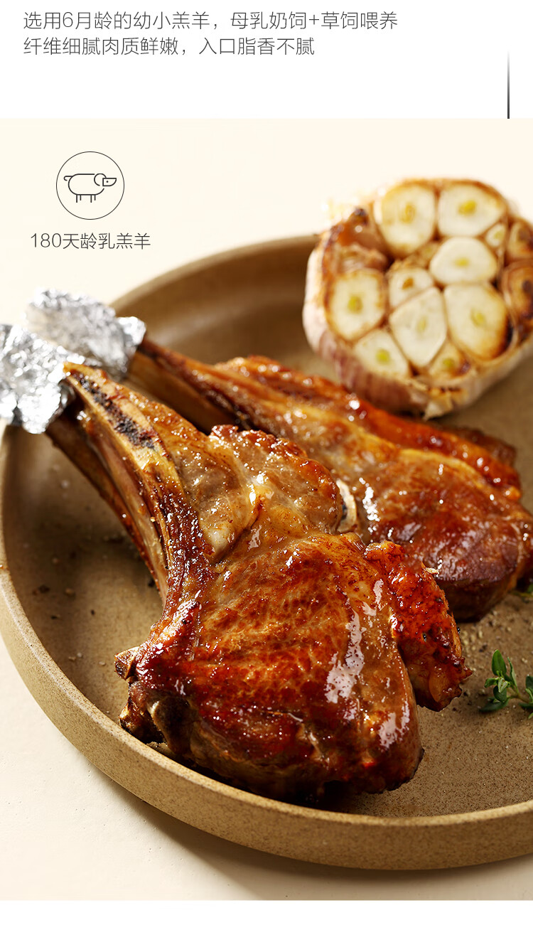 1号会员店 宁夏盐池滩羊 法式羊排 净重420g 180天乳羔羊