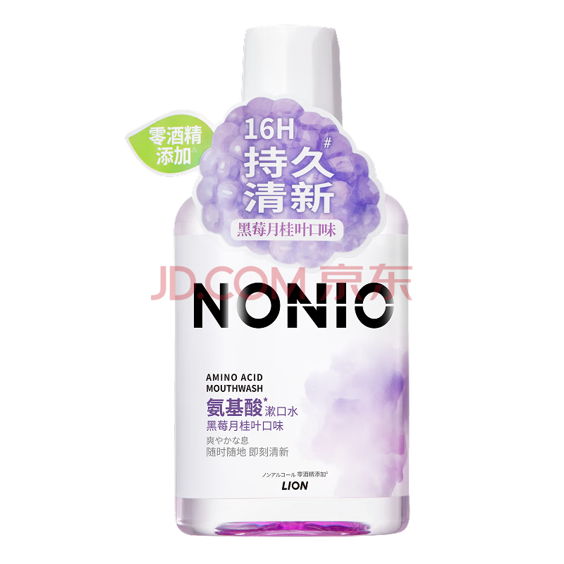 狮王(Lion)NONIO氨基酸漱口水黑莓月桂450ml0酒精零蔗糖杀菌深层清洁