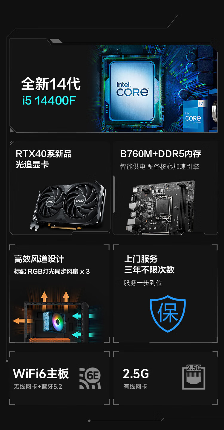 微星(MSI)暗黑骑士MAG 14代i5 14400F/RTX4060/16G/512G 电竞游戏设计师台式电脑主机整机