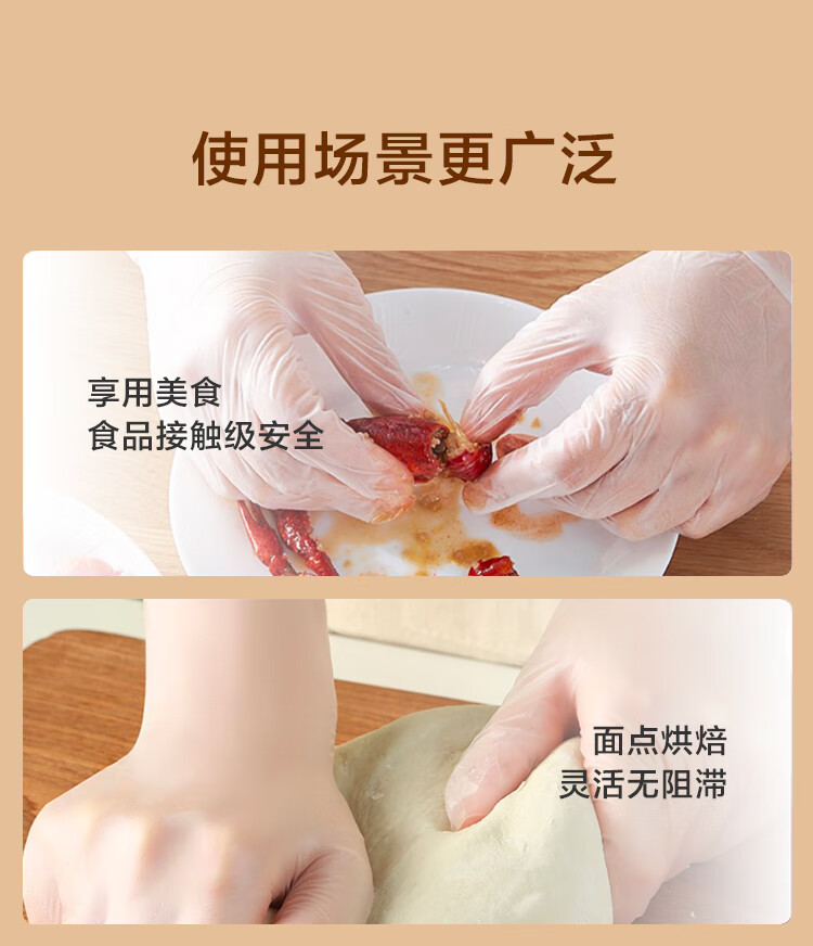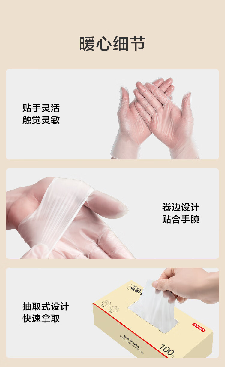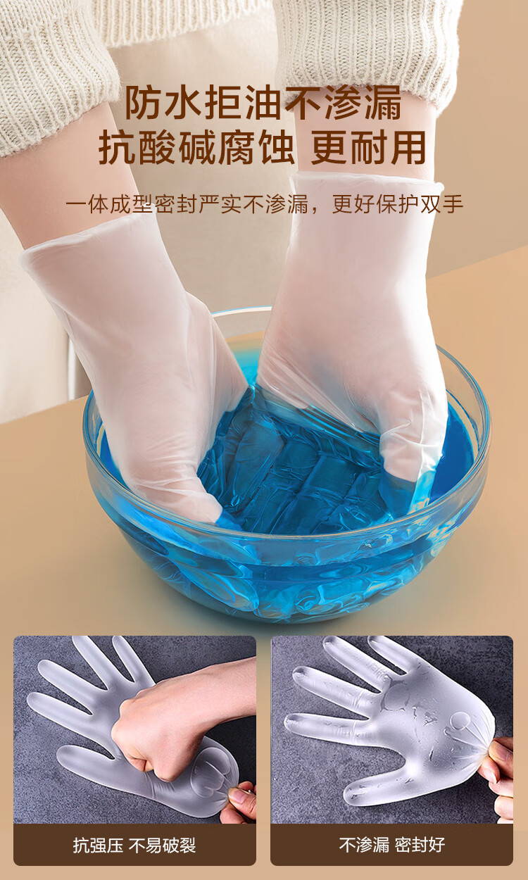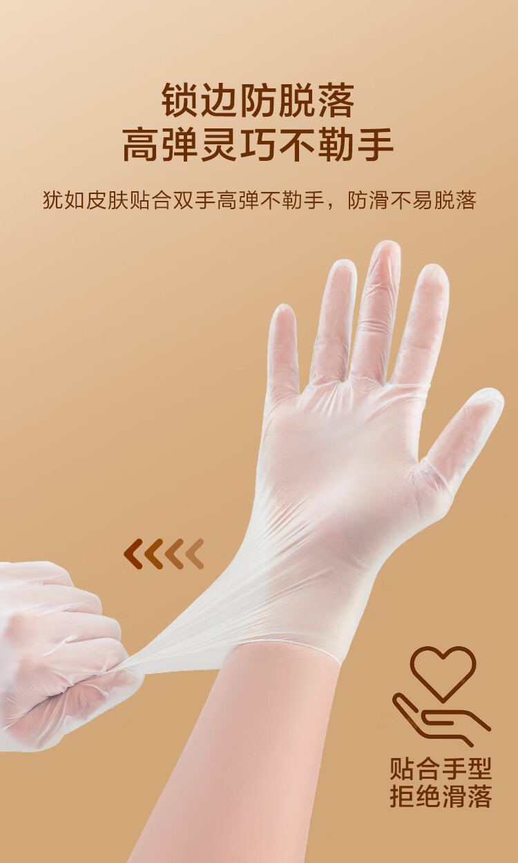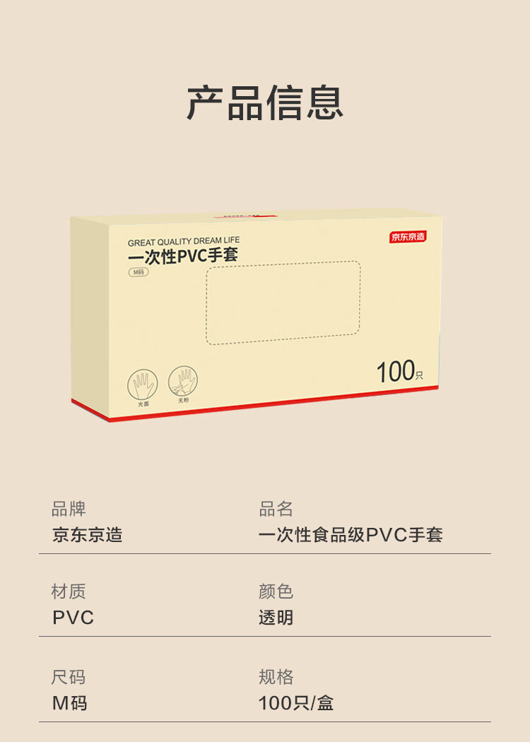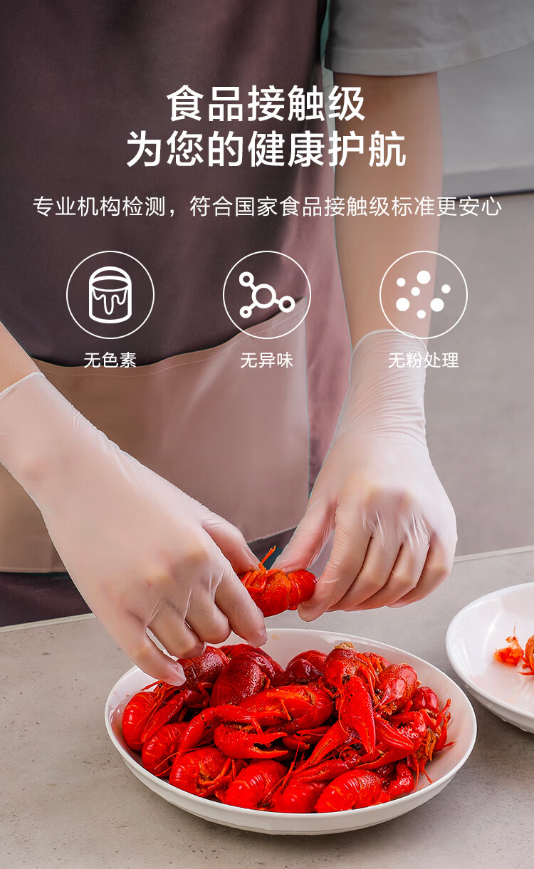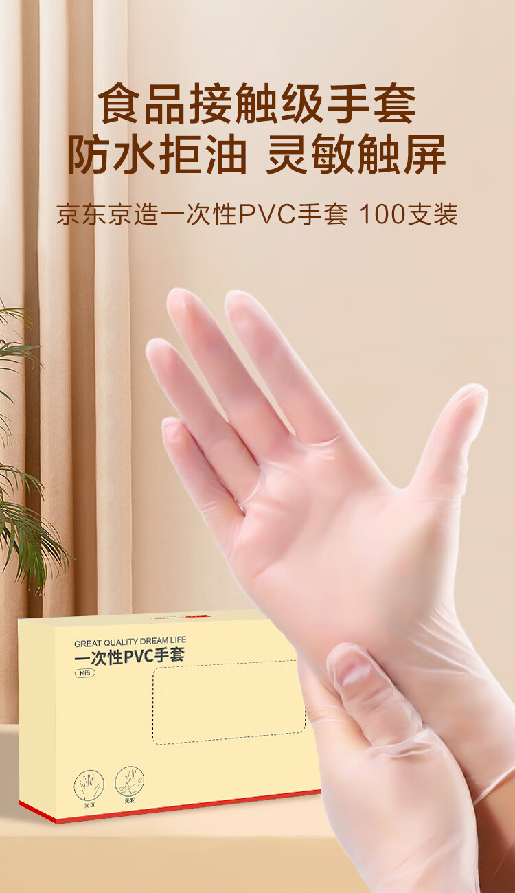 京造 一次性手套 PVC食品级加厚 厨房烧烤露营家用清洁M