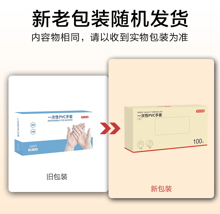 京造 一次性手套 PVC食品级加厚 厨房烧烤露营家用清洁M码【100只】