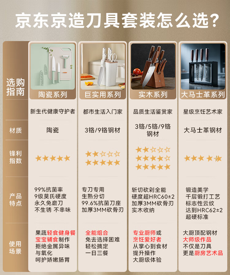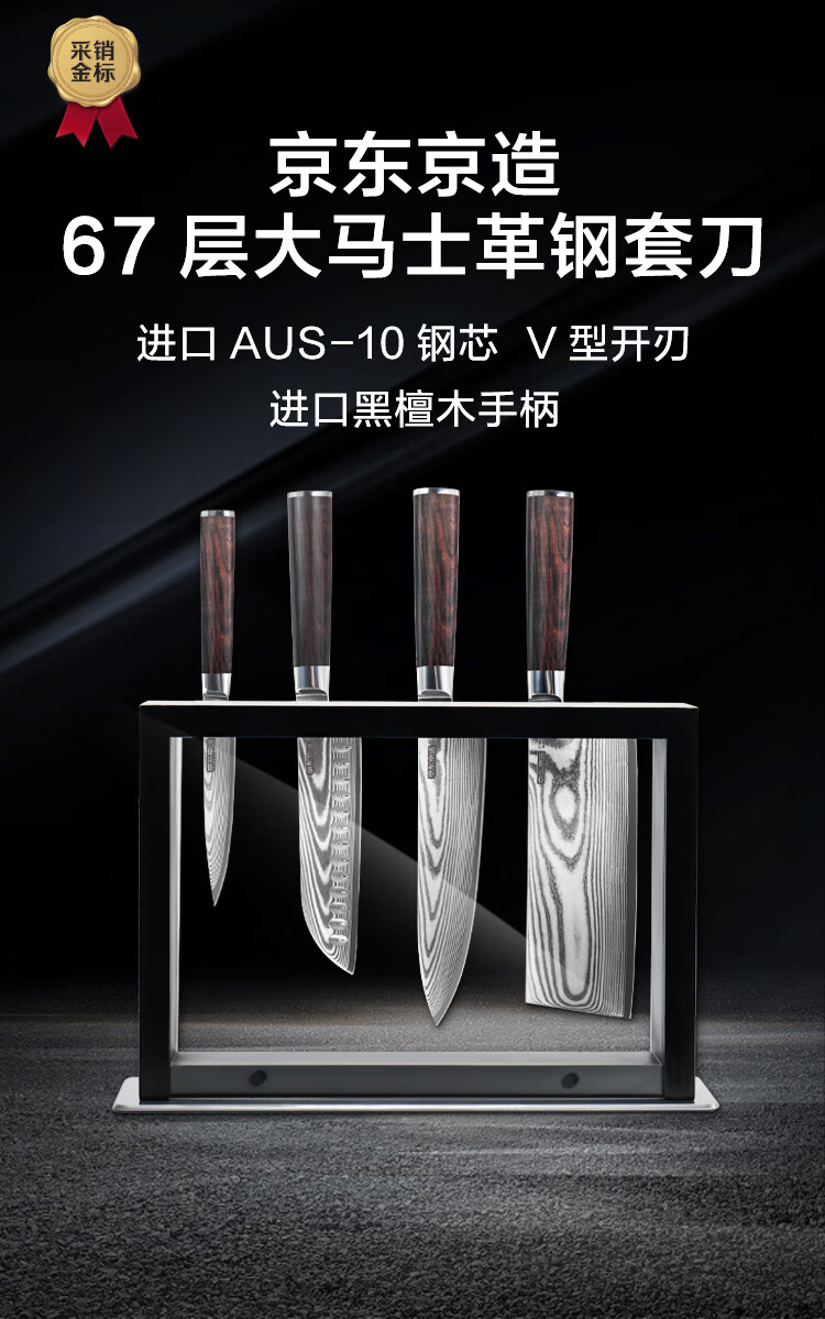 京造 刀具全套 菜刀套装进口钢【67层大马士革钢】礼盒装5件套