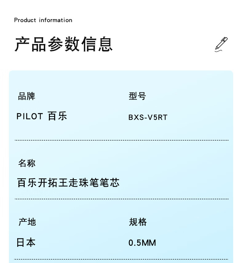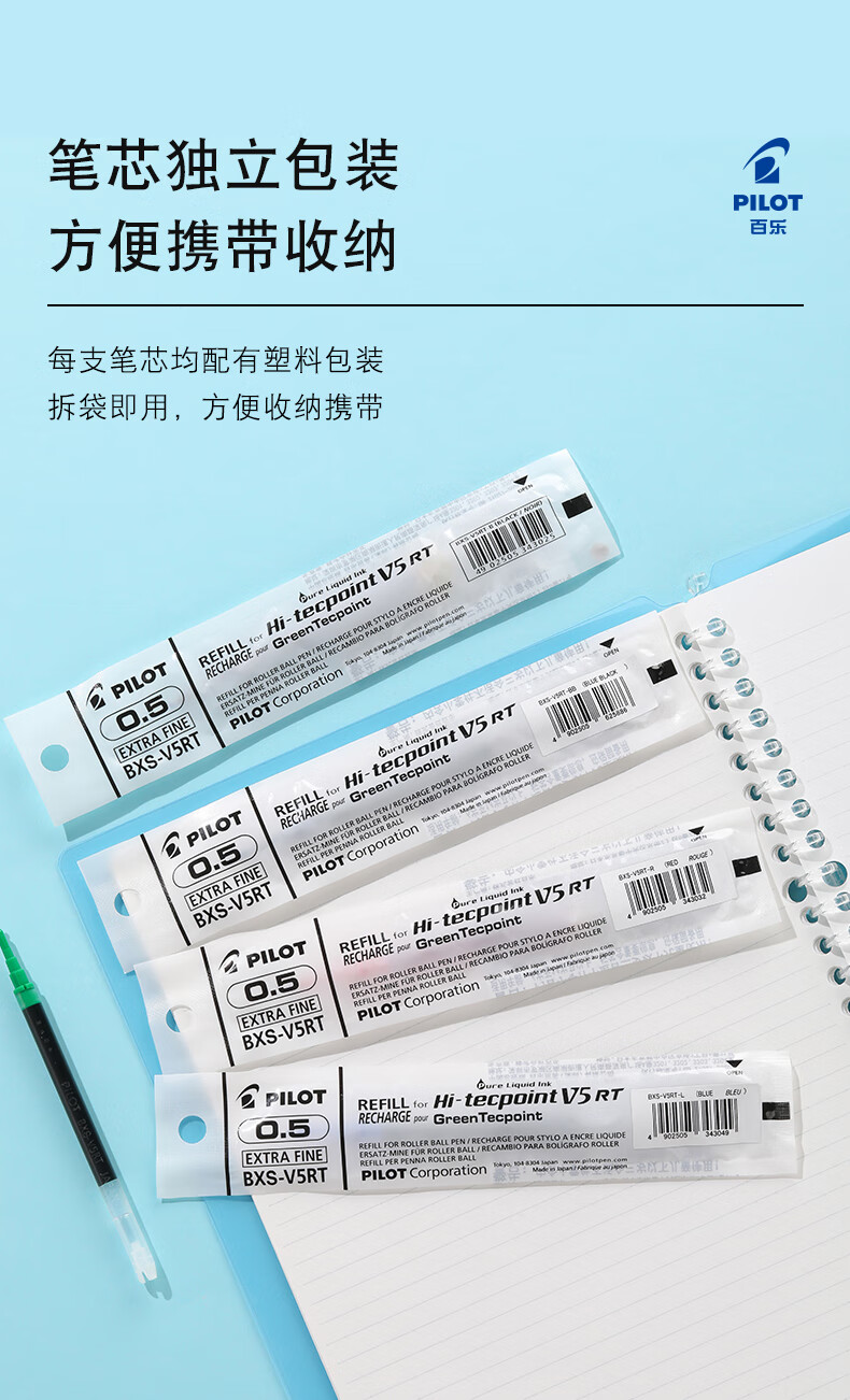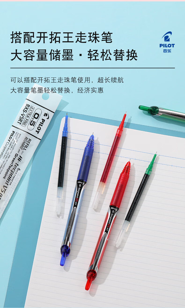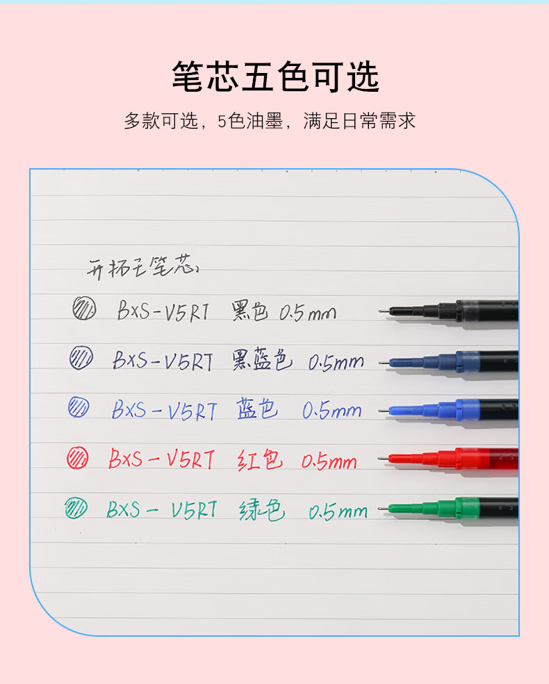 百乐(PILOT)【热门商品】BXS-V5RT按动0.5中性笔签字笔练字水笔芯替芯四点承托笔尖适用BXRT-V5开拓王 黑12支