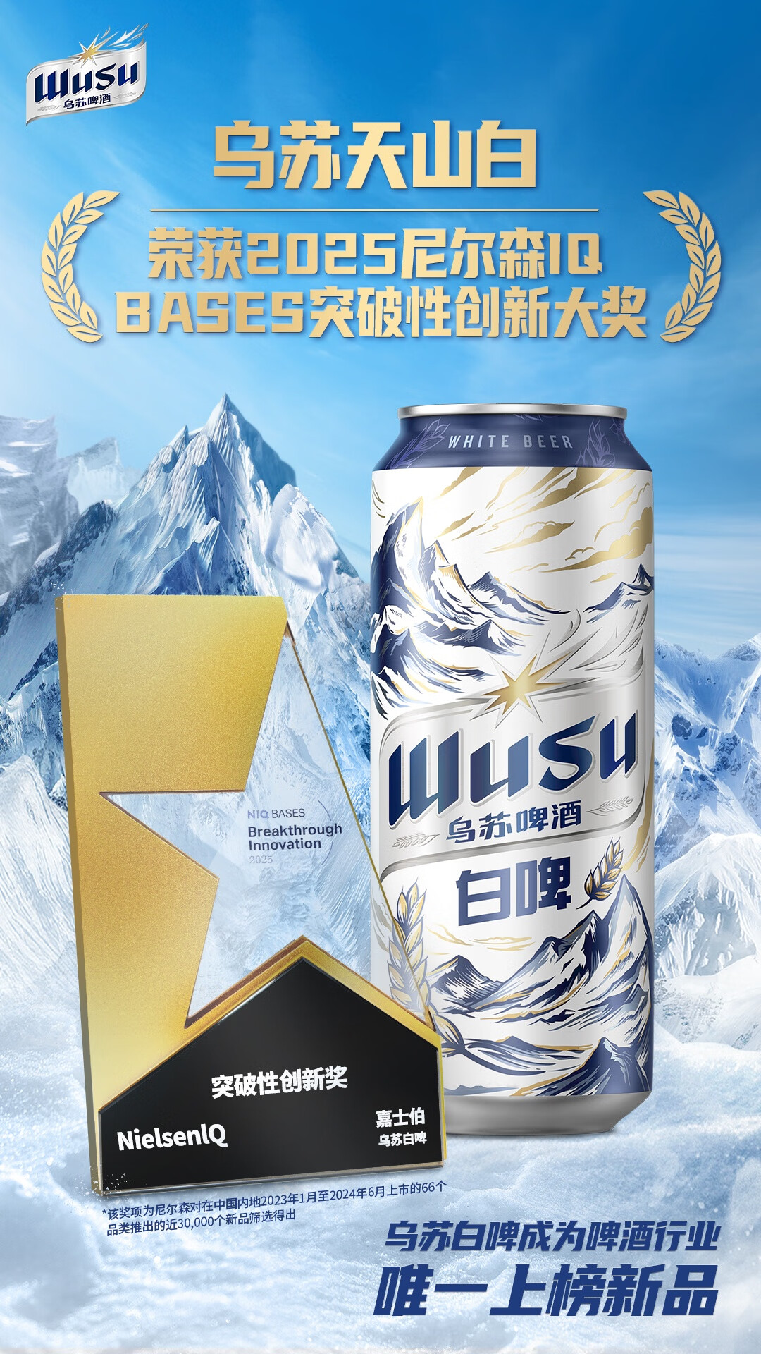乌苏啤酒(wusu)天山清爽白啤精酿阿克苏小麦500ml*12罐整箱装