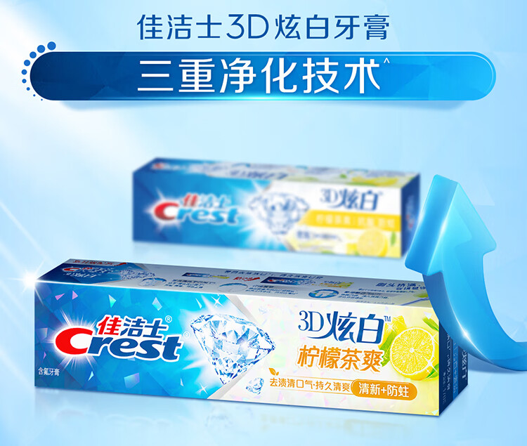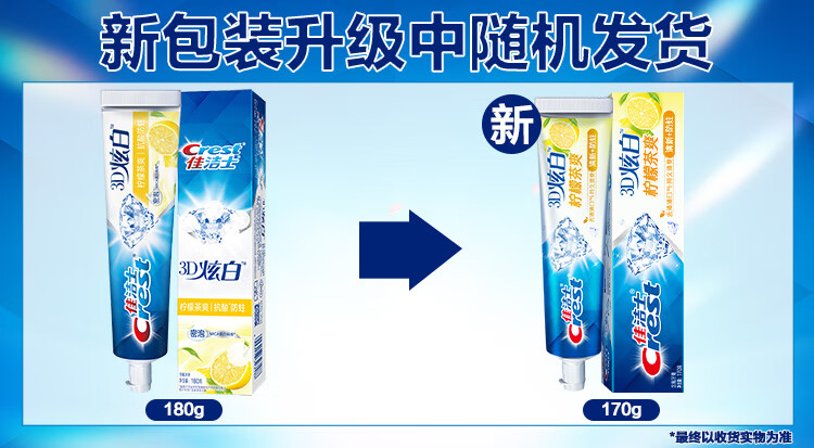 佳洁士3D炫白柠檬茶爽牙膏含氟清新口气170g新老包装混发