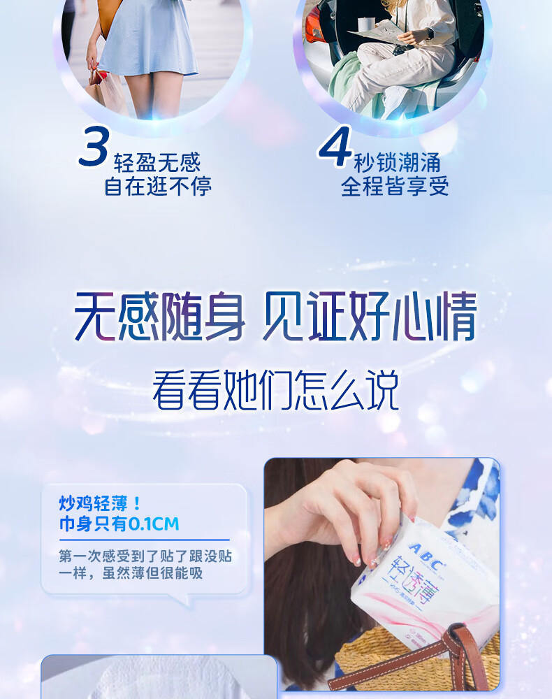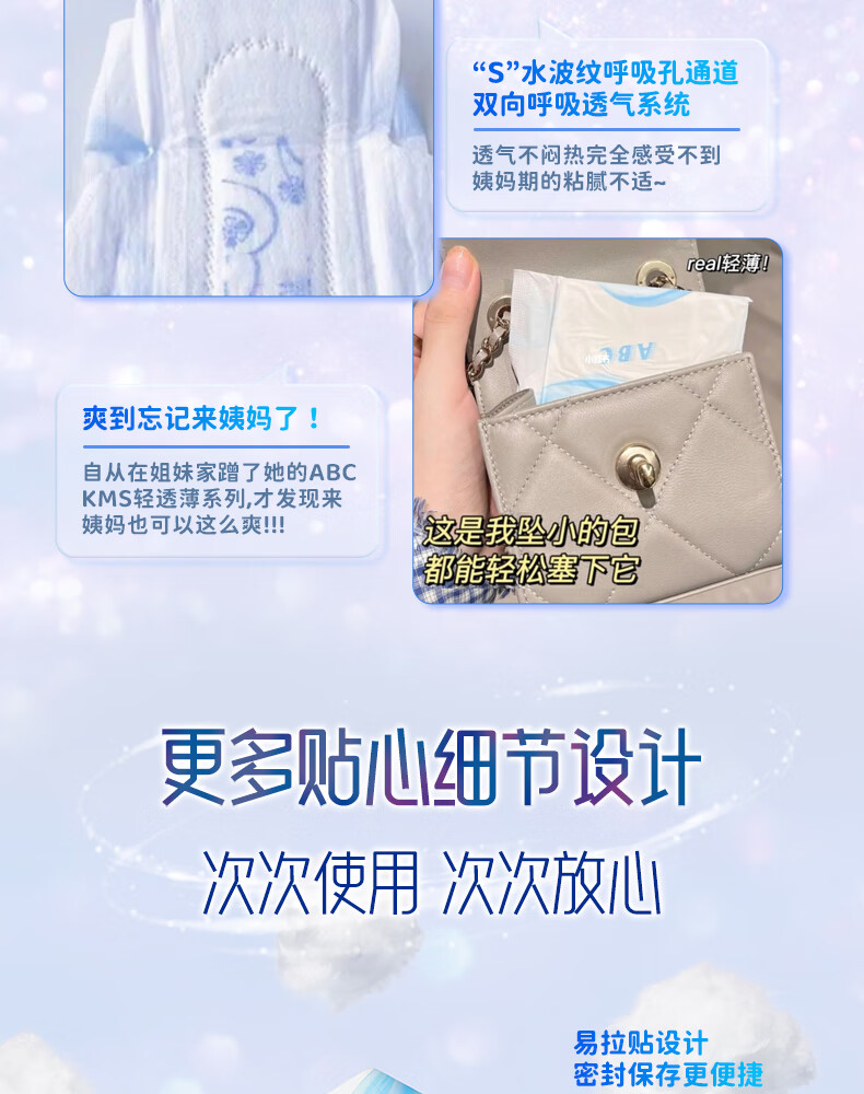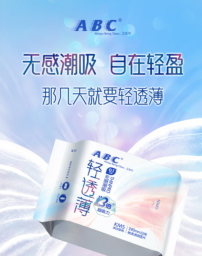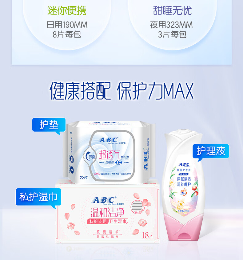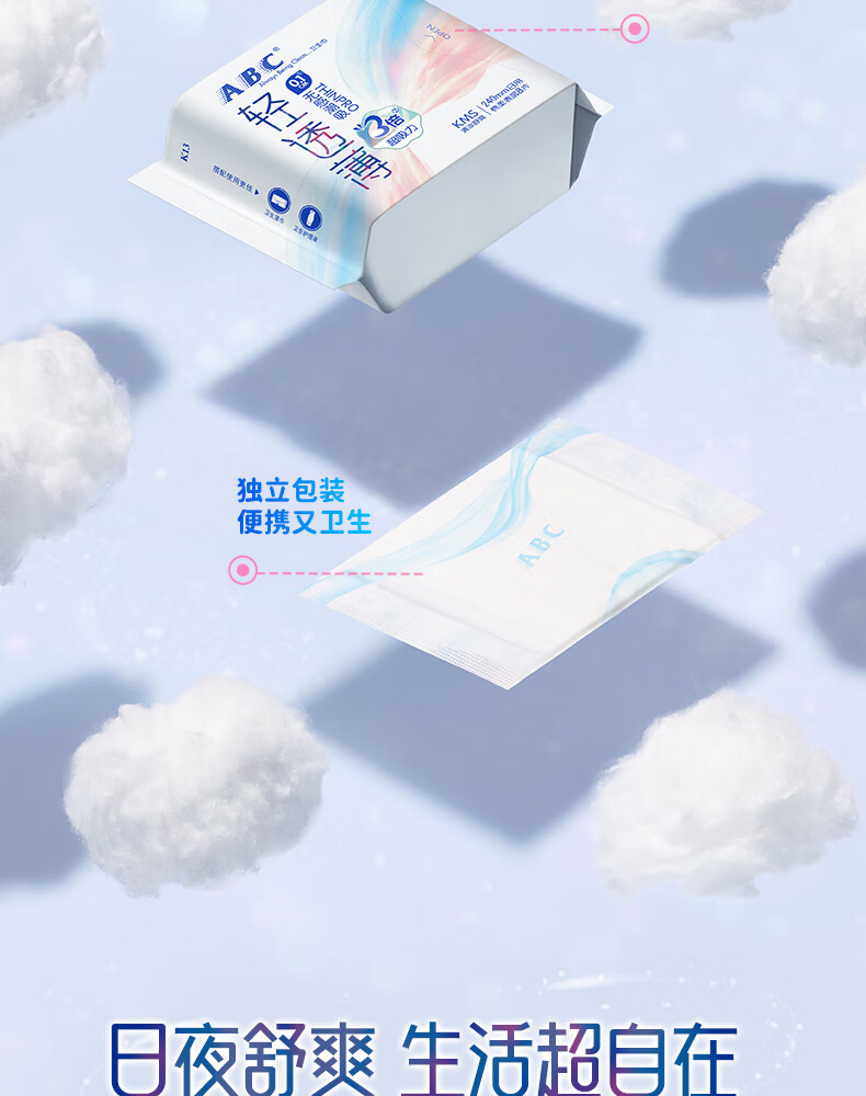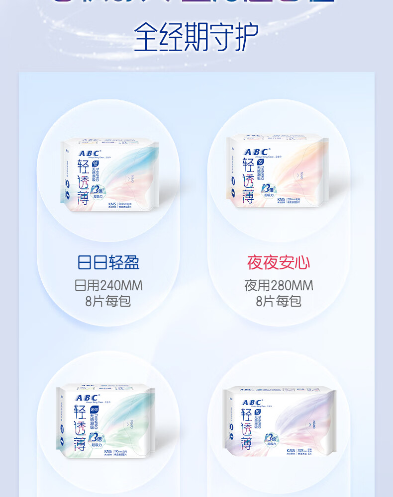 ABCKMS轻透薄健康配方超薄无感日夜卫生巾套装12包81片