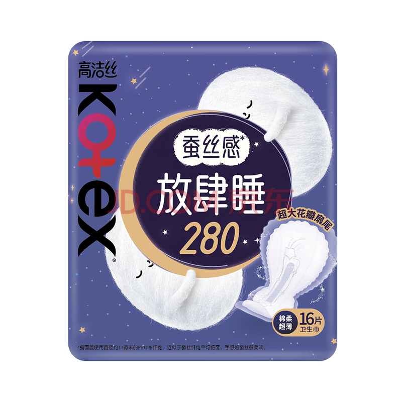 高洁丝【长夜呵护】蚕丝感放肆睡卫生巾280mm16片日用姨妈巾