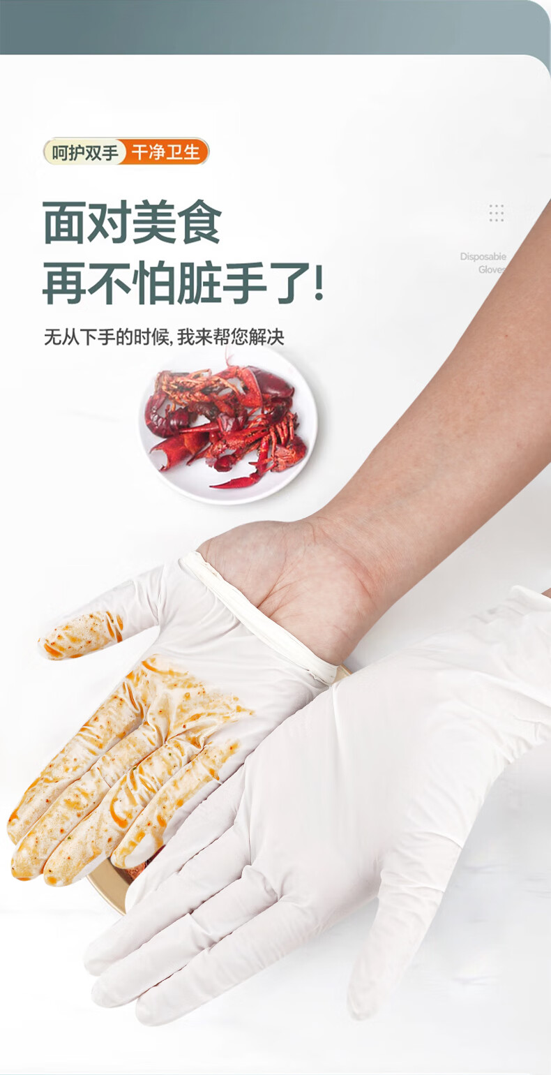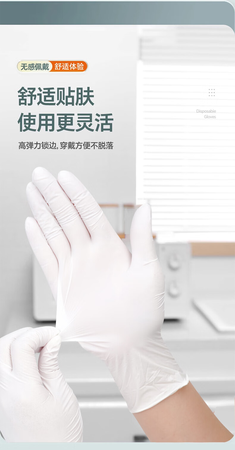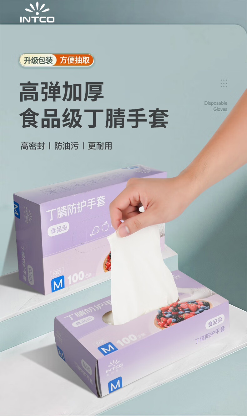 英科医疗(INTCO)一次性手套丁腈手套100只中码加厚耐用丁晴白色食品级橡胶手套