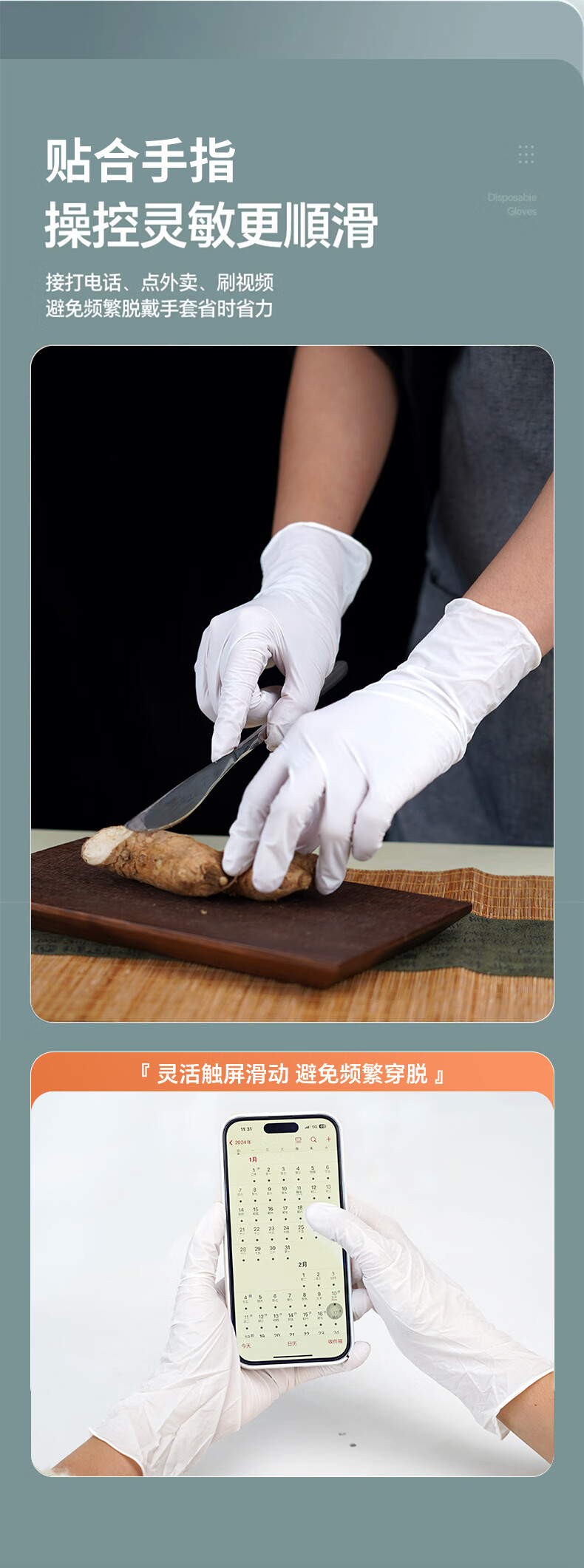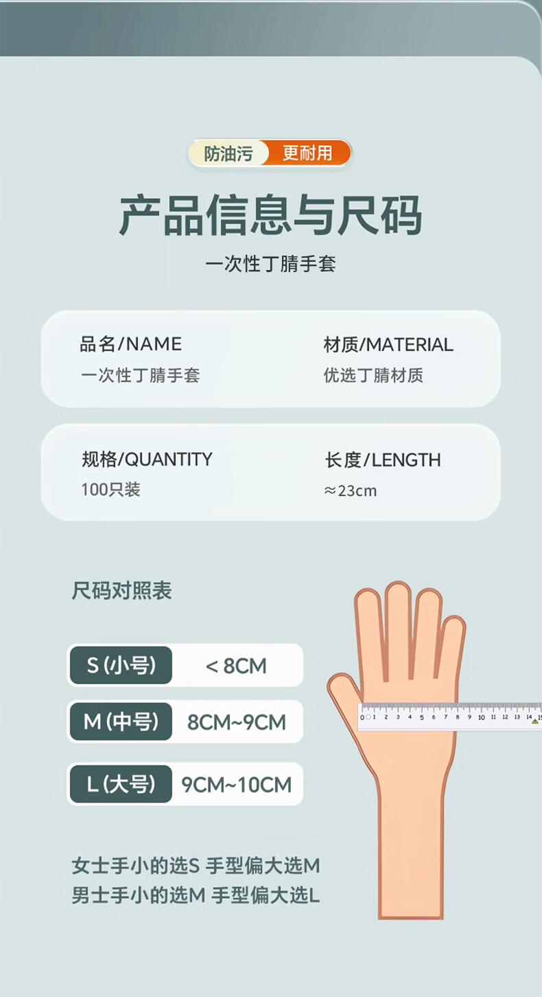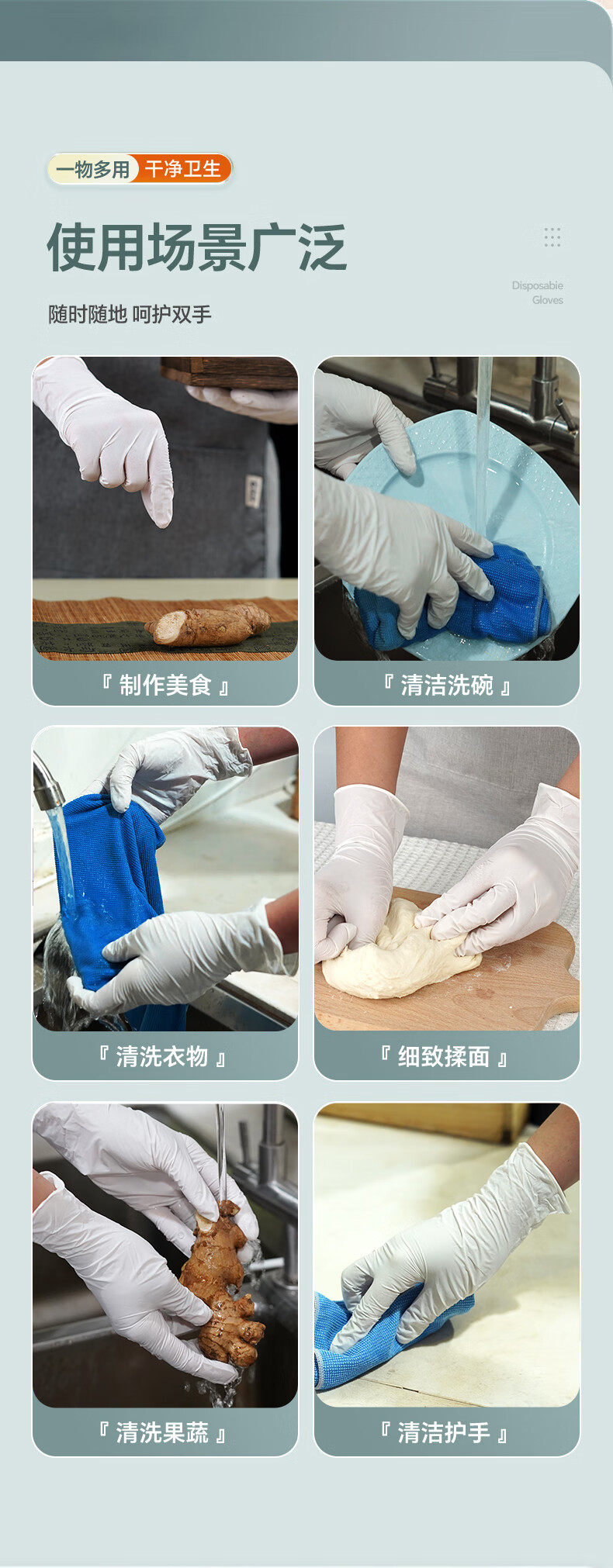 英科医疗(INTCO)一次性手套丁腈手套100只中码加厚耐用丁晴白色食品级橡胶手套