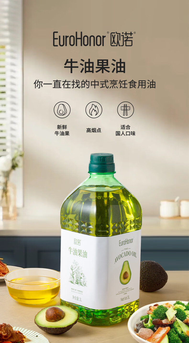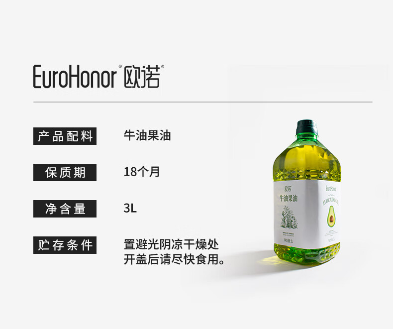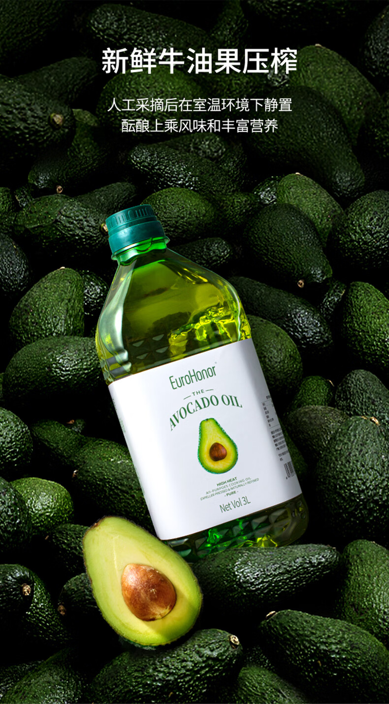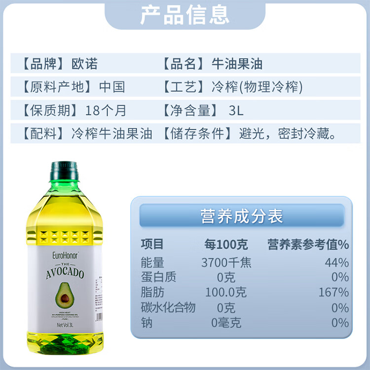 欧诺牛油果油3L鳄梨油酪梨油低温压榨热炒油大桶家庭装食用油儿童可用