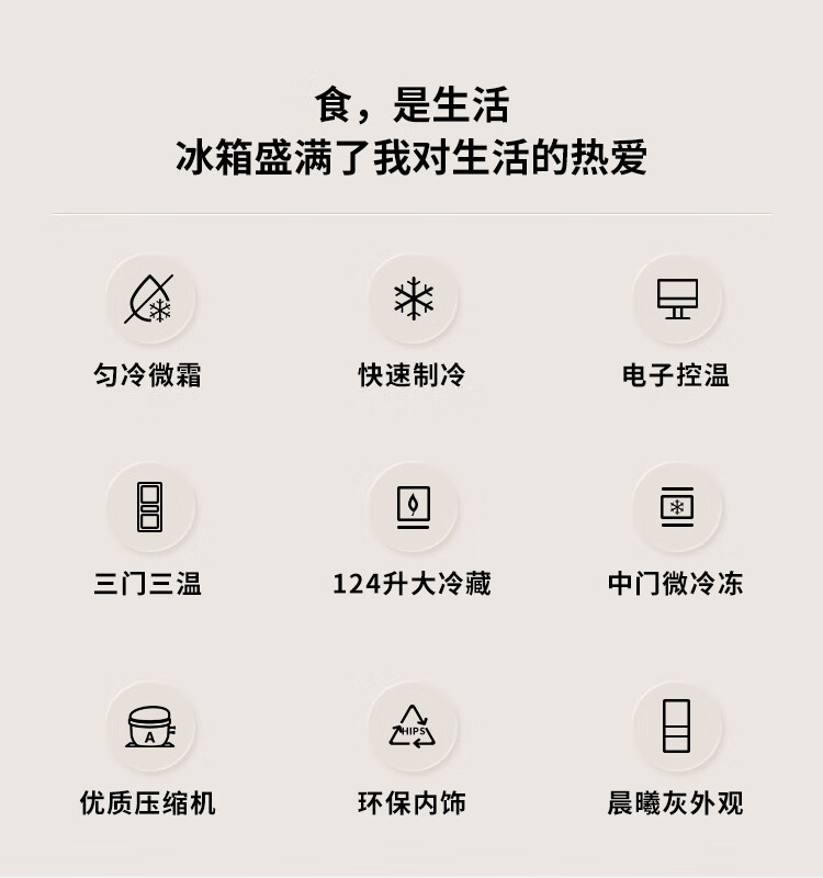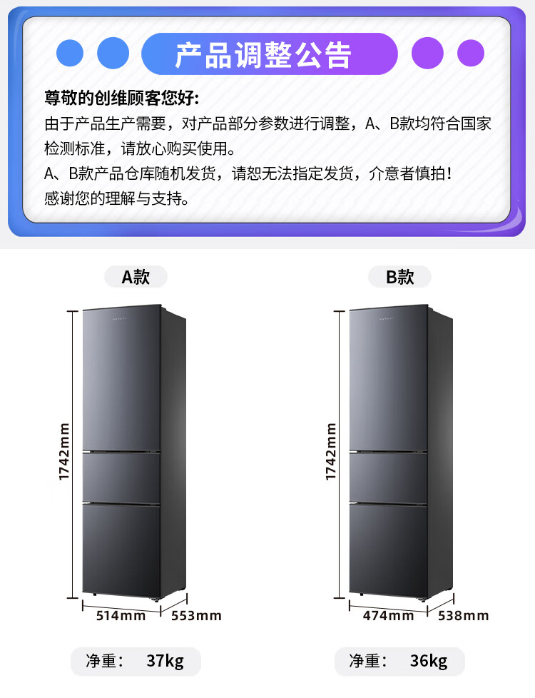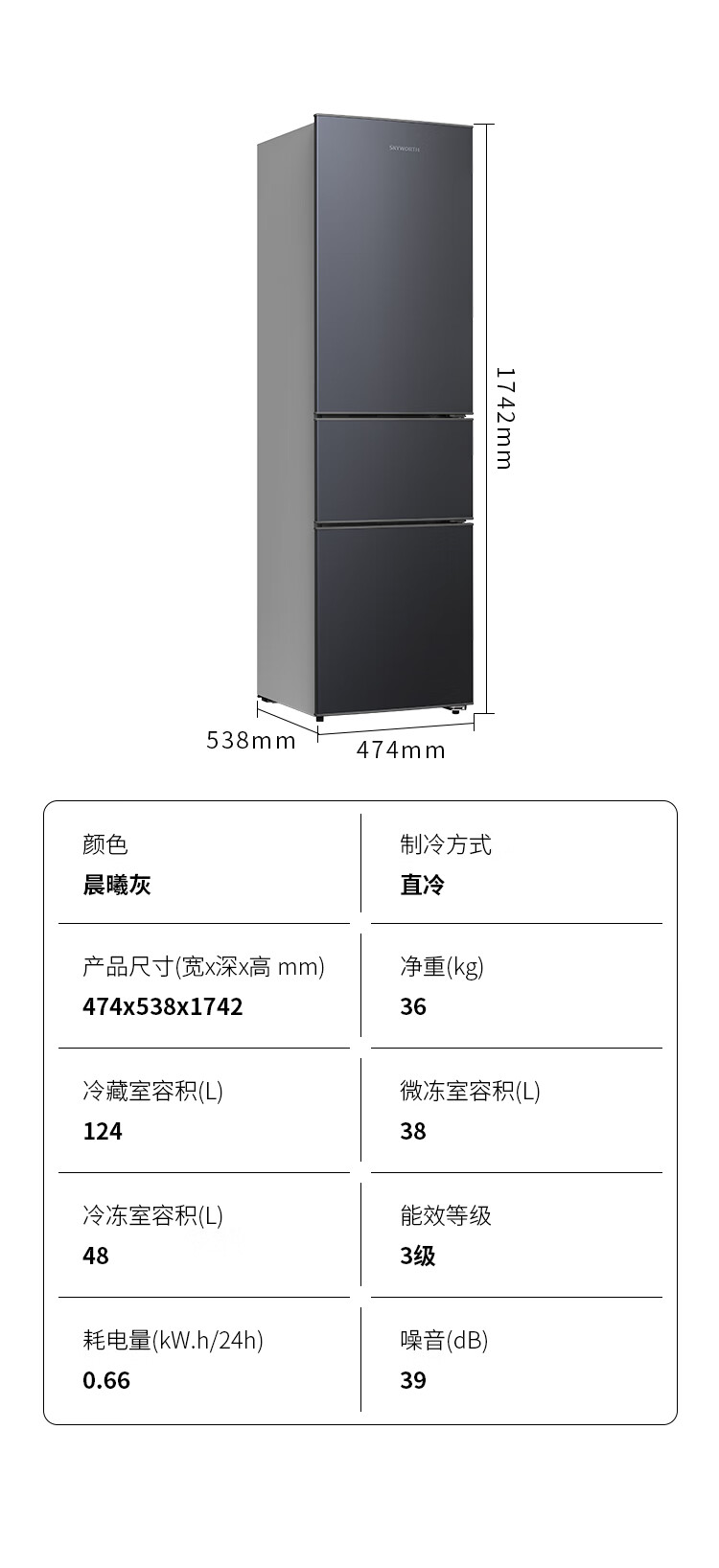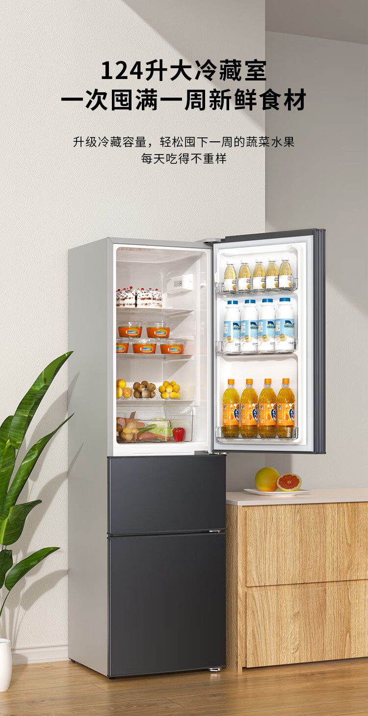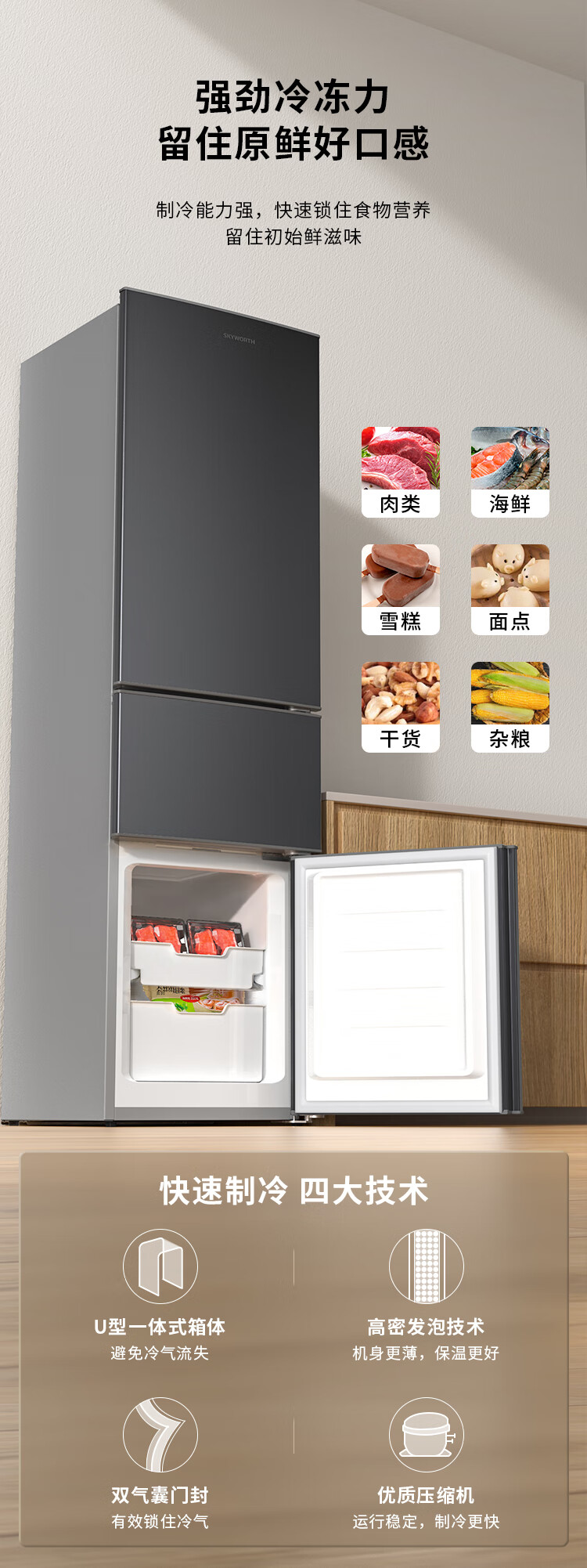 创维 (SKYWORTH)210升小冰箱 三门家用小型电冰箱 三门三温区中门软冷冻 保鲜省电低音P21TJ