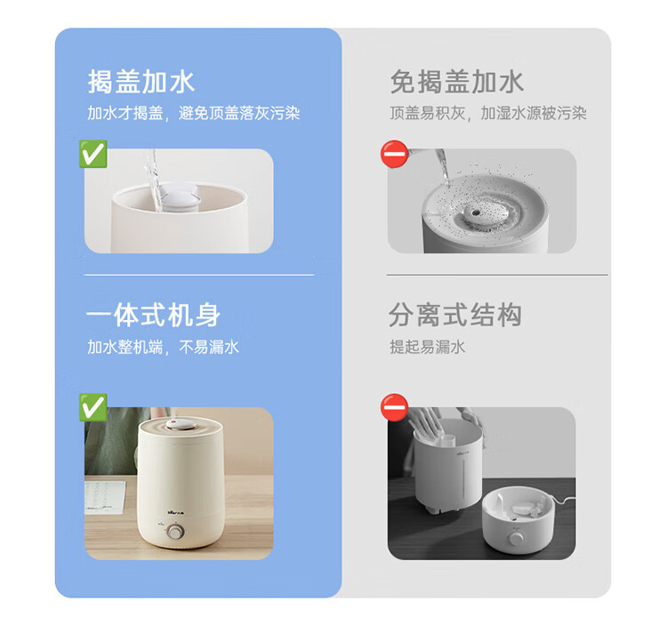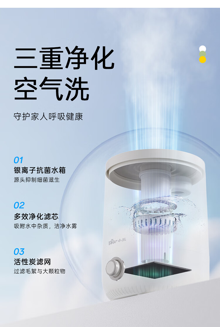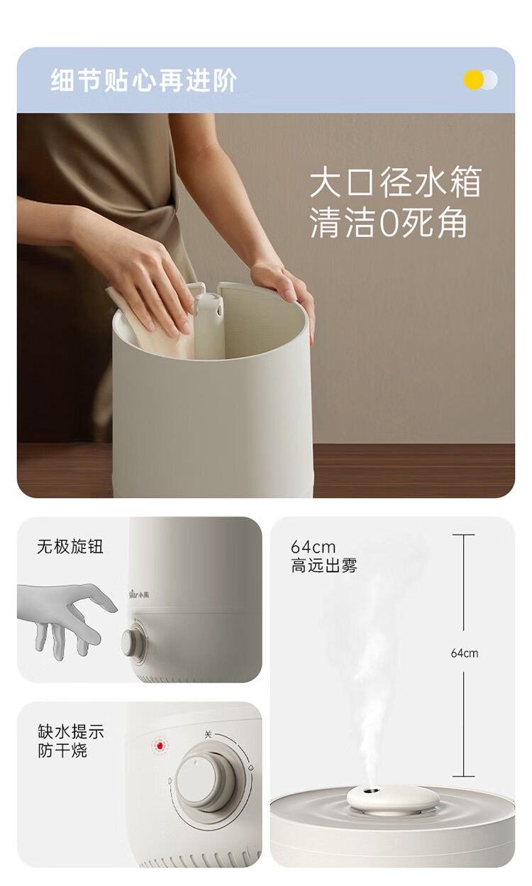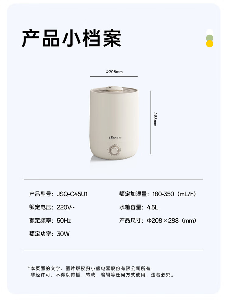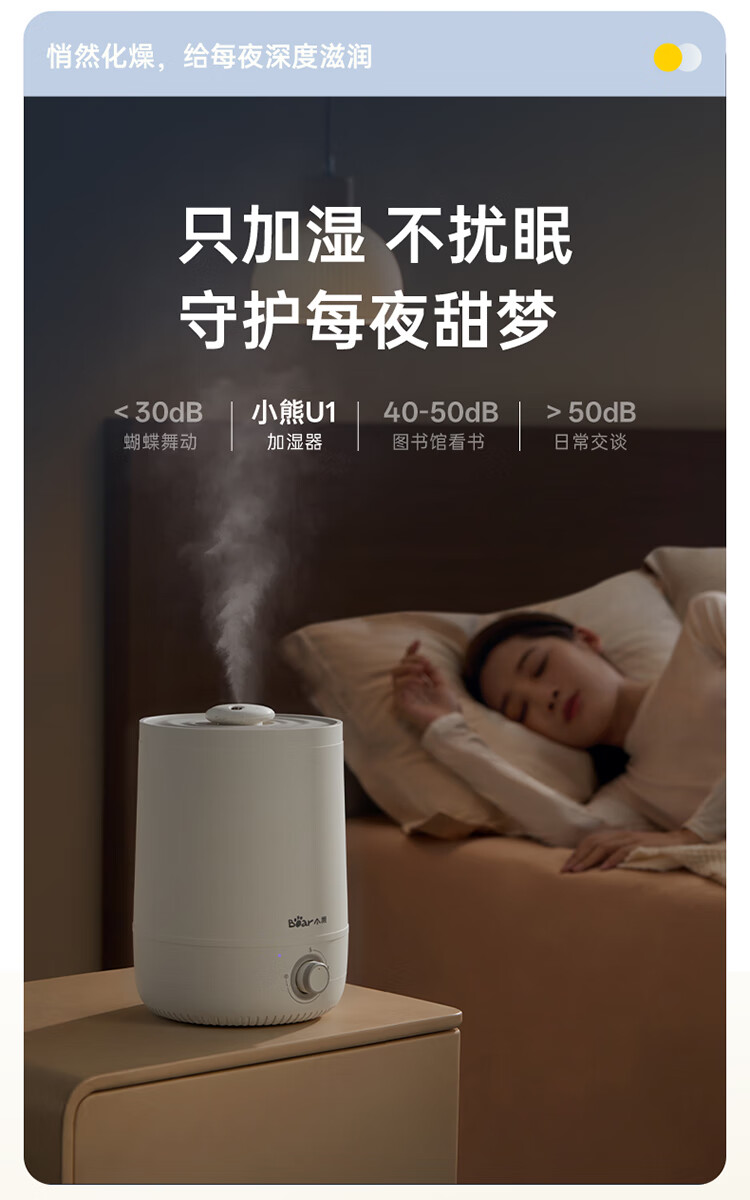 小熊(Bear)加湿器家用卧室 桌面大雾量办公室空调房轻音 母婴幼儿空气净化抑菌加湿器小型 JSQ-C45U1