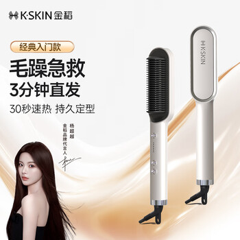 金稻直发梳夹板内扣卷发棒直板夹高颅顶改善毛躁蓬松造型神器梳子 30秒速热恒温护发KD380白色出行必备