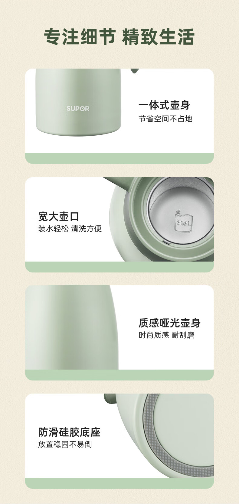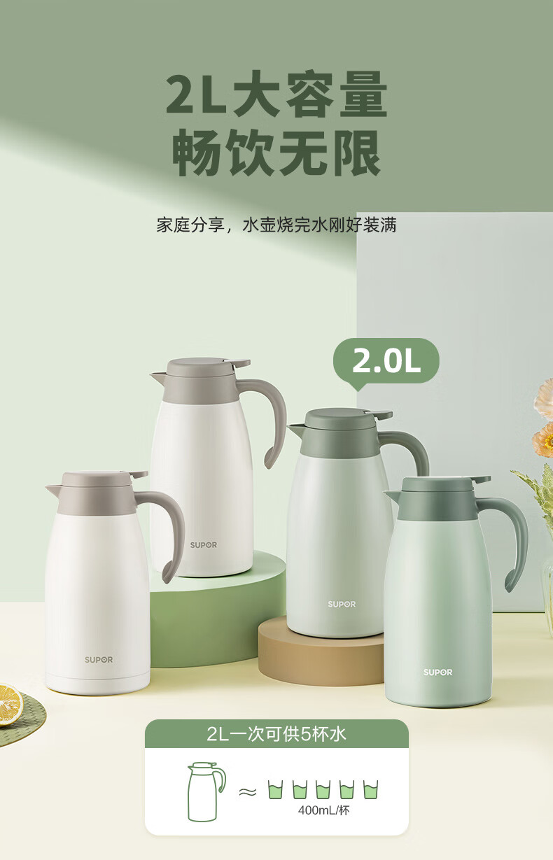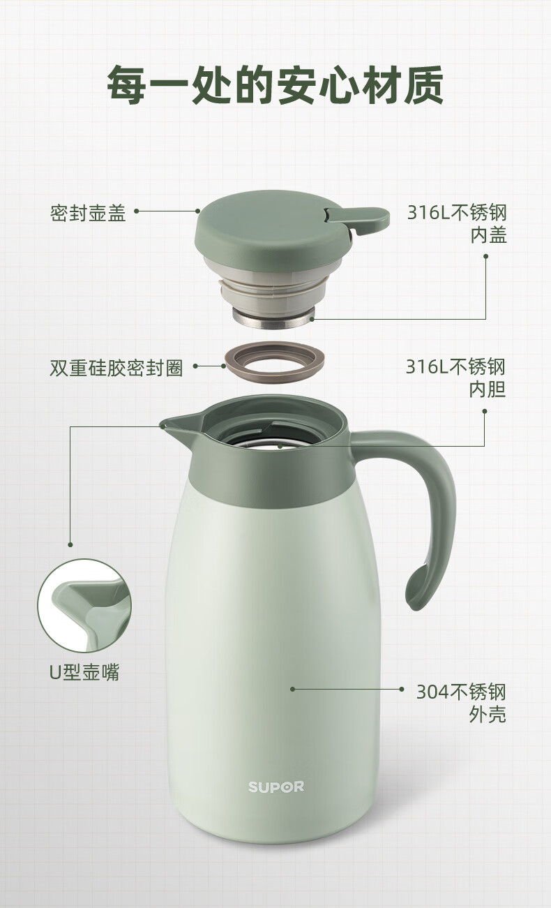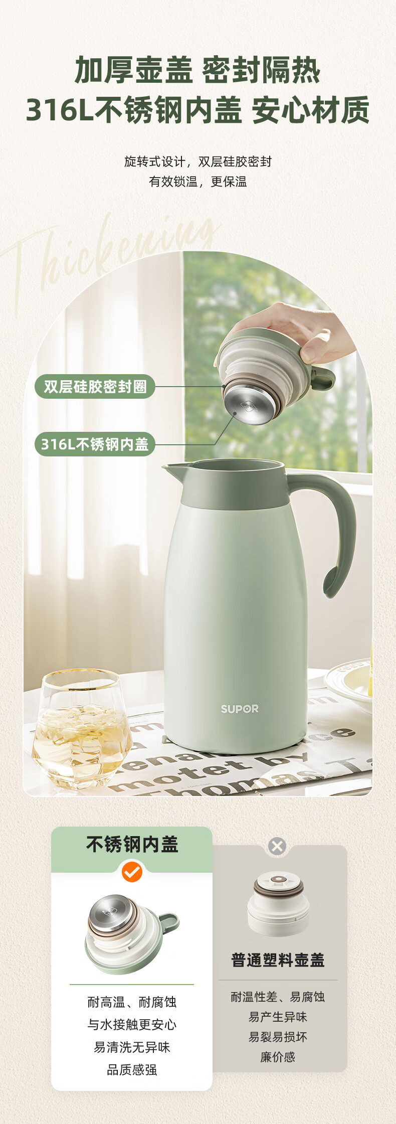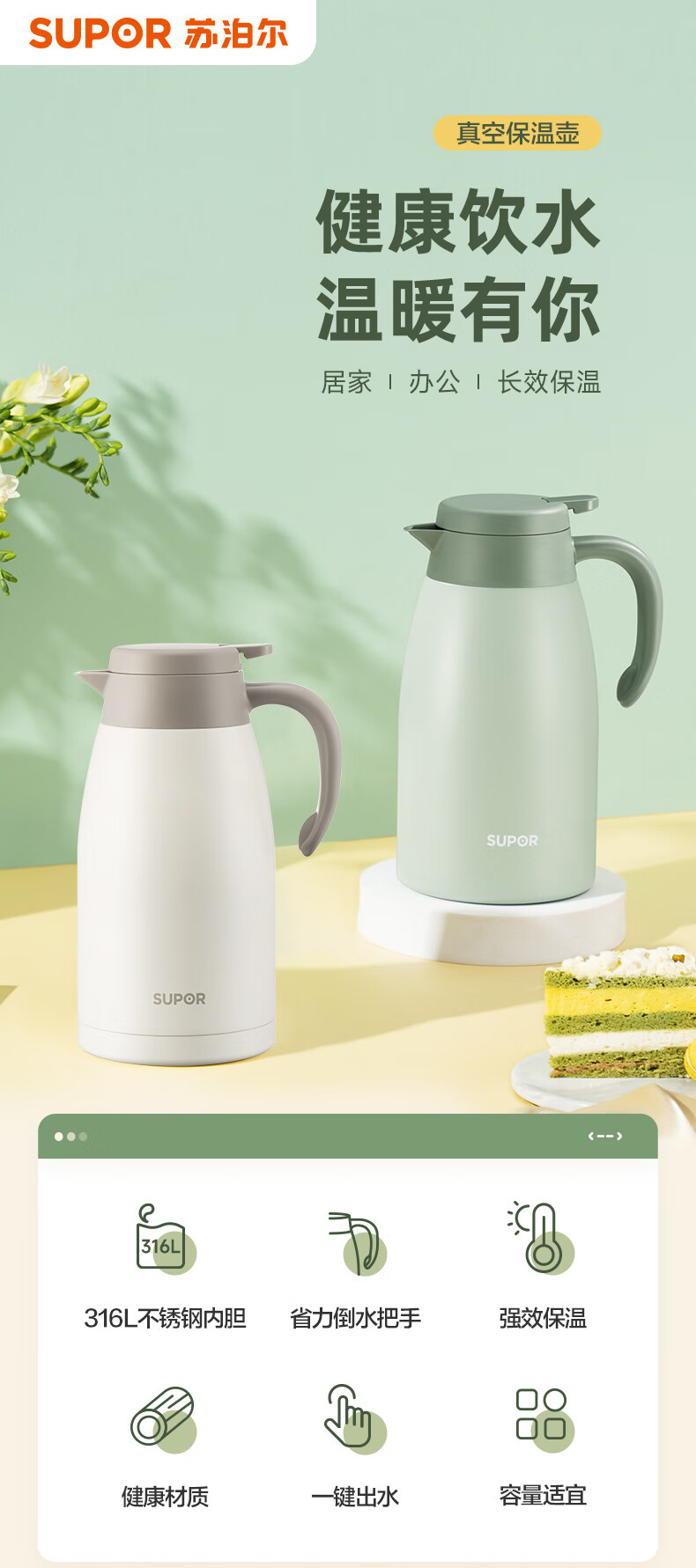 苏泊尔(SUPOR)保温壶家用大容量水壶316L不锈钢真空保