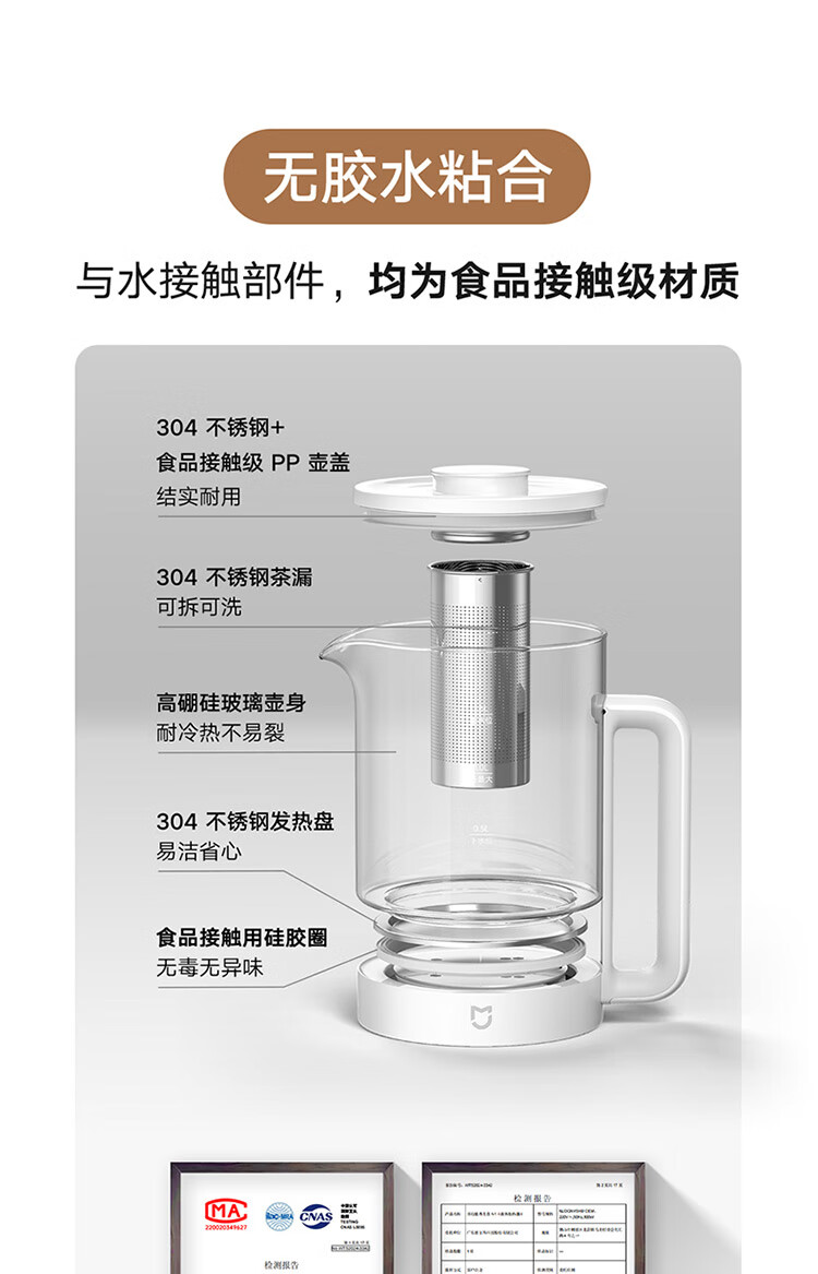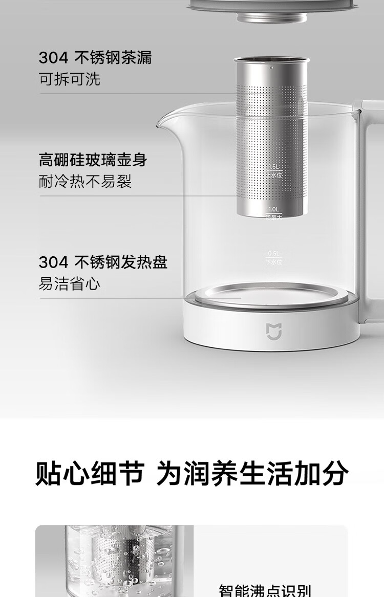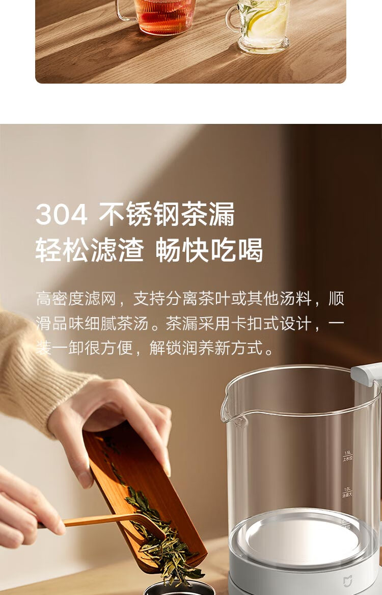 米家小米养生壶N1烧水壶恒温电热水壶煮茶壶泡茶器一体机304不锈钢米家小白壶家用办公室附茶漏1.5L