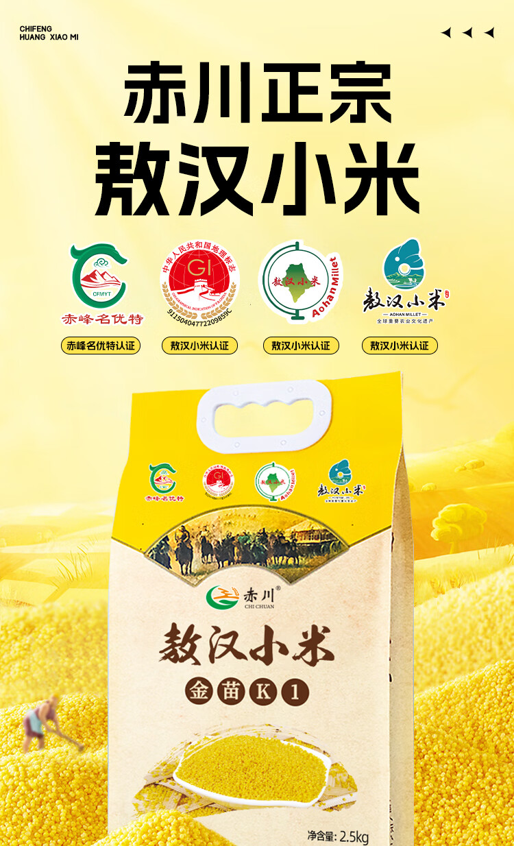 赤川敖汉黄小米5斤 25年新米金苗K1 内蒙古赤峰小米粥杂粮粥黄小米
