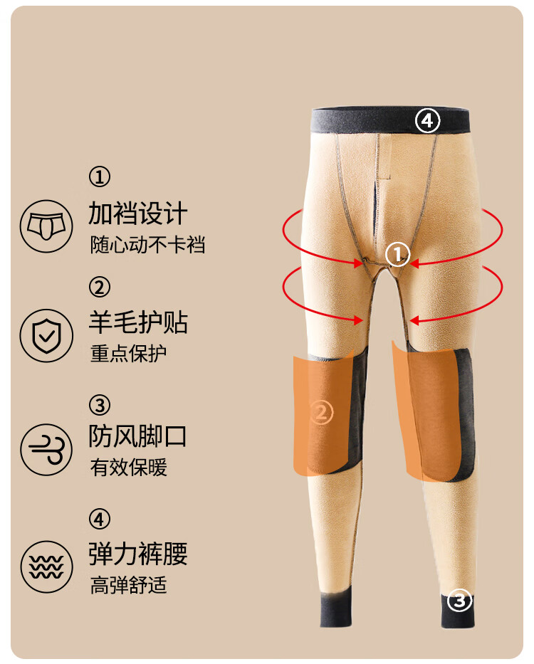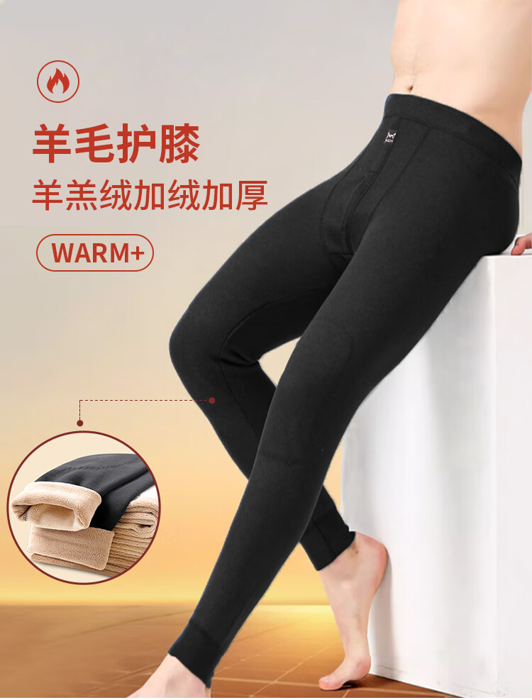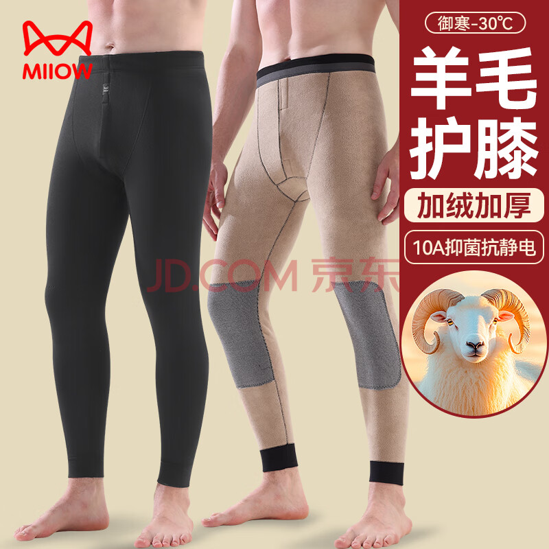 猫人男士保暖裤男加绒加厚带羊毛护膝秋裤棉裤冬季男大码防寒打底裤