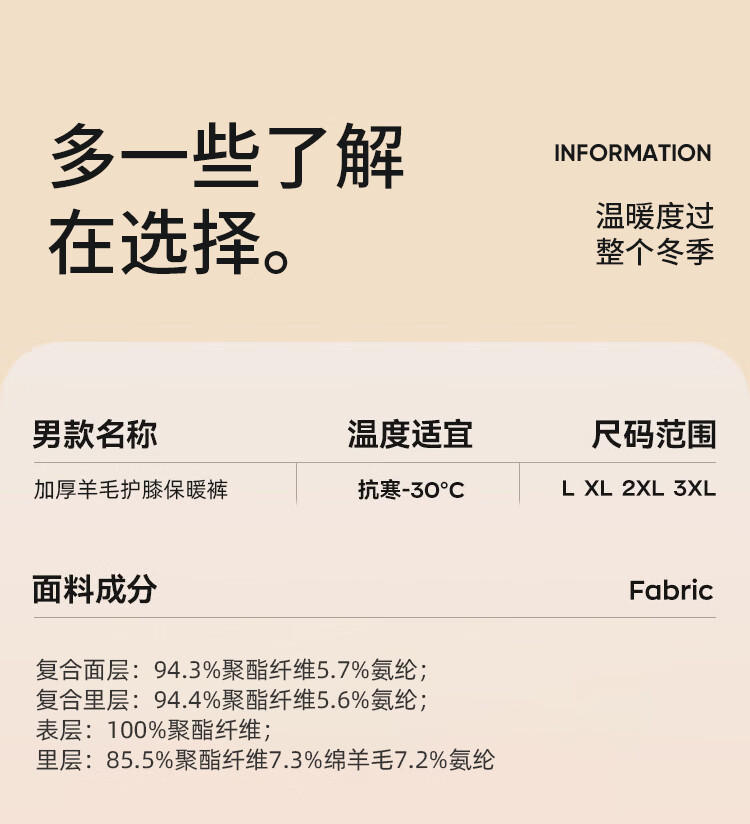 羊毛护膝保暖裤-黑色