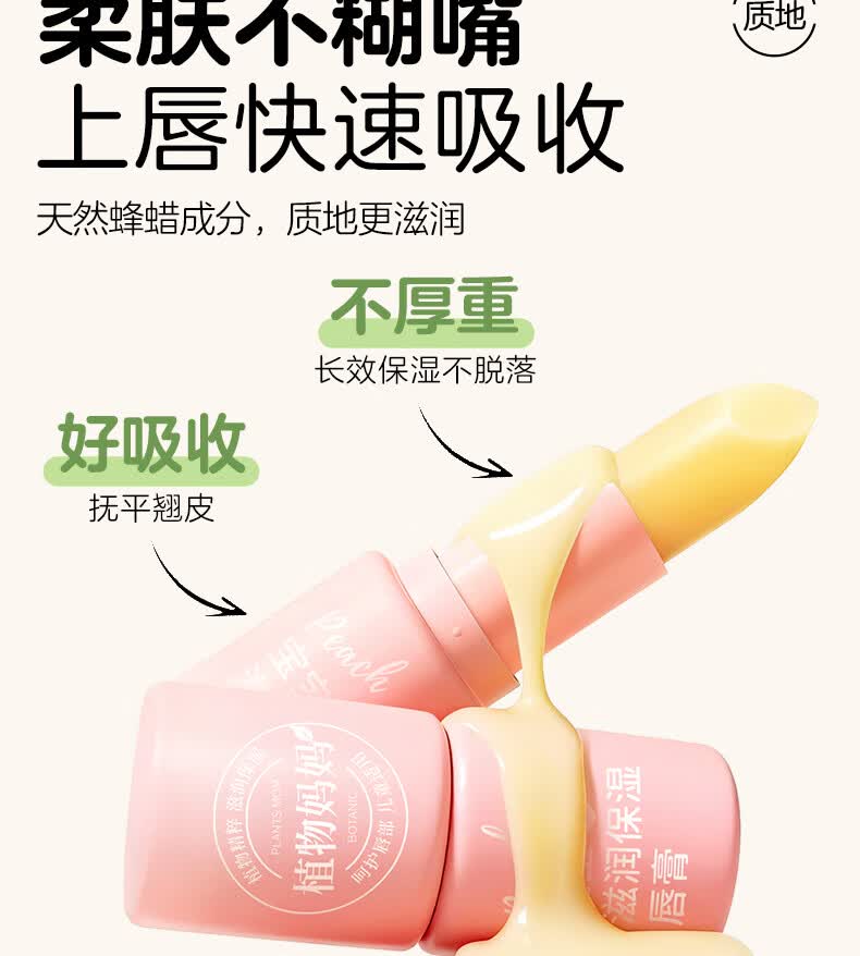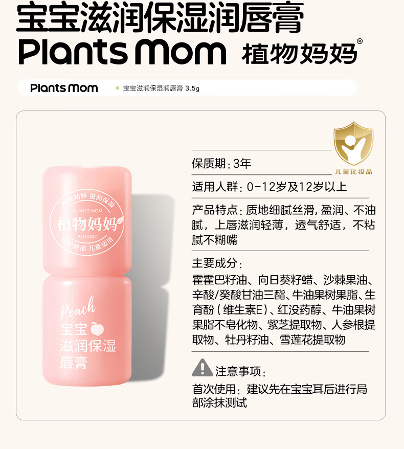 植物妈妈儿童润唇膏3-6-12岁女孩防干裂保湿滋润护唇宝宝婴幼儿专用3.5g*2