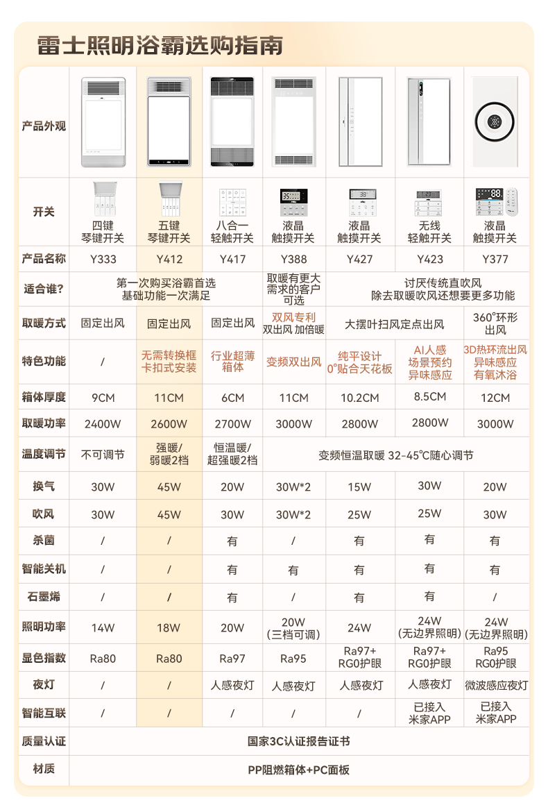 雷士(NVC)风暖浴霸双核机械系列暖风排换气一体Y412浴室卫生间