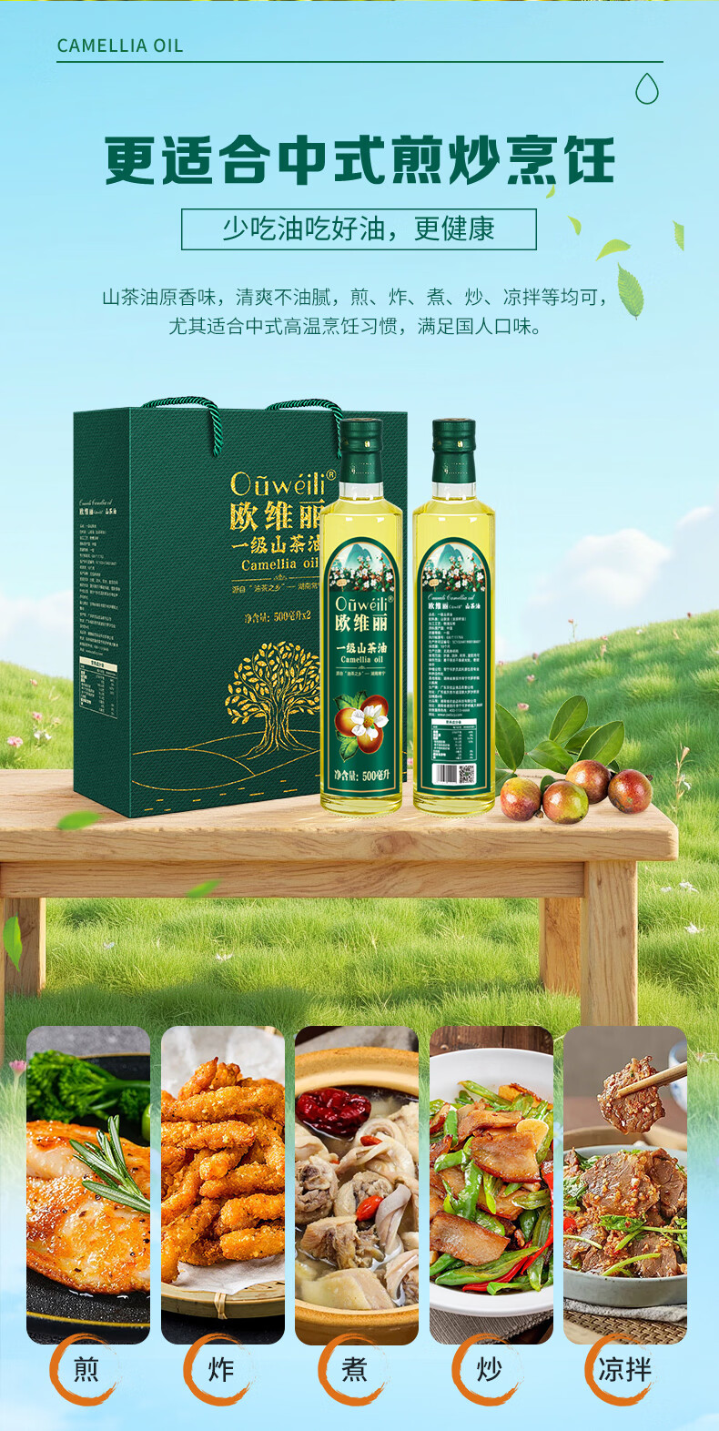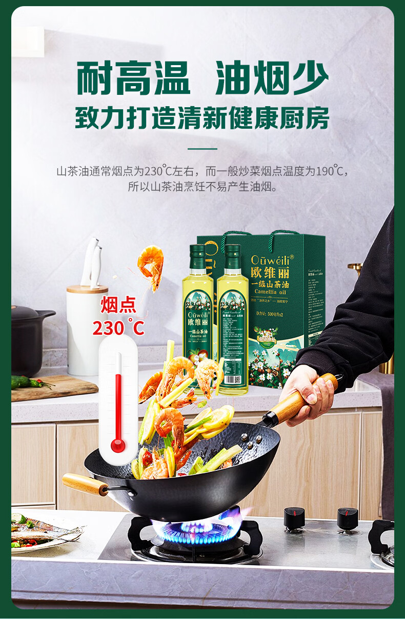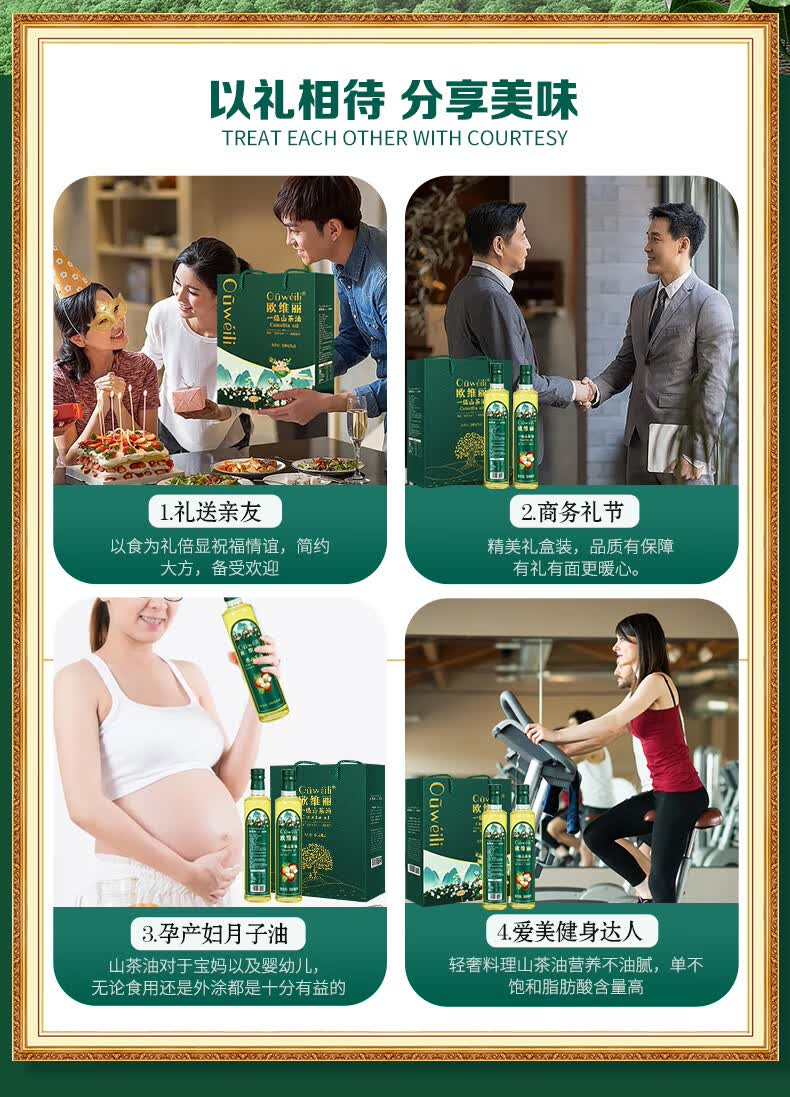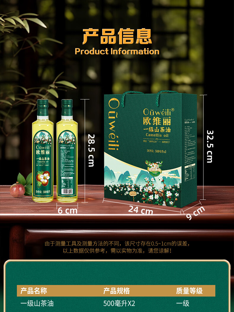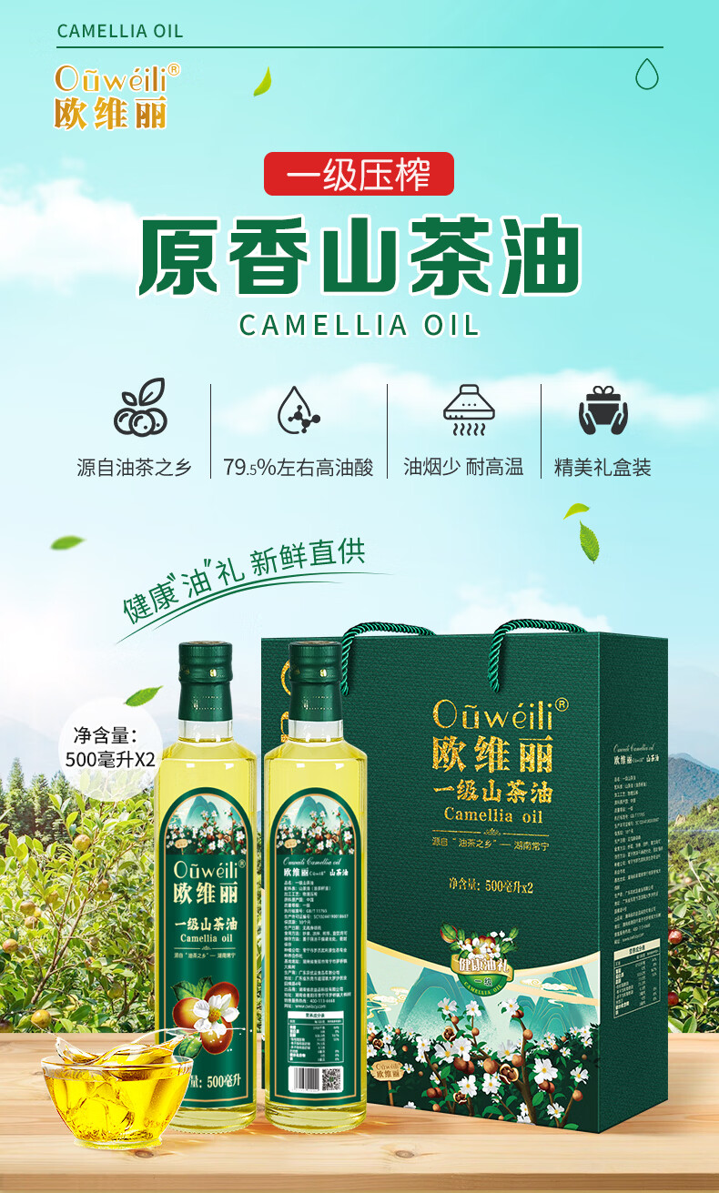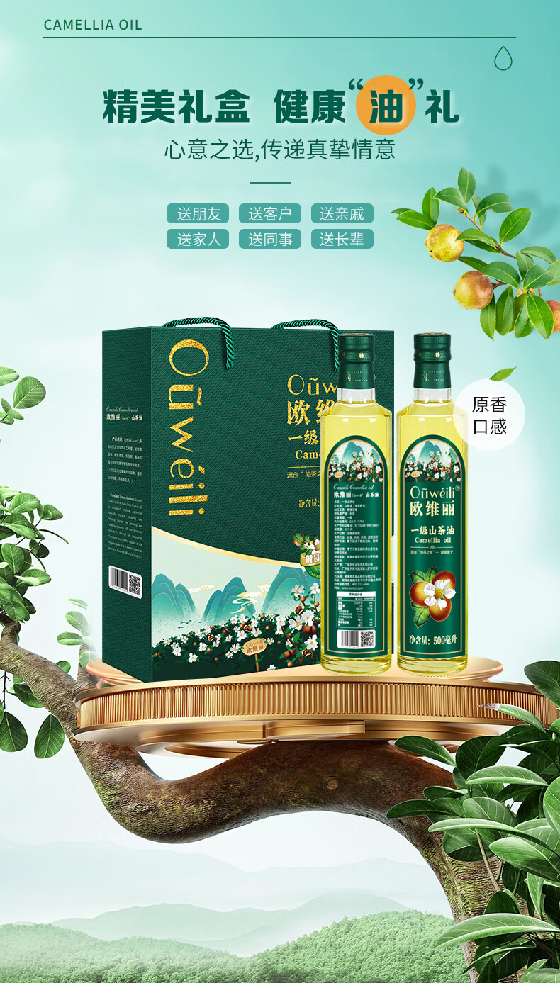 欧维丽(Ouweili)欧维丽保真山茶油500ml*2礼盒 原香纯正茶籽油食用油 团购礼盒