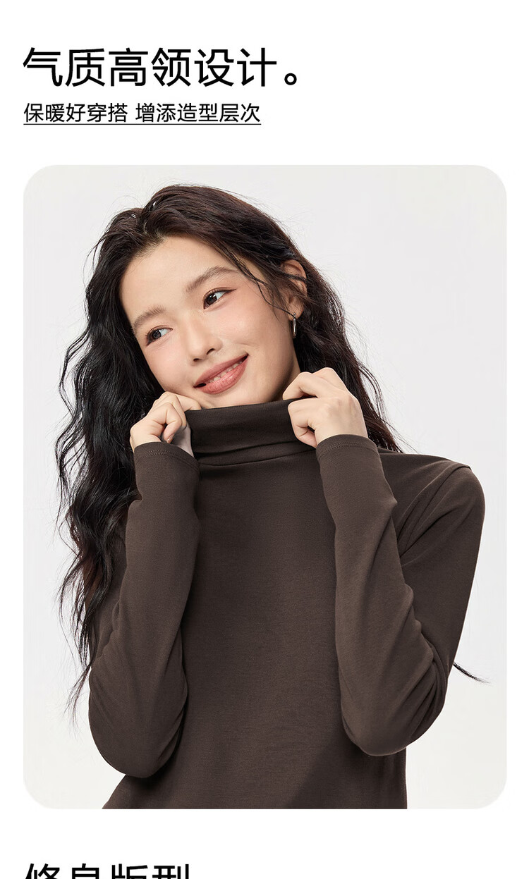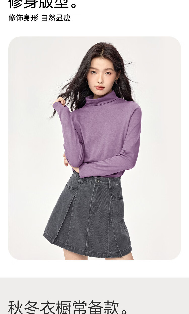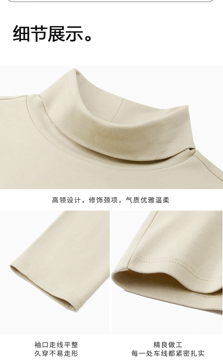 佐丹奴(Giordano)T恤女基础款打底衫纯棉上衣奢滑触感高领长袖t恤女05322804