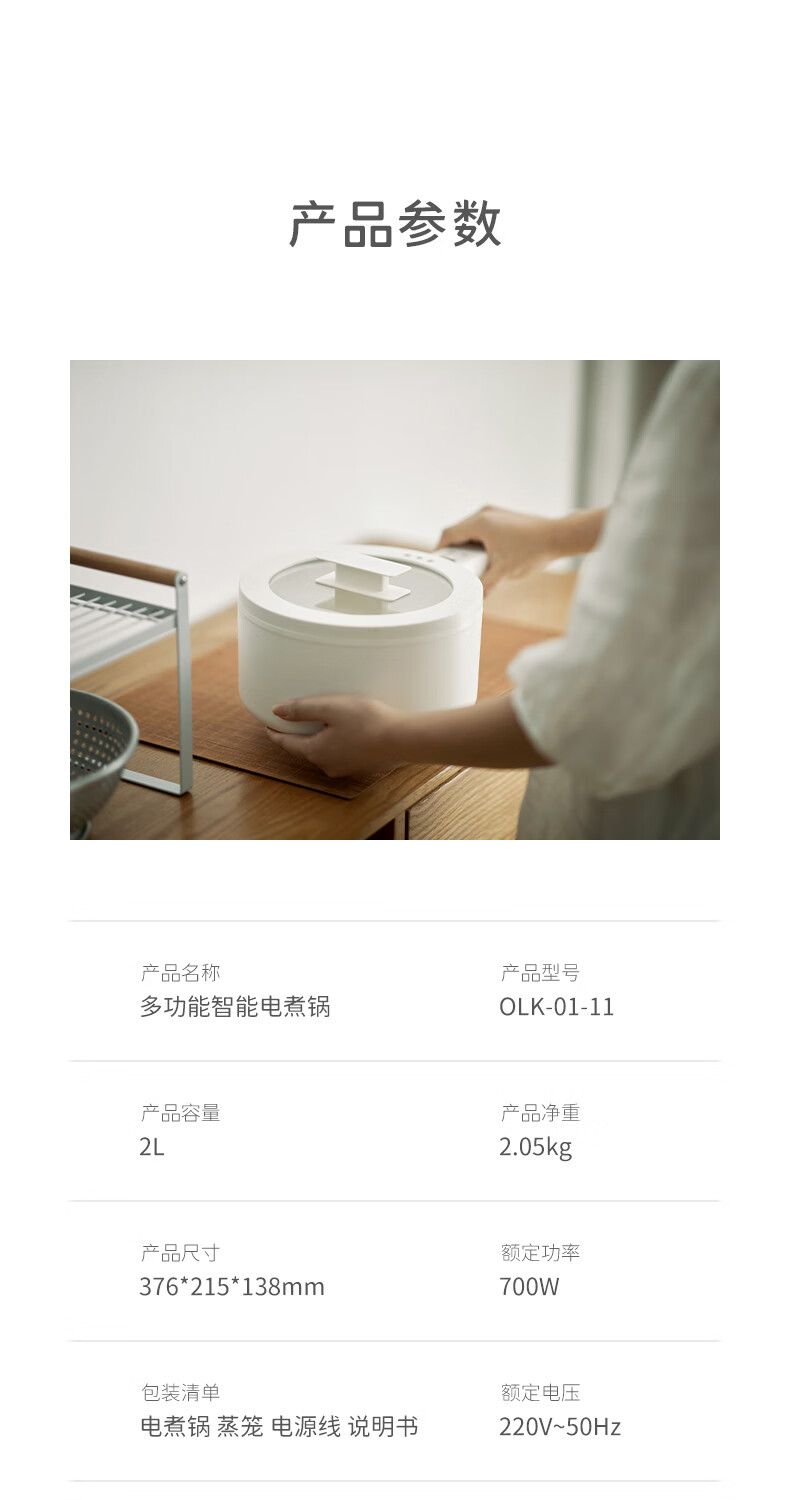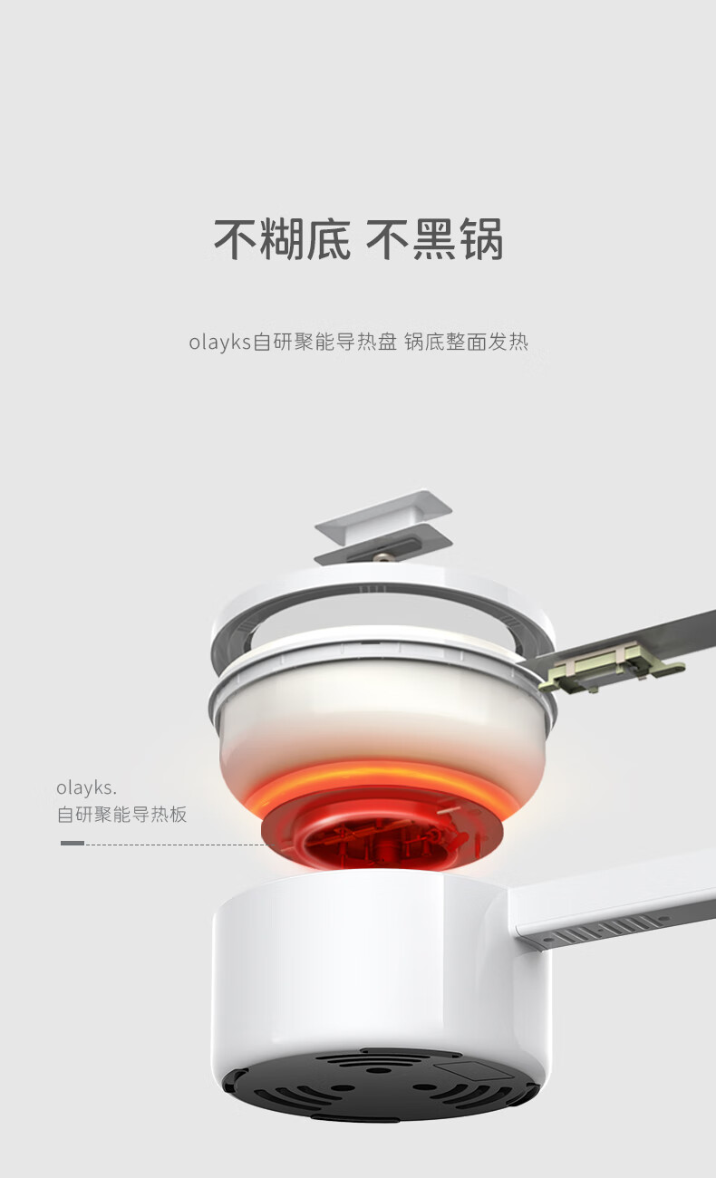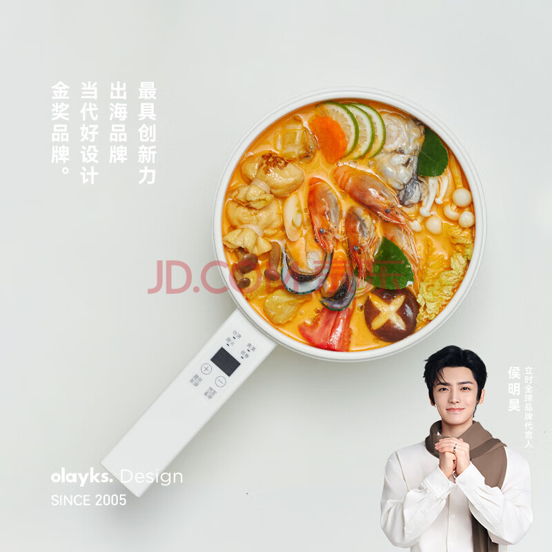 olayks立时 电煮锅智能菜单小电锅电热锅多功能锅电炒锅学生宿舍小锅泡面电火锅 2L