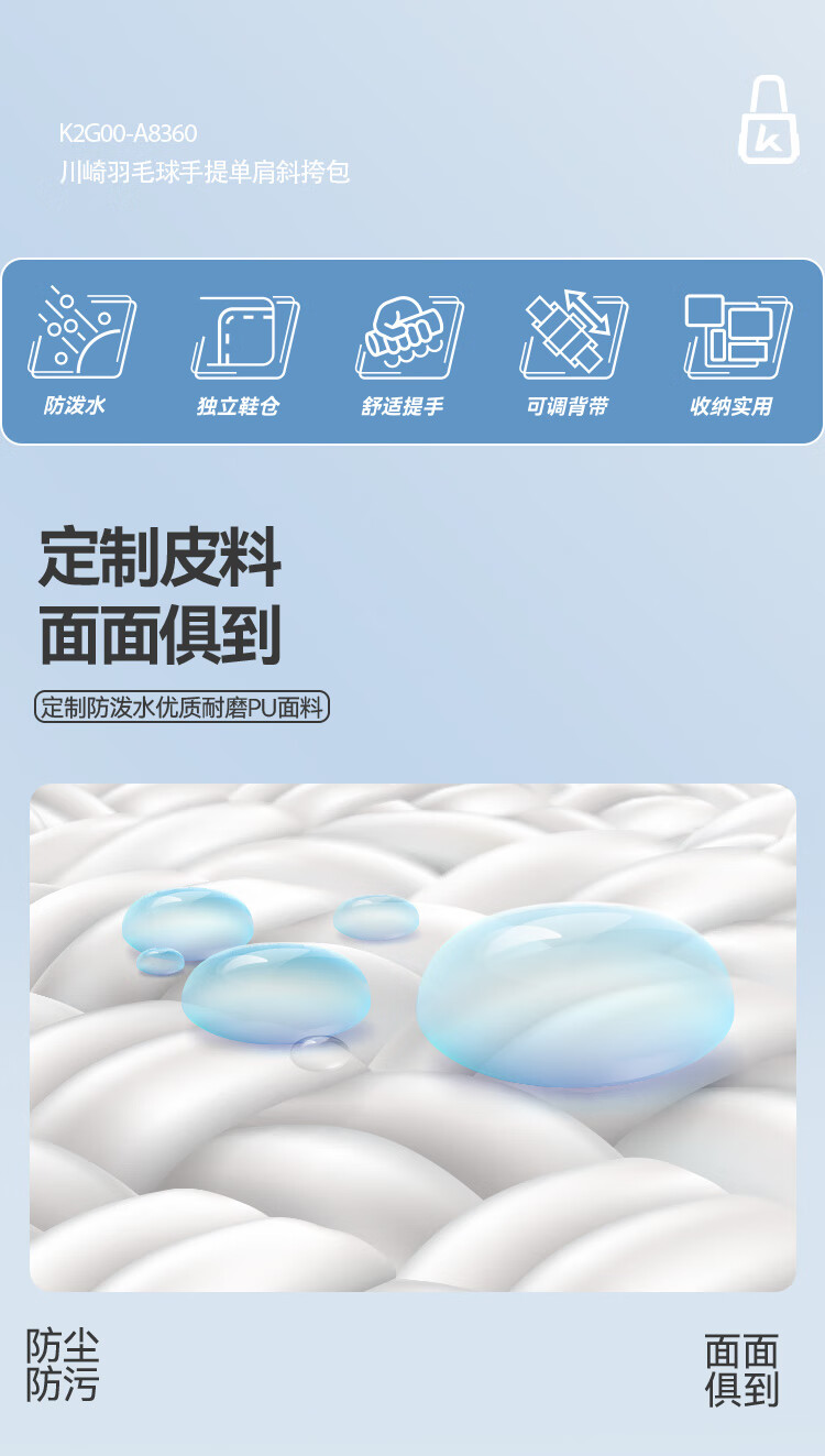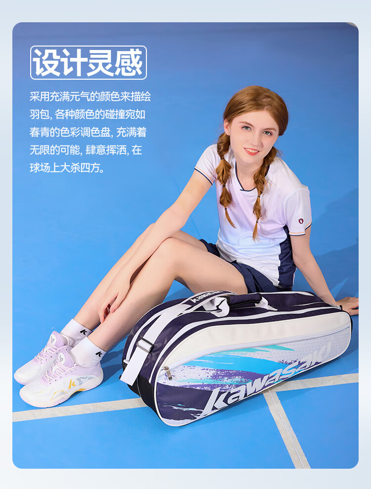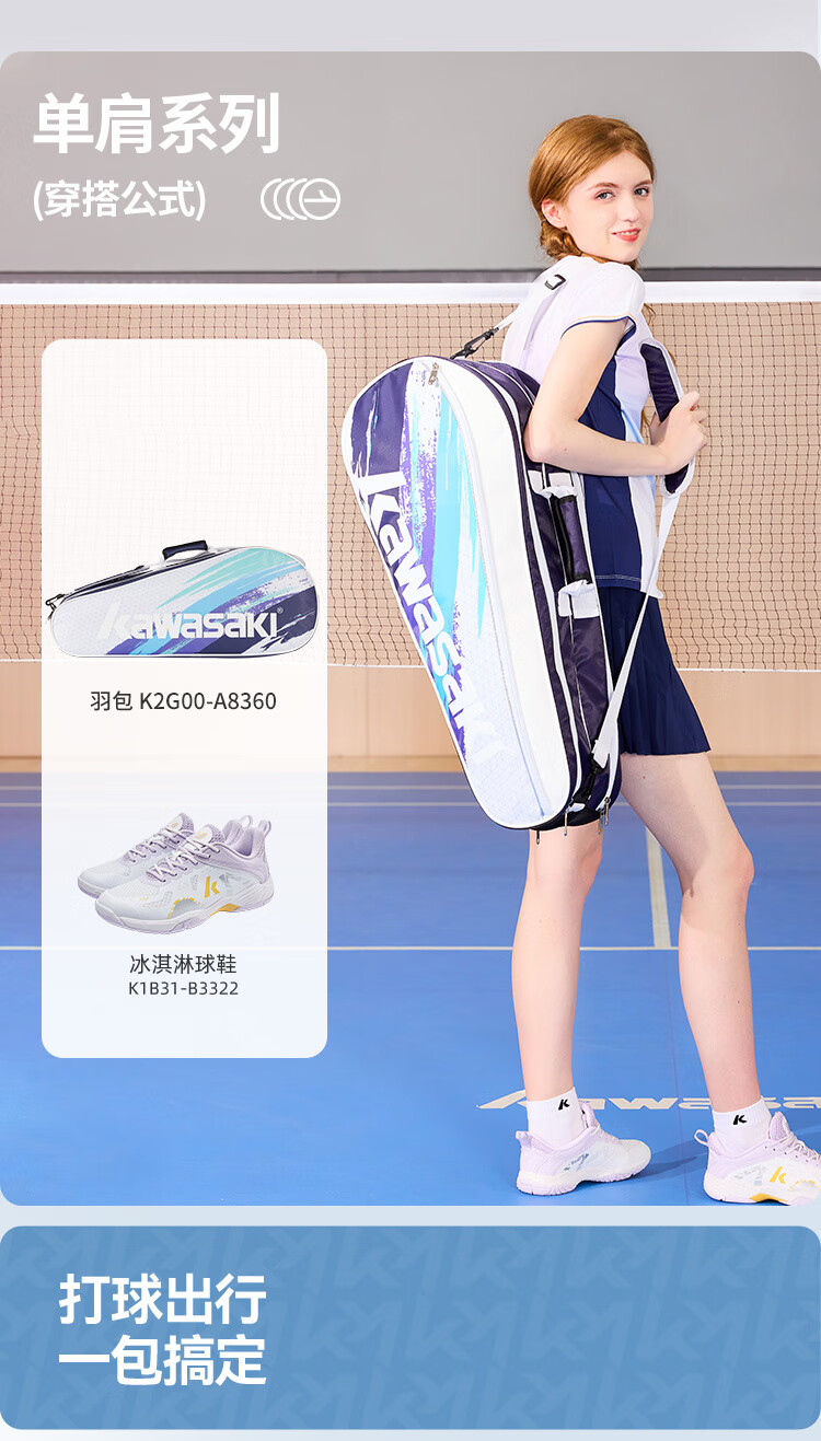 川崎川崎羽毛球包大容量手提单肩包球拍包袋子3支装A8360夜兰