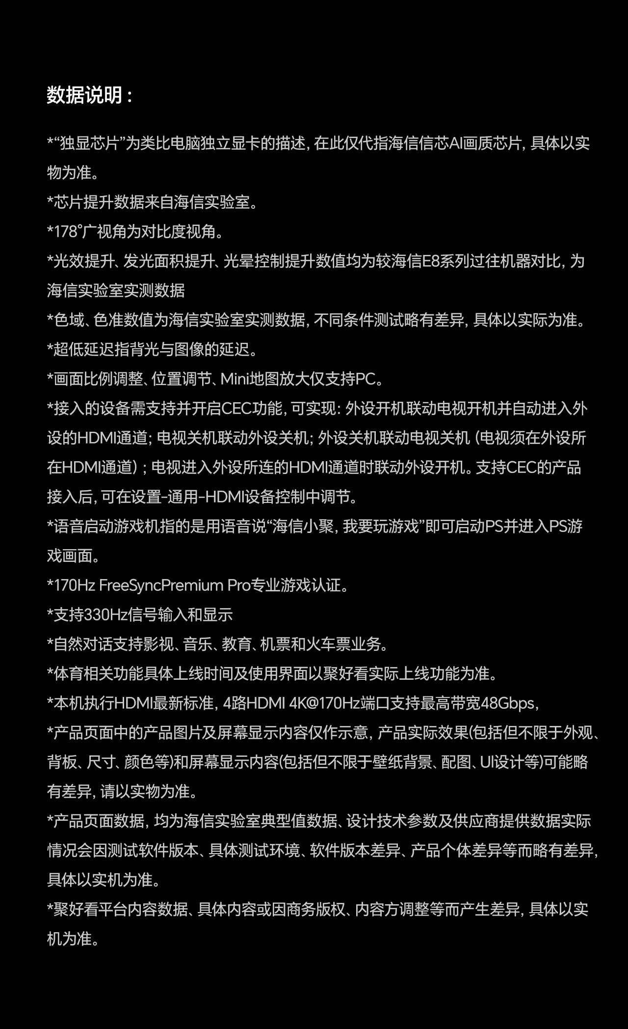 海信电视E8Q 85英寸 信芯H6 4224分区U+MiniLED 黑曜屏