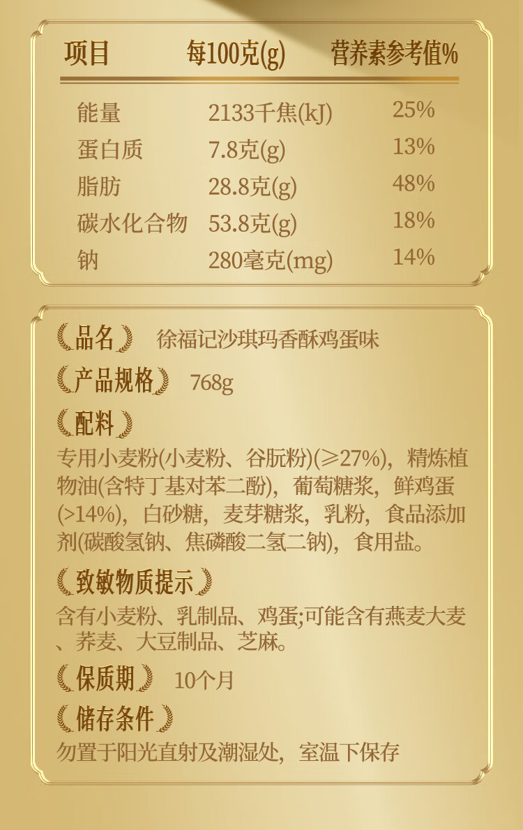 徐福记香酥鸡蛋味沙琪玛768g/袋 12道工序匠心传承 早餐零食新年送礼