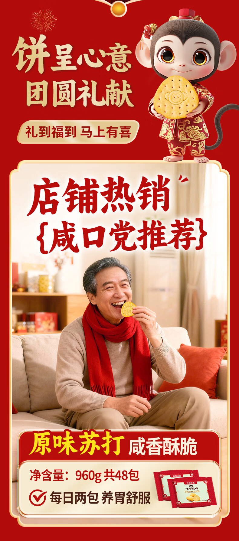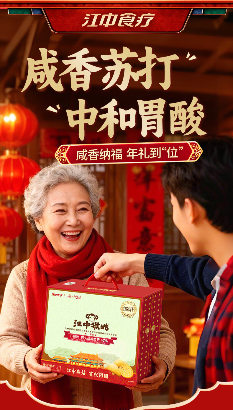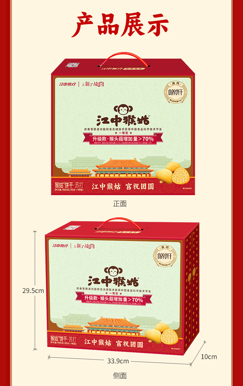 江中猴姑养胃苏打猴头菇饼干年货礼盒咸味中和胃酸中老年人孕妇零食960g