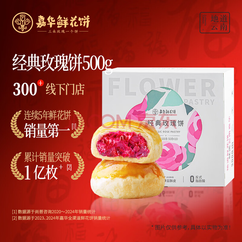 嘉华鲜花饼经典玫瑰花饼50g*10枚短保云南特产糕点早餐零食年货礼盒