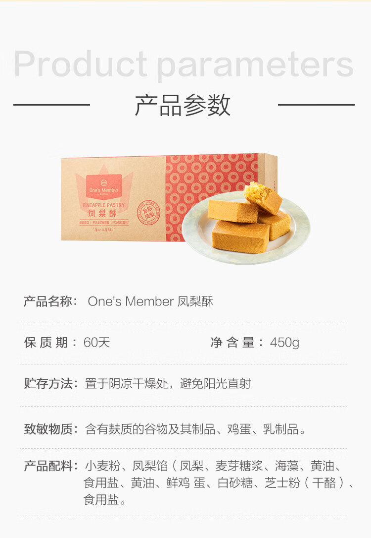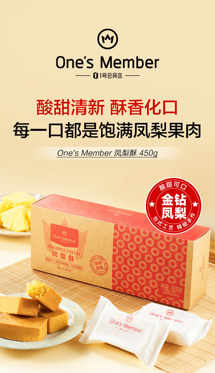 1号会员店原味金砖凤梨酥450g(10枚)手工制作糕点零食干货下午茶点心