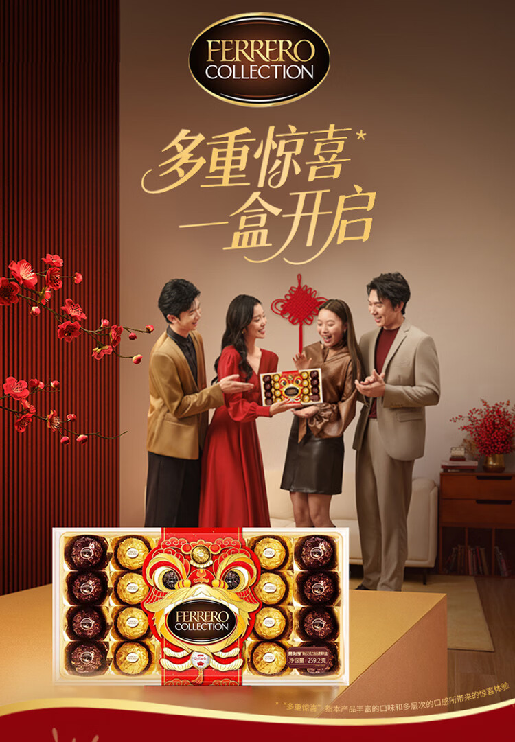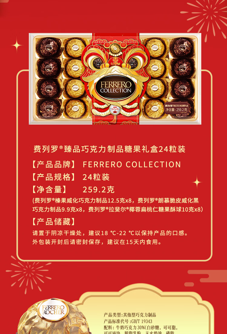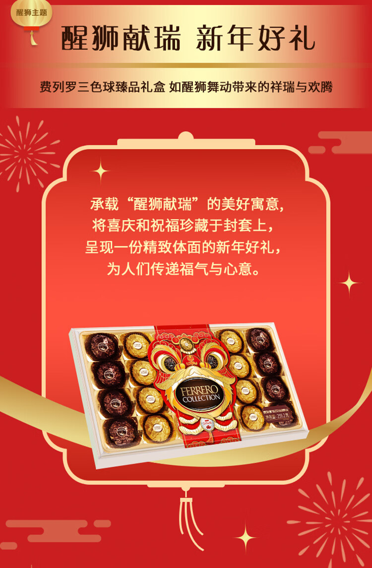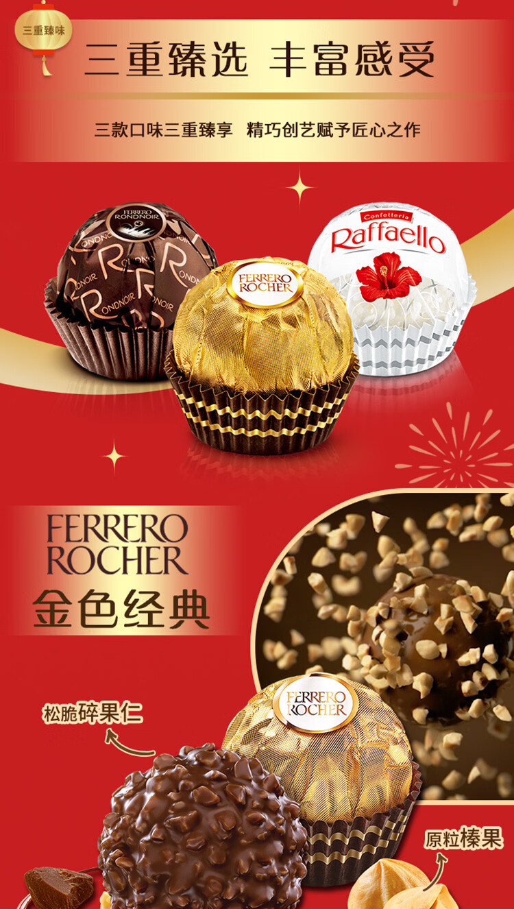 费列罗 榛果巧克力礼盒 3种口味24粒259.2g 零食 糖果 年货礼盒