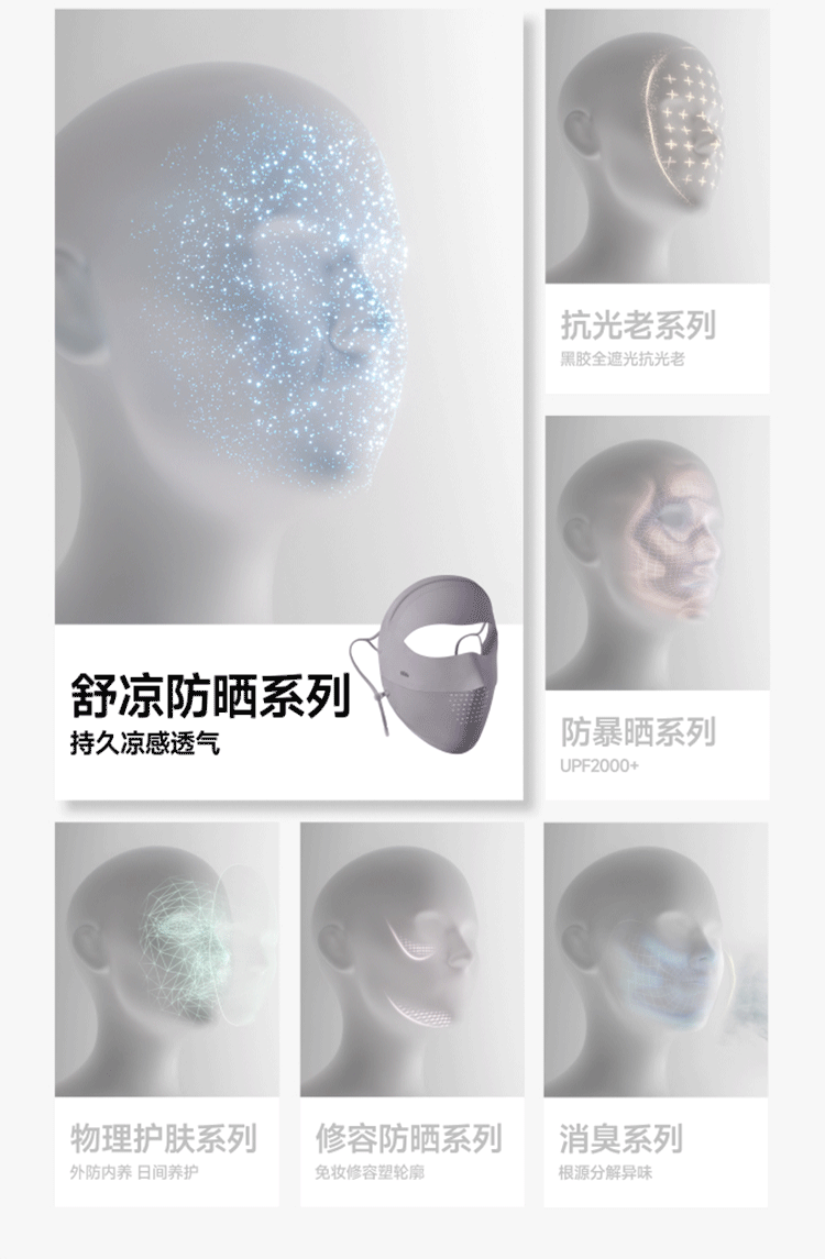 蕉下(beneunder)面膜防晒面罩遮全脸轻薄无痕防晒口罩脸基尼高颜骑行透气医美灰