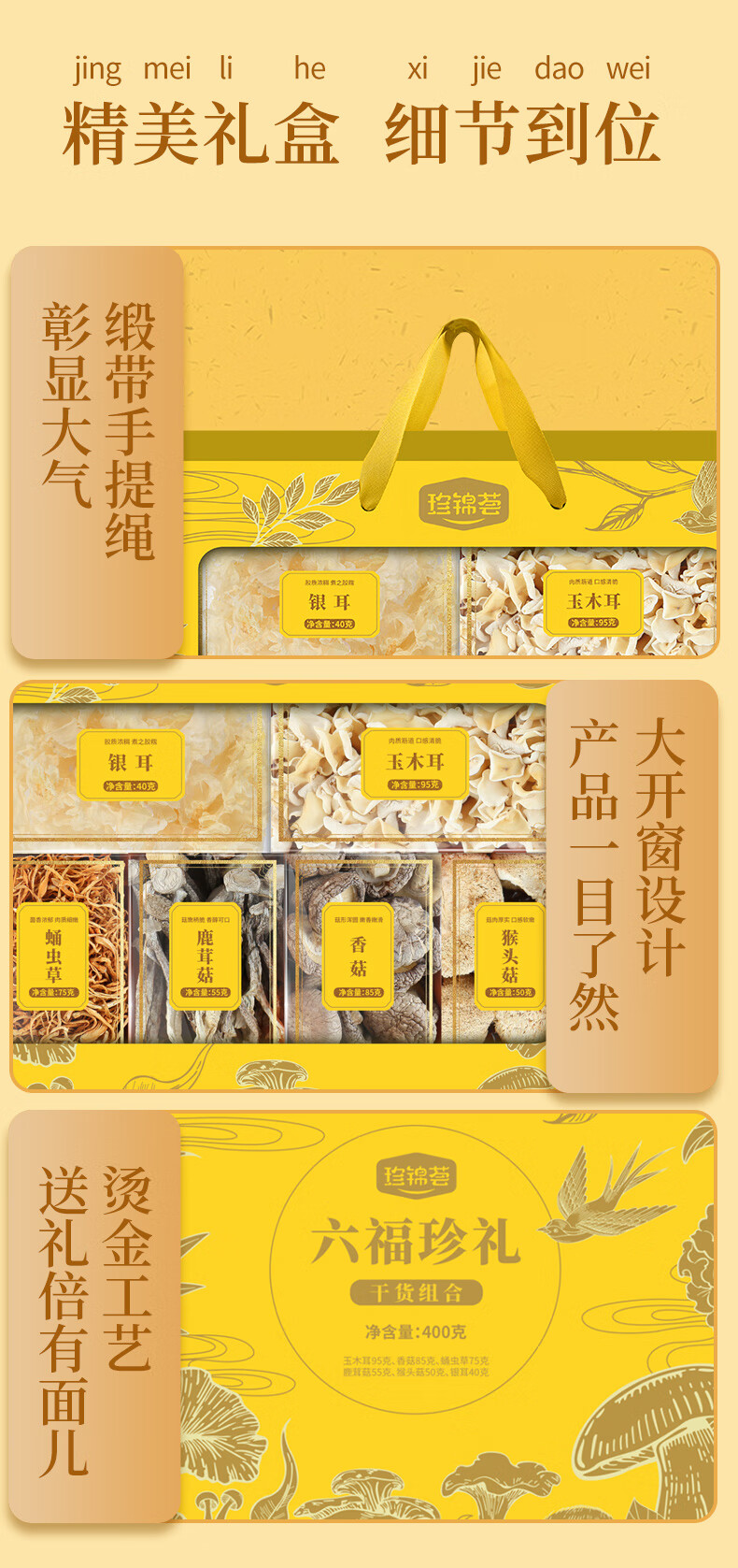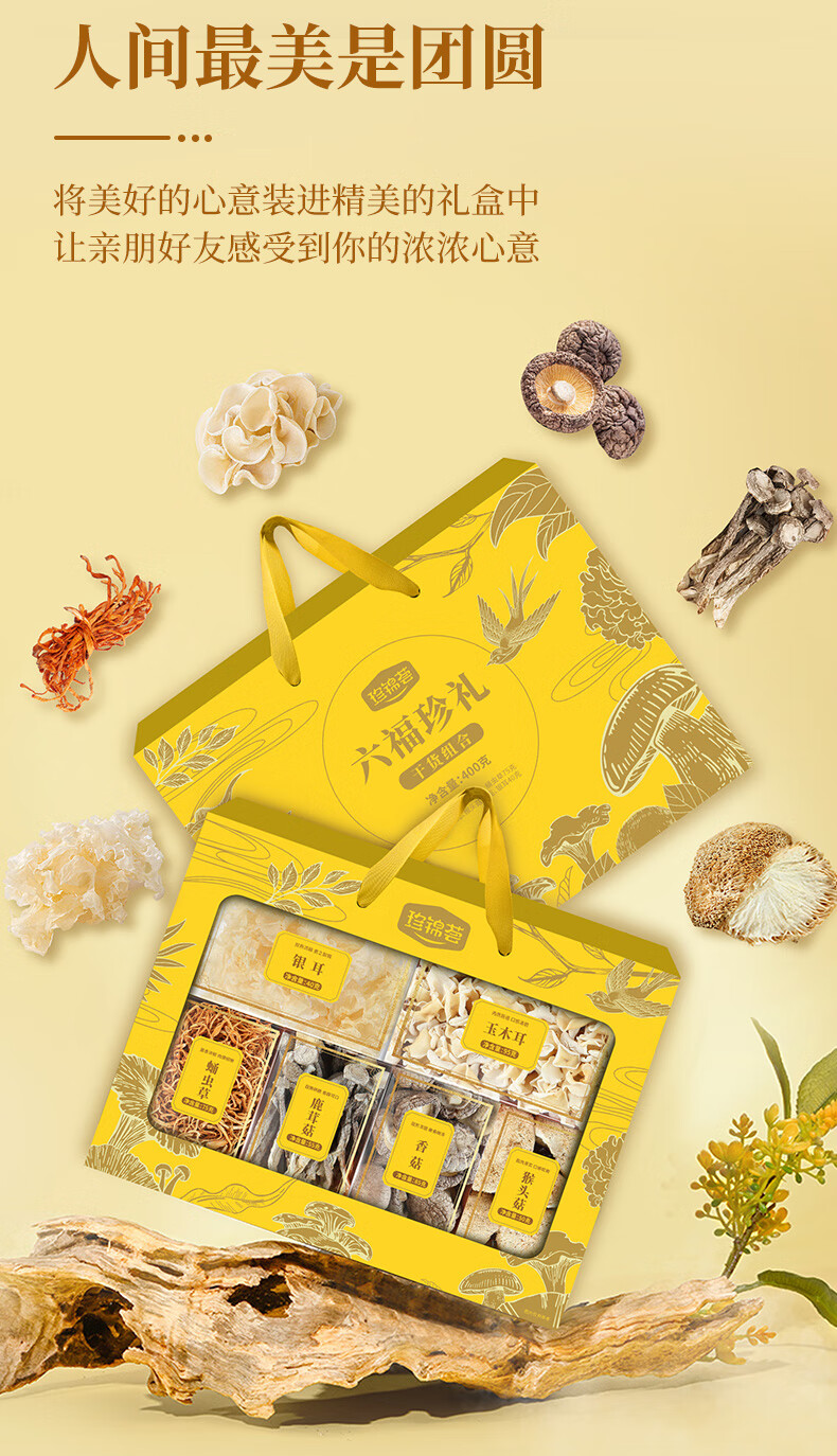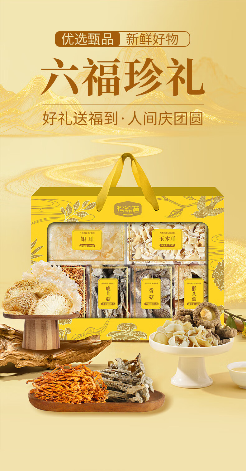 珍锦荟六福珍礼400g香菇黑木耳火锅食材菌菇礼盒送长辈企业团购年货节日