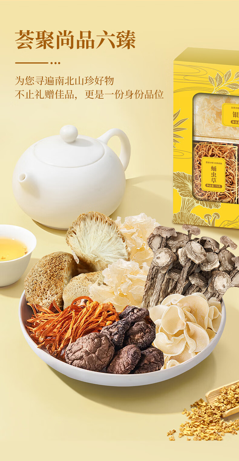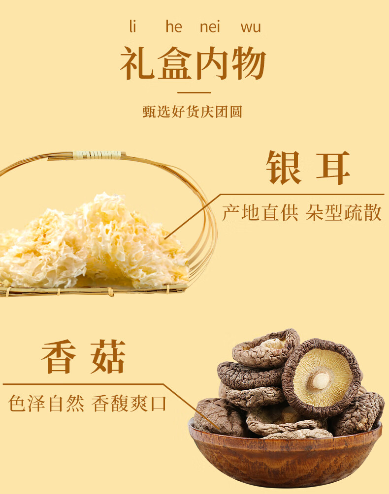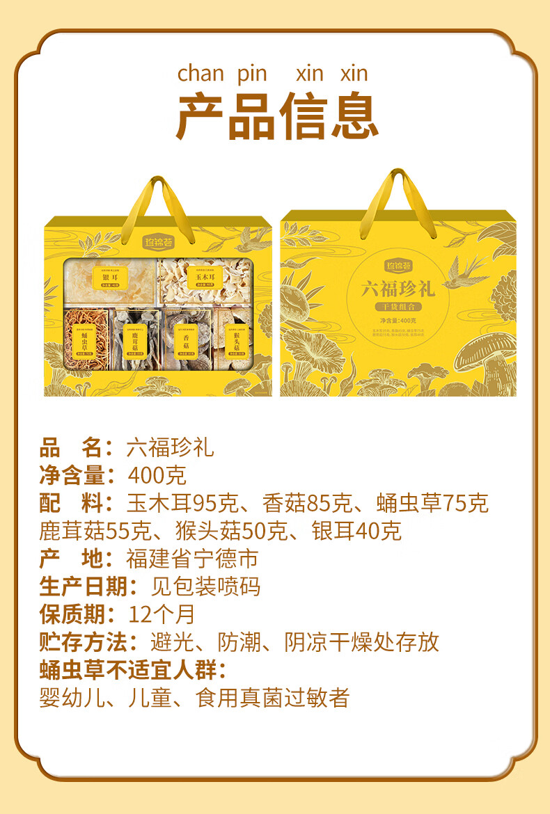 珍锦荟六福珍礼400g香菇黑木耳火锅食材菌菇礼盒送长辈企业团购年货节日