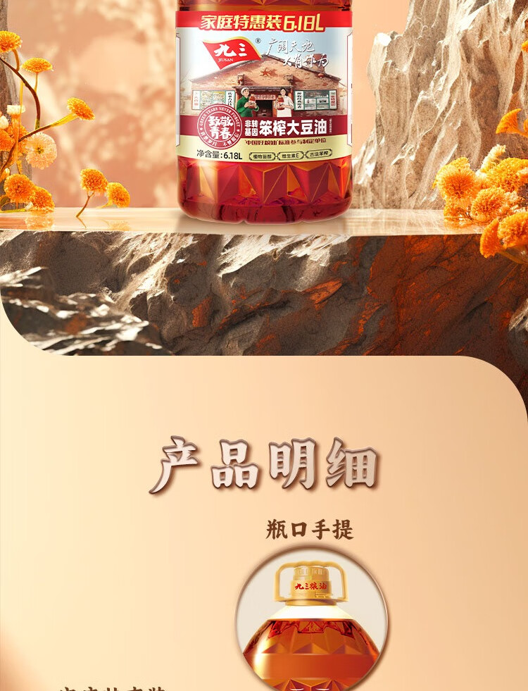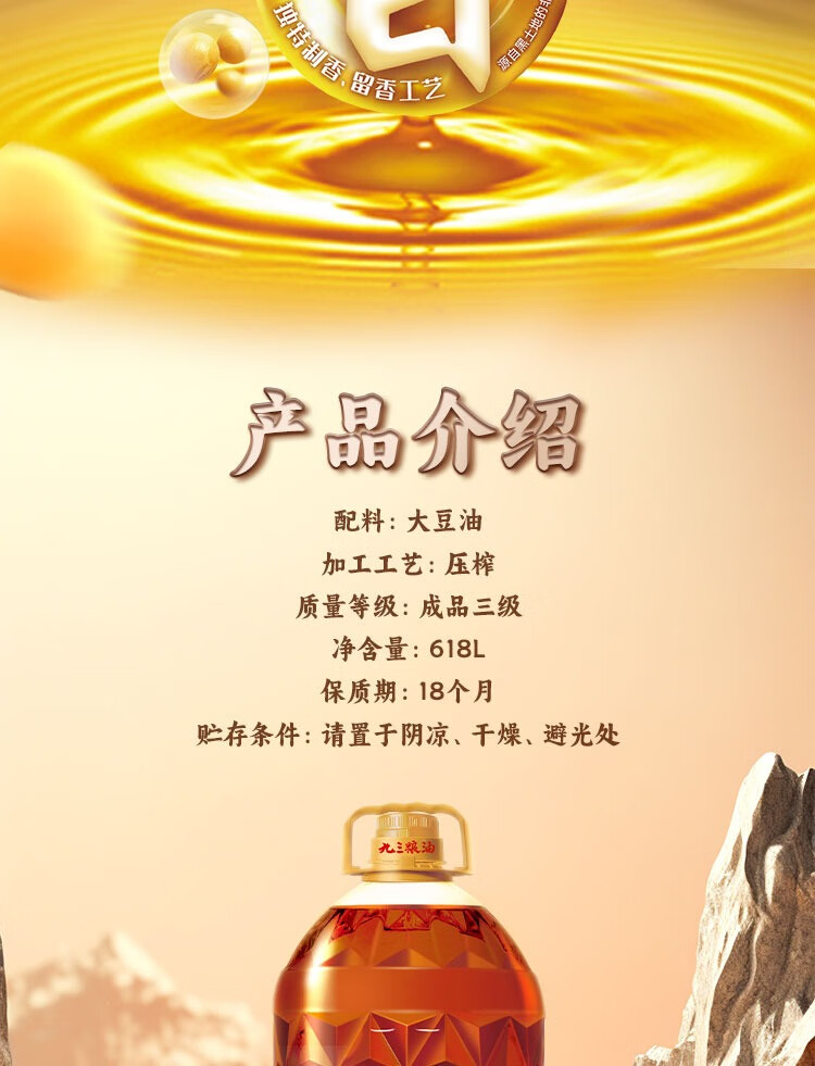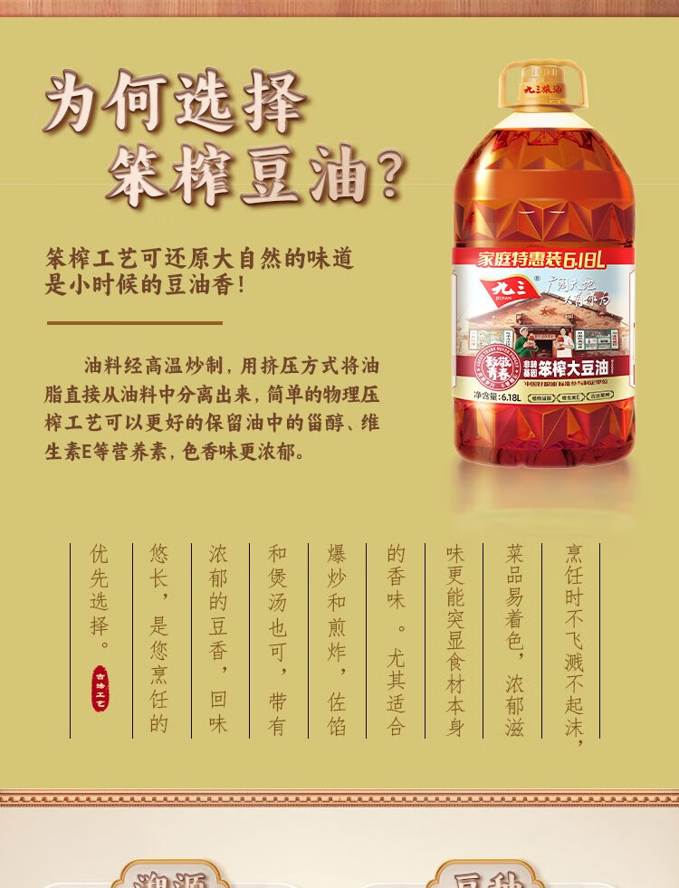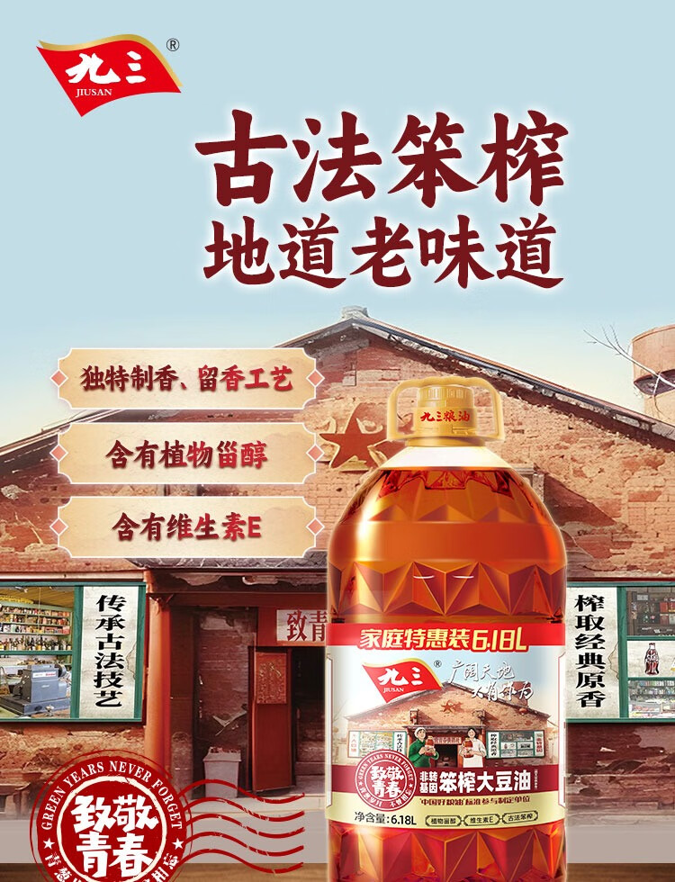 九三 食用油 非转基因 古法笨榨6.18L 大豆油 物理压榨 新老包装随机