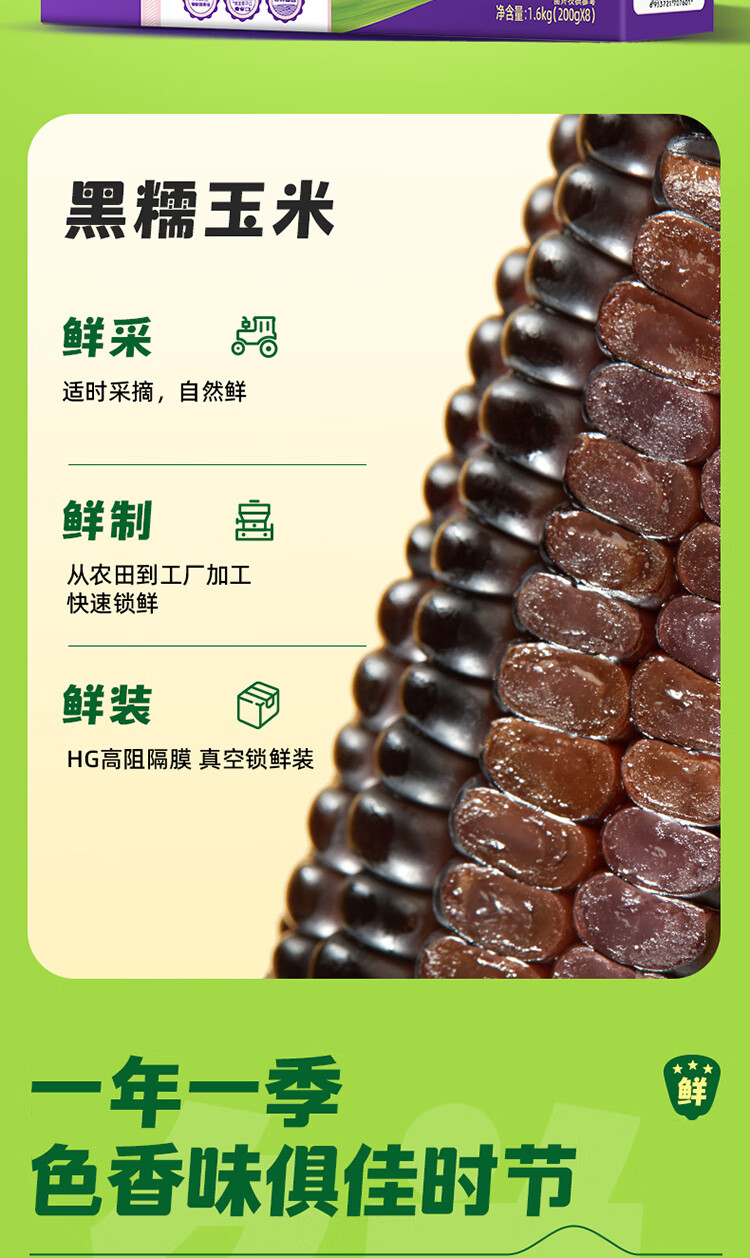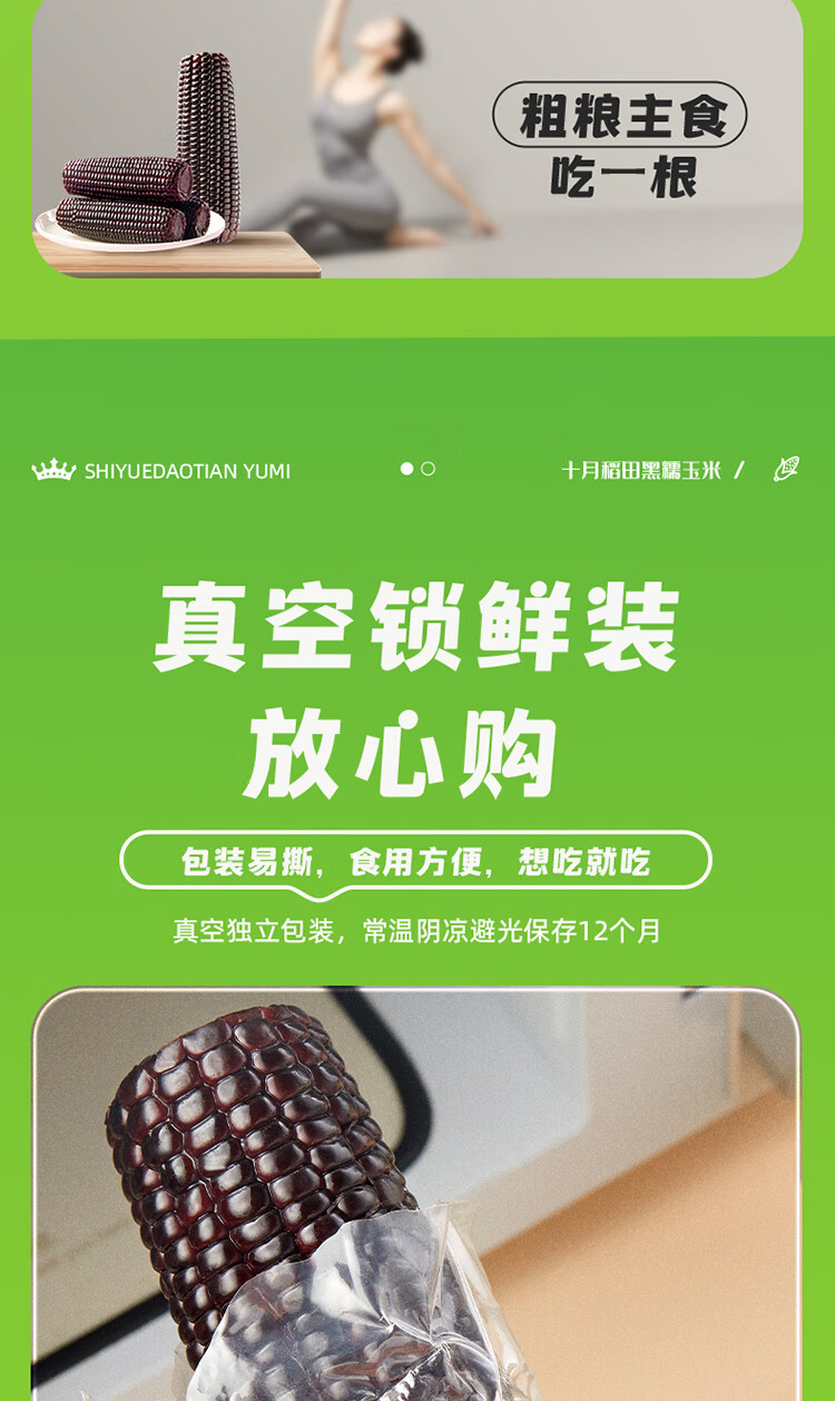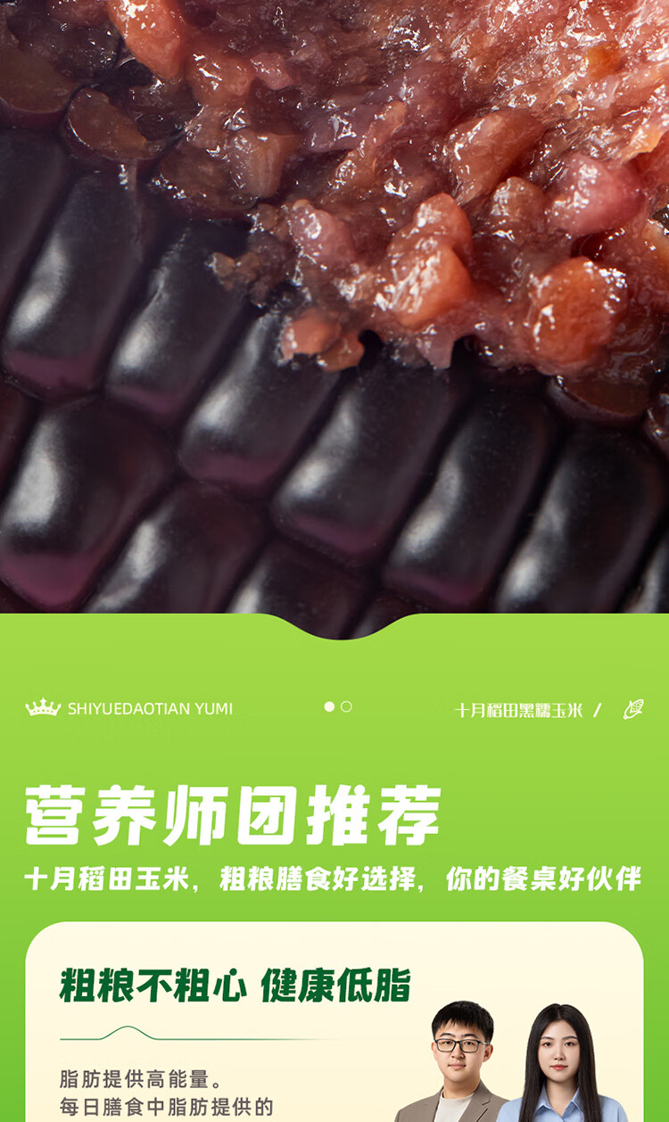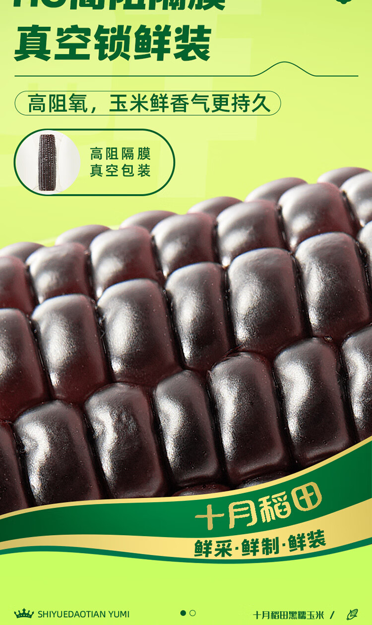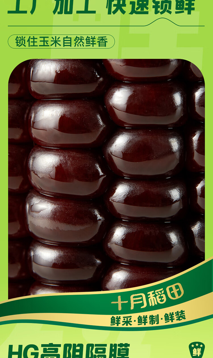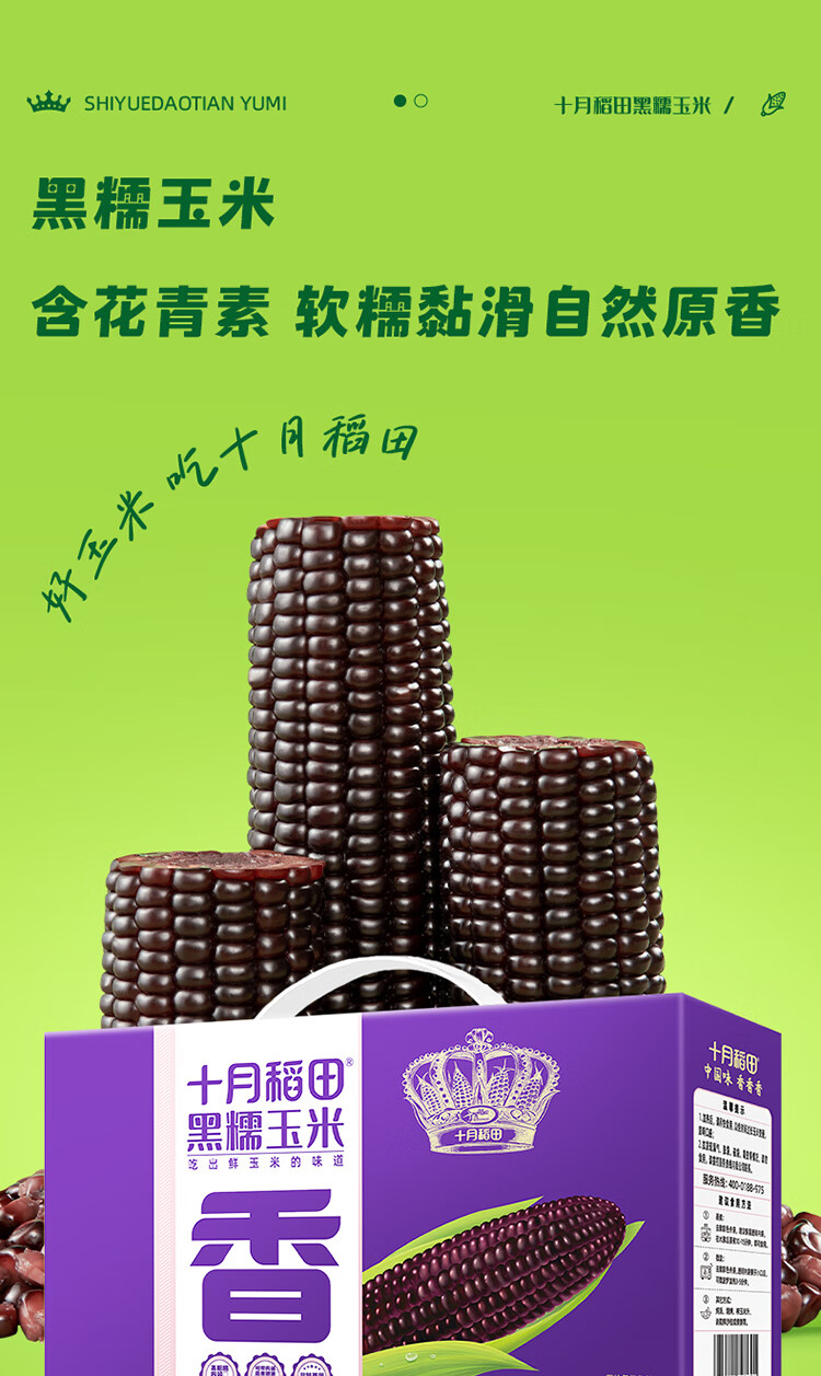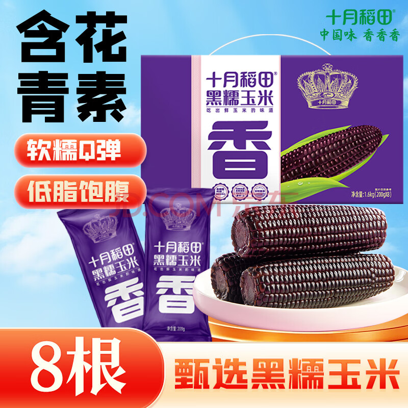 十月稻田 黑糯玉米 8根 3.2斤 代餐早餐 真空包装 花青素 杂粮礼盒