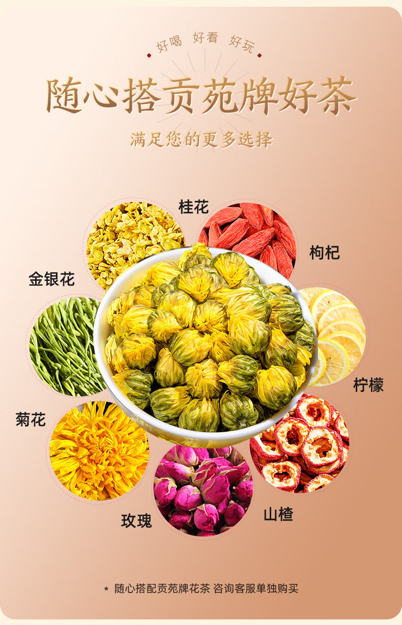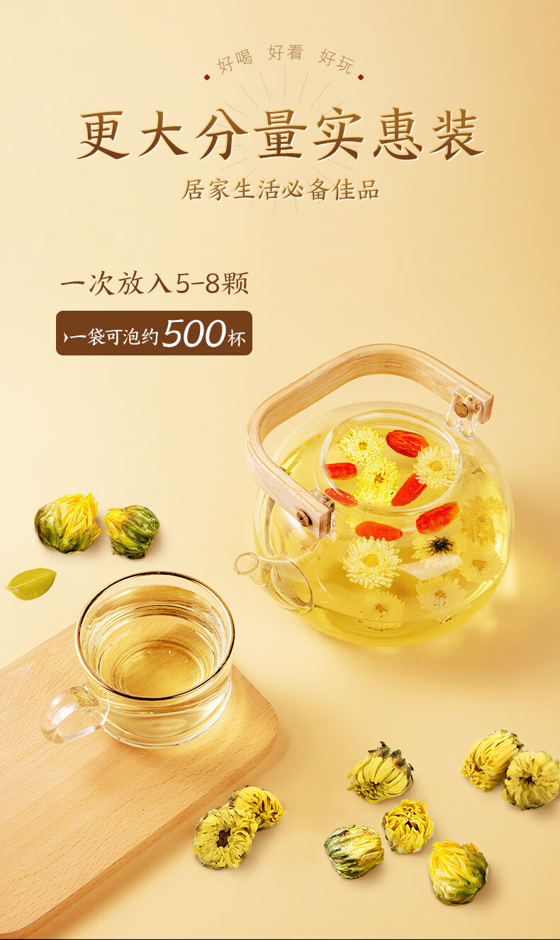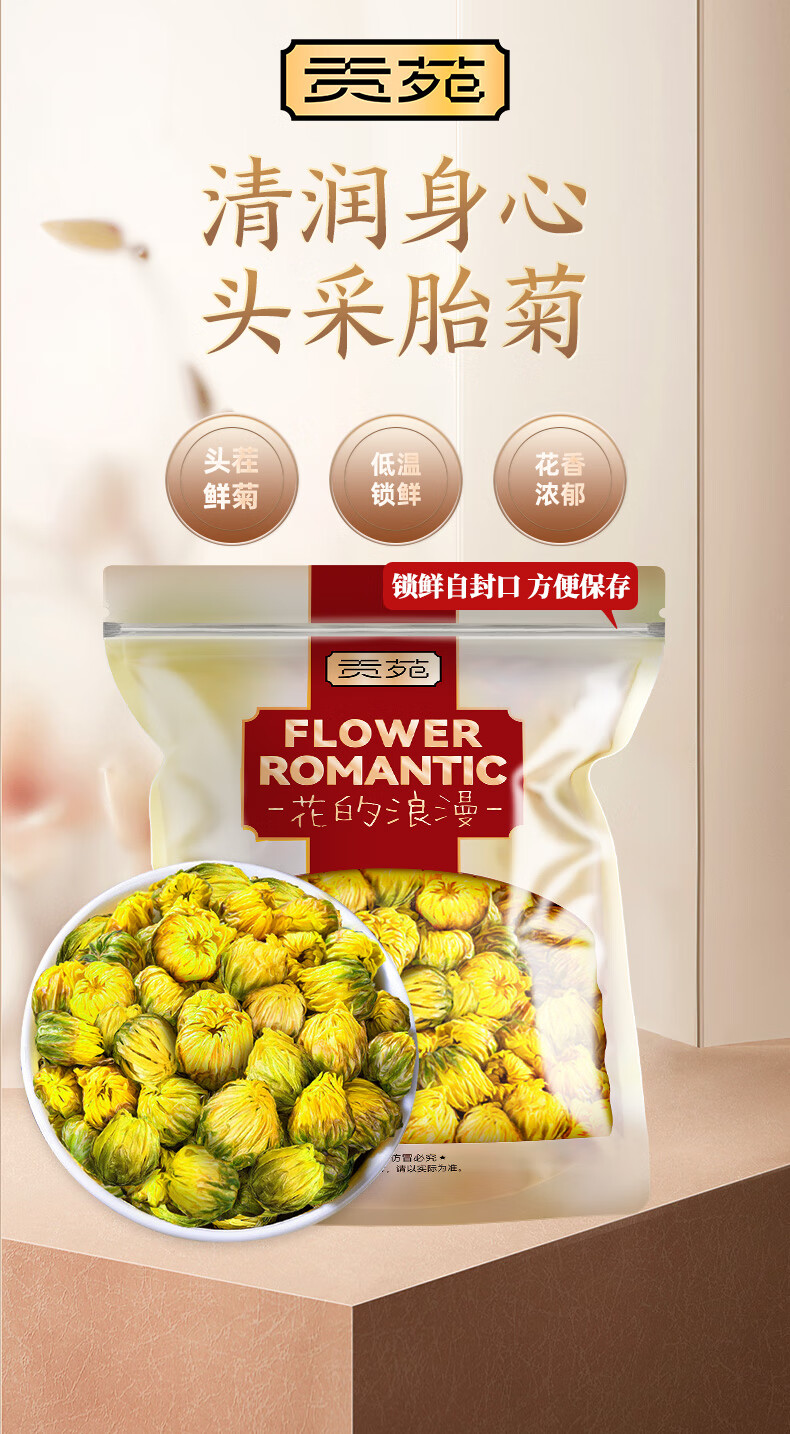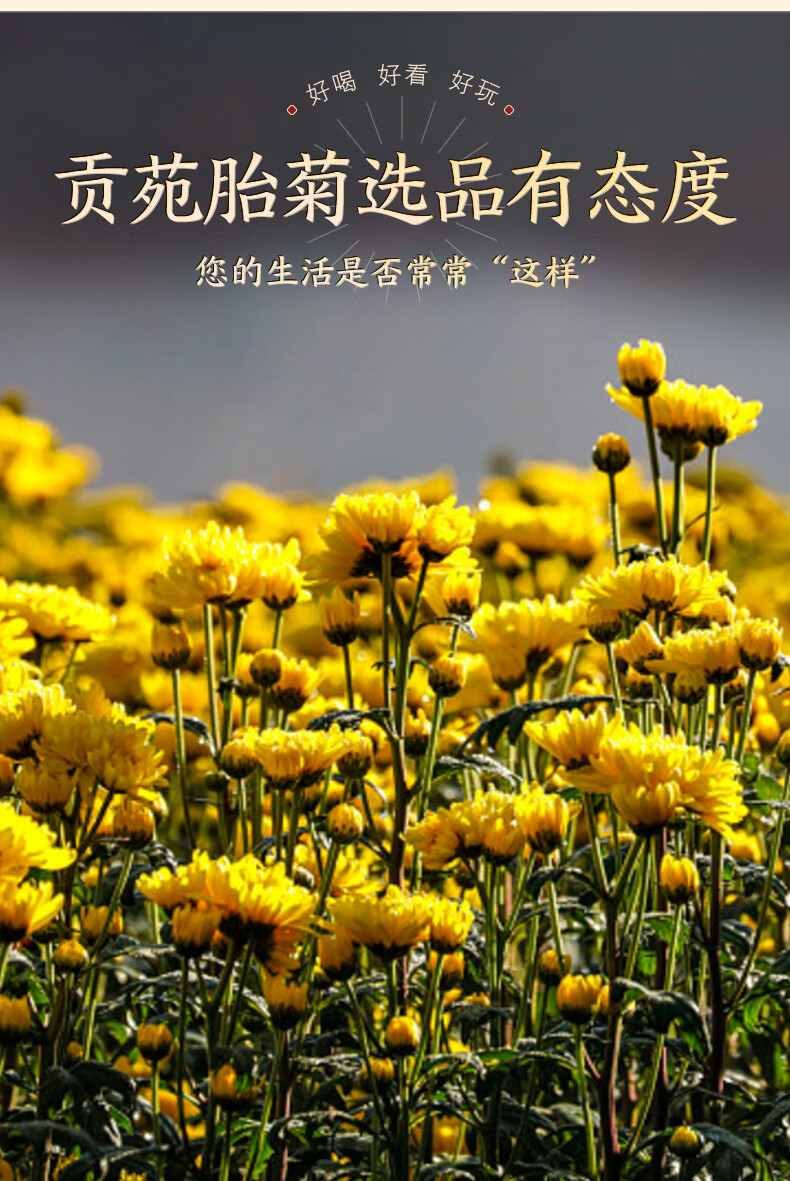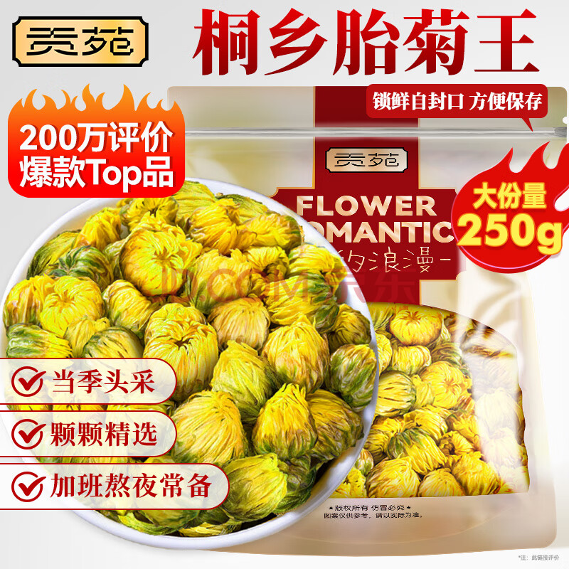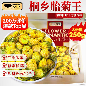贡苑 菊花茶胎菊王250g 头采特大份实惠装级桐乡胎菊王花蕾花草茶