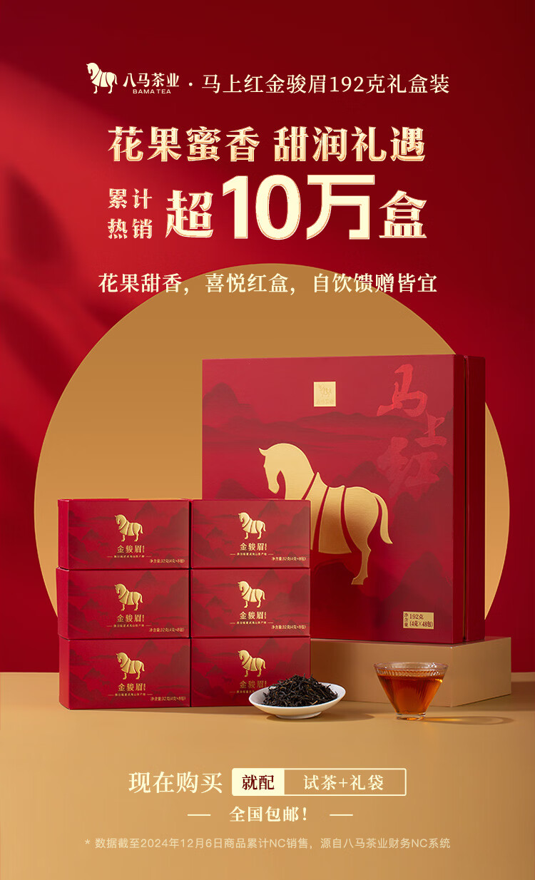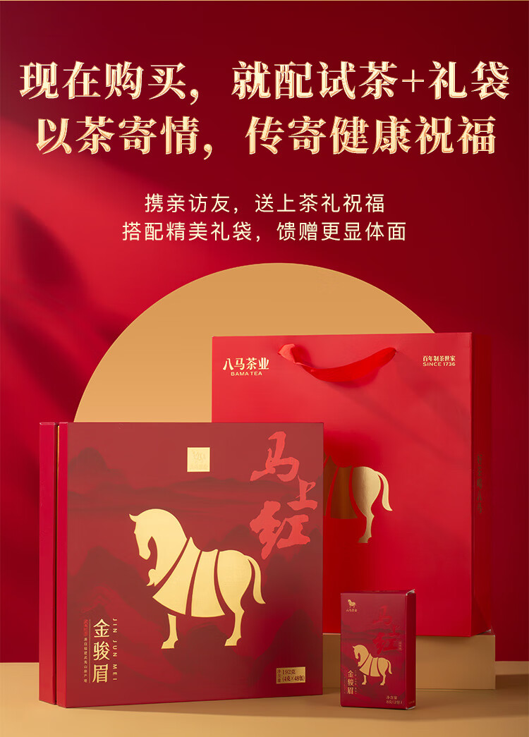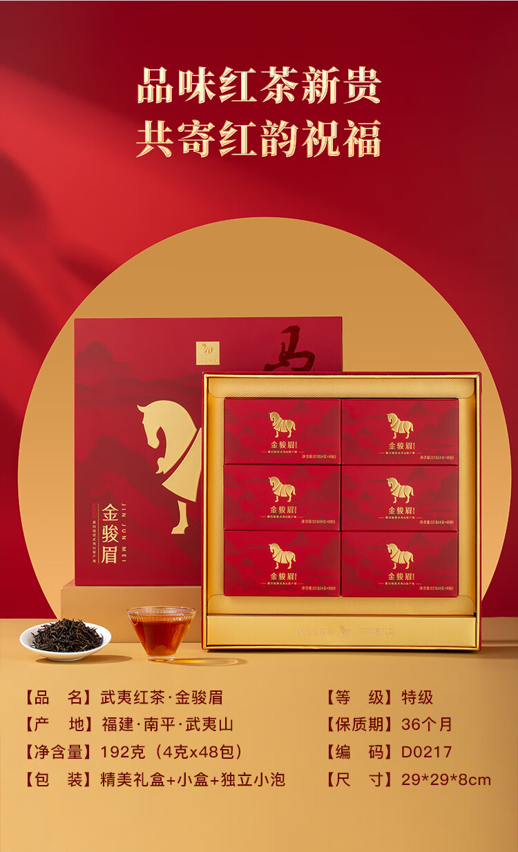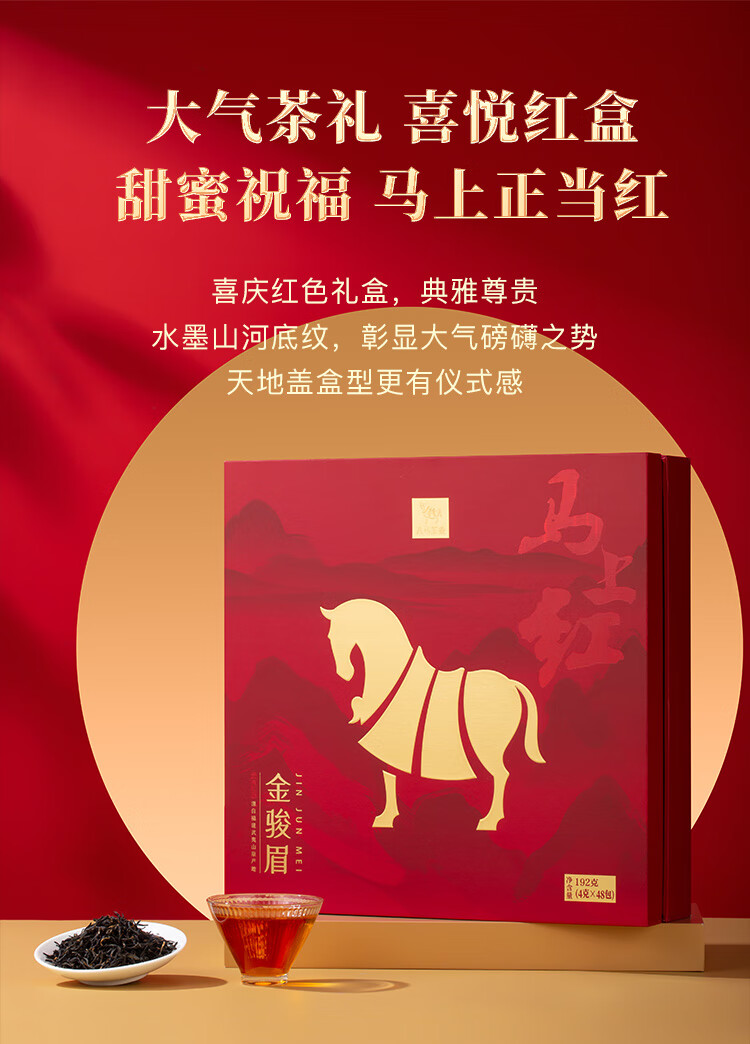 八马茶业红茶 马上红360武夷山金骏眉特级192g礼盒装茶叶送礼