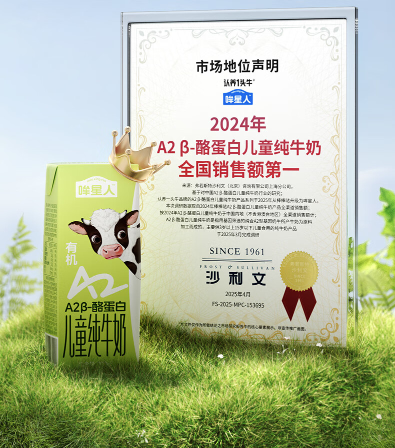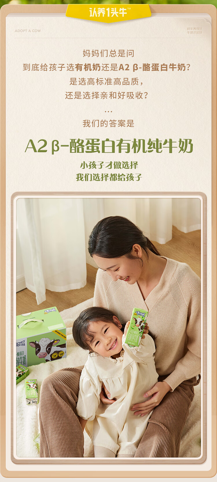 认养一头牛哞星人A2β-酪蛋白有机儿童纯牛奶/200ml*10盒*2箱