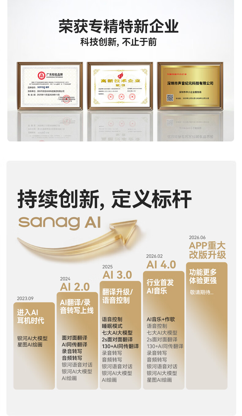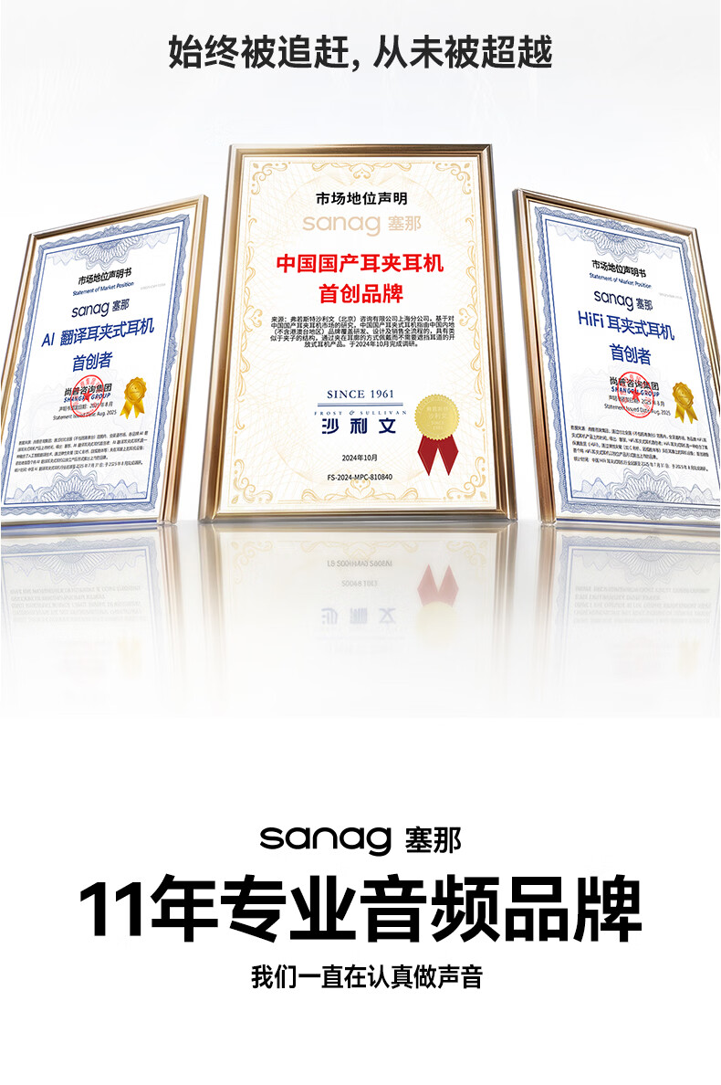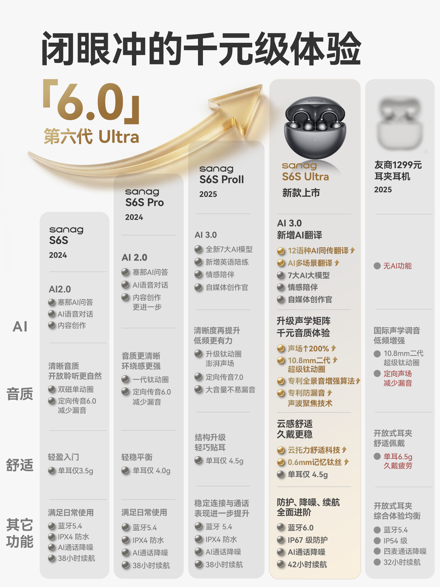 SANAG塞那S6S Ultra蓝牙耳机耳夹式气骨传导概念开放式不
