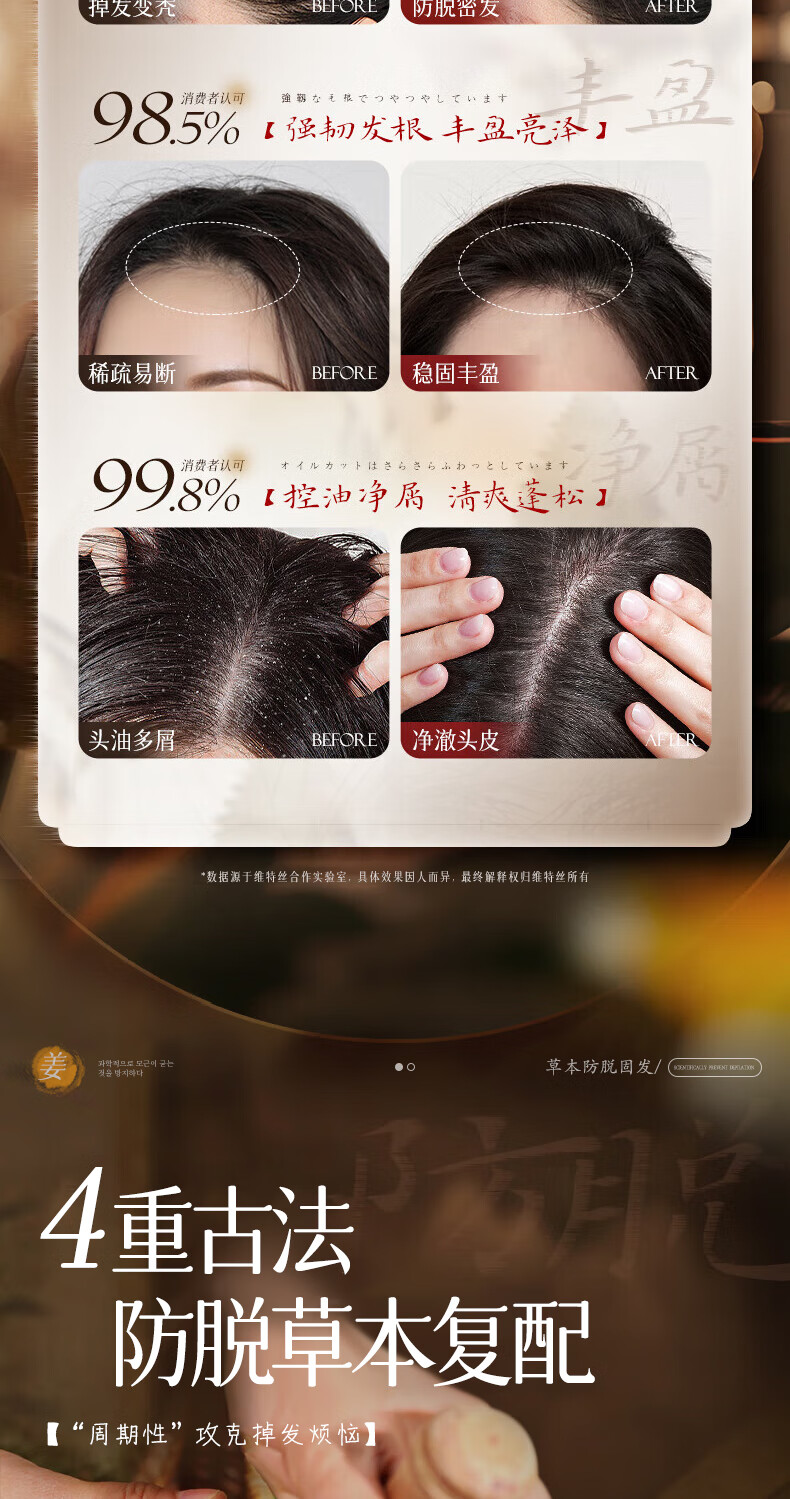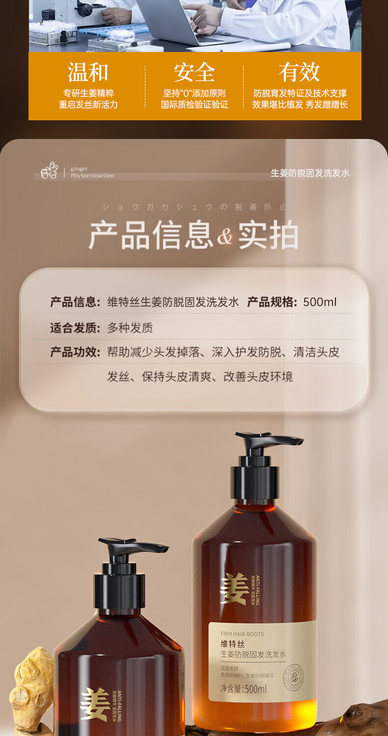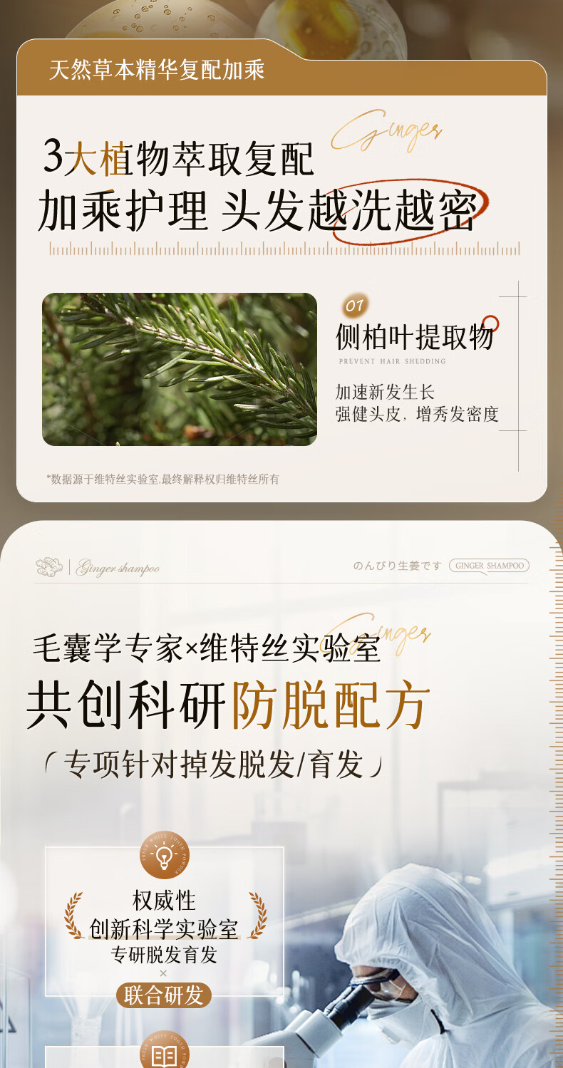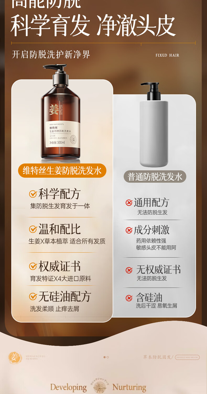 维特丝防脱育发洗发水生姜固发侧柏叶控油去屑洗头膏露男女士金榜第1